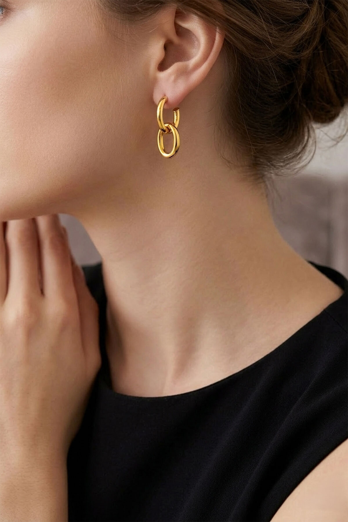 Modern Tasarım 18 Ayar Sarı Altın Kaplama Gümüş Küpe