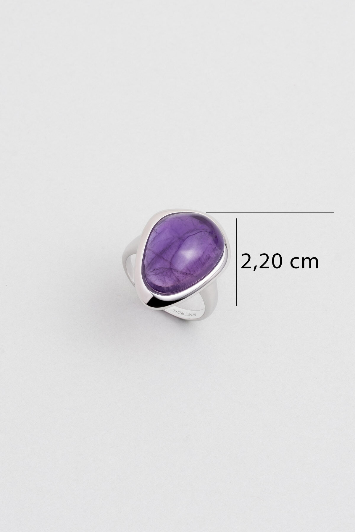 Mor Ahenk 18 Ayar Beyaz Altın Kaplama Gümüş Ametist Yüzük