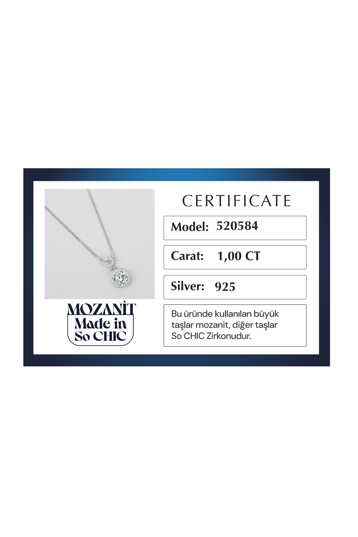 - Açıklama: Bu Üründe Kullanılan Büyük Taşlar Mozanit, Küçük Taşlar So Chic... Zirkonudur.