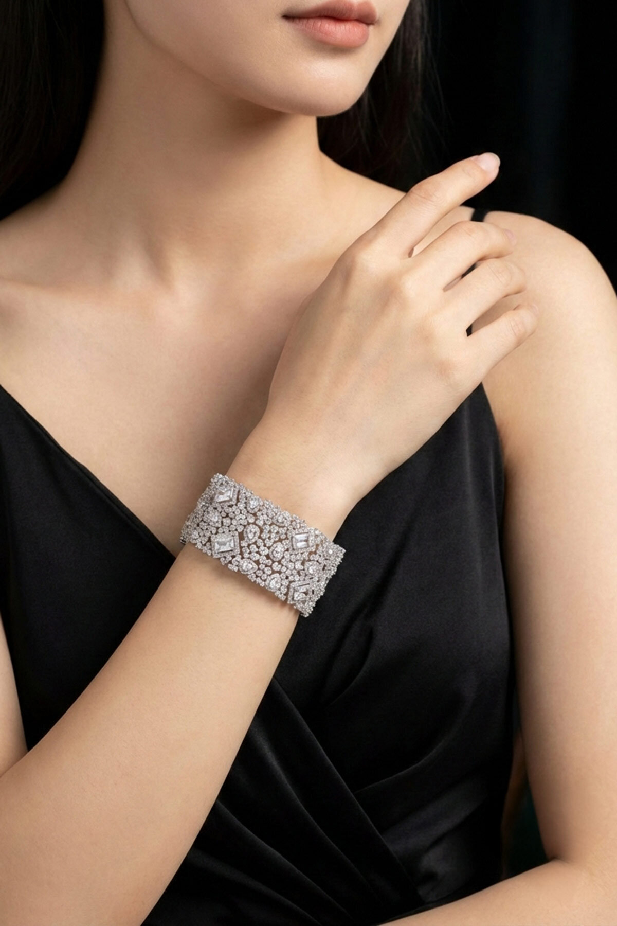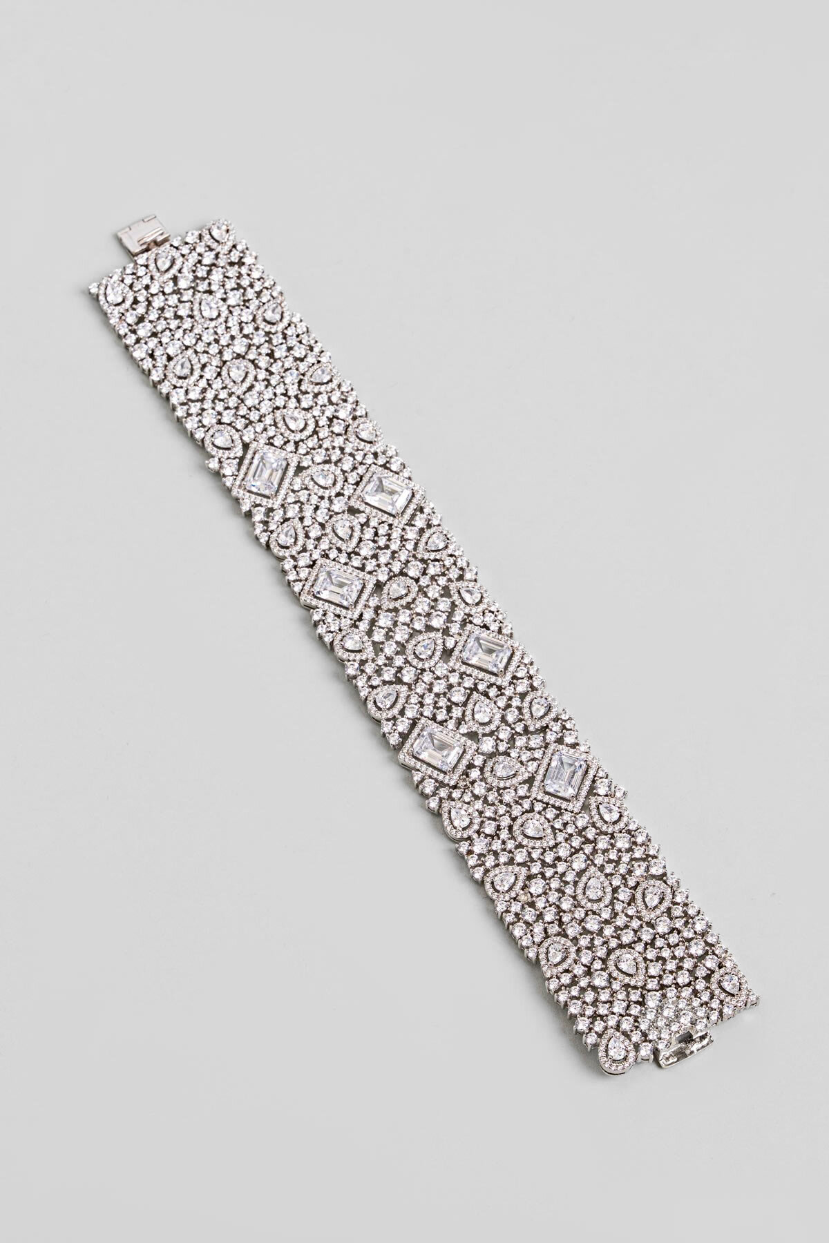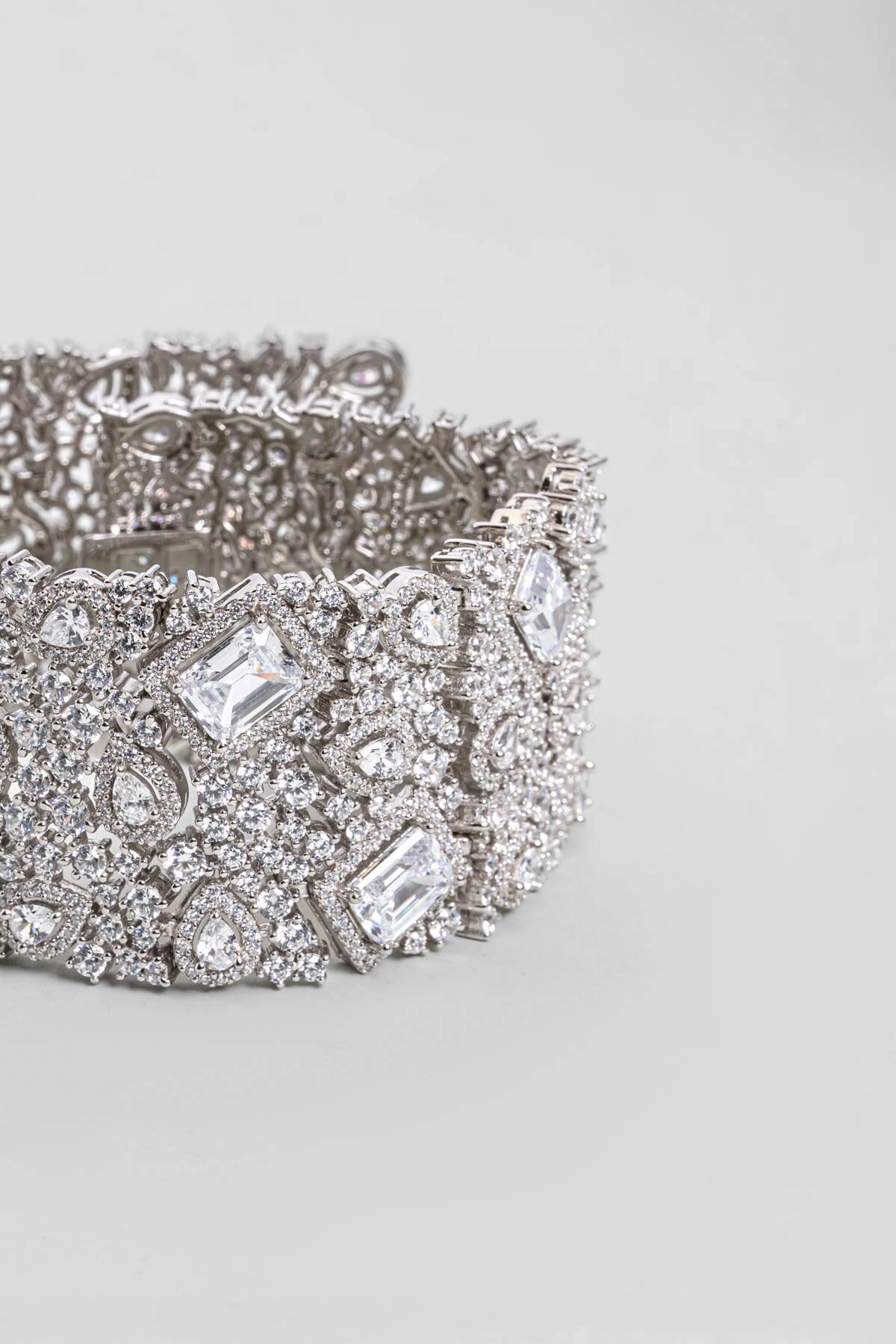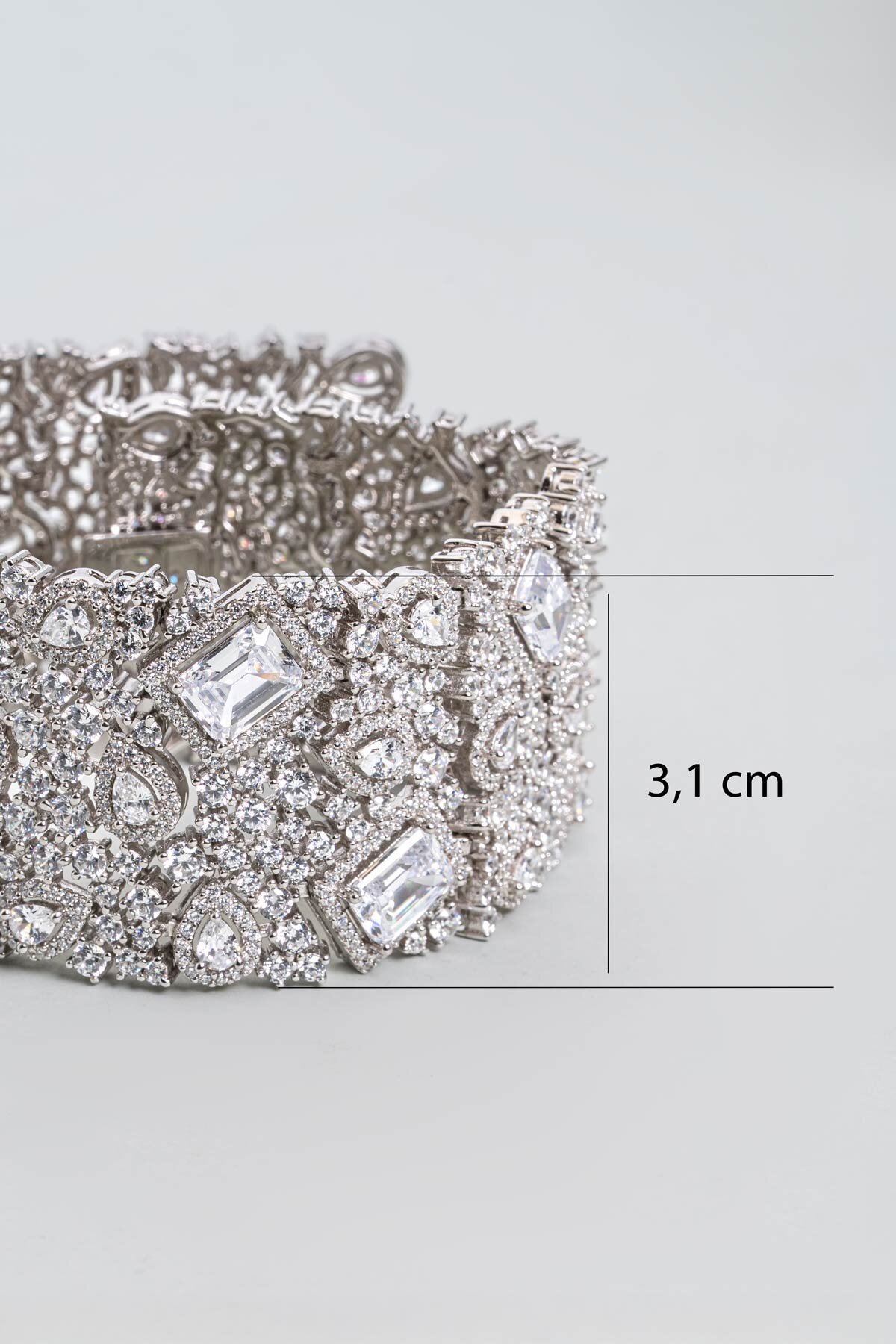 Mücevher Zarafeti 18 Ayar Beyaz Altın Kaplama Gümüş Özel Tasarım Bileklik