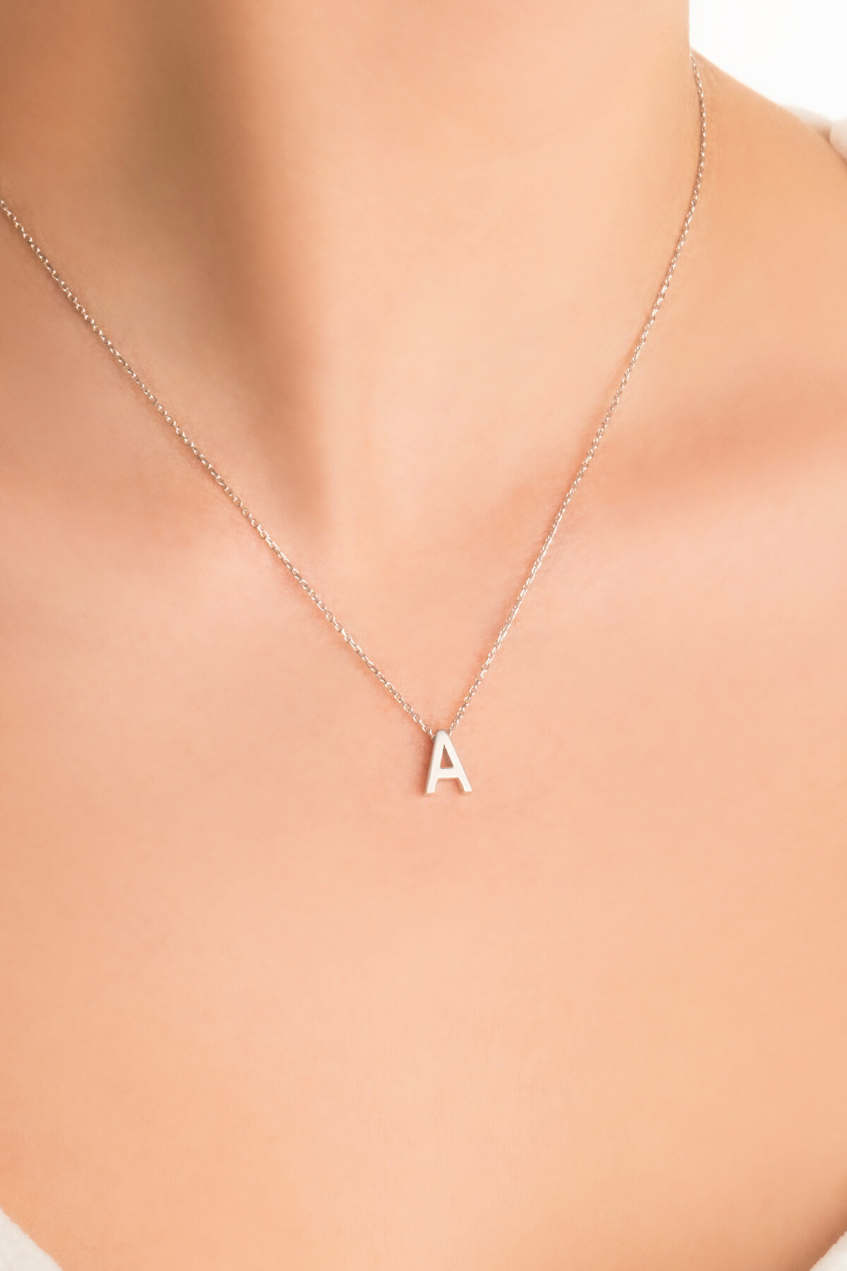 My Story A Harfi 18 Ayar Beyaz Altın Kaplama 45 Cm Gümüş Kolye