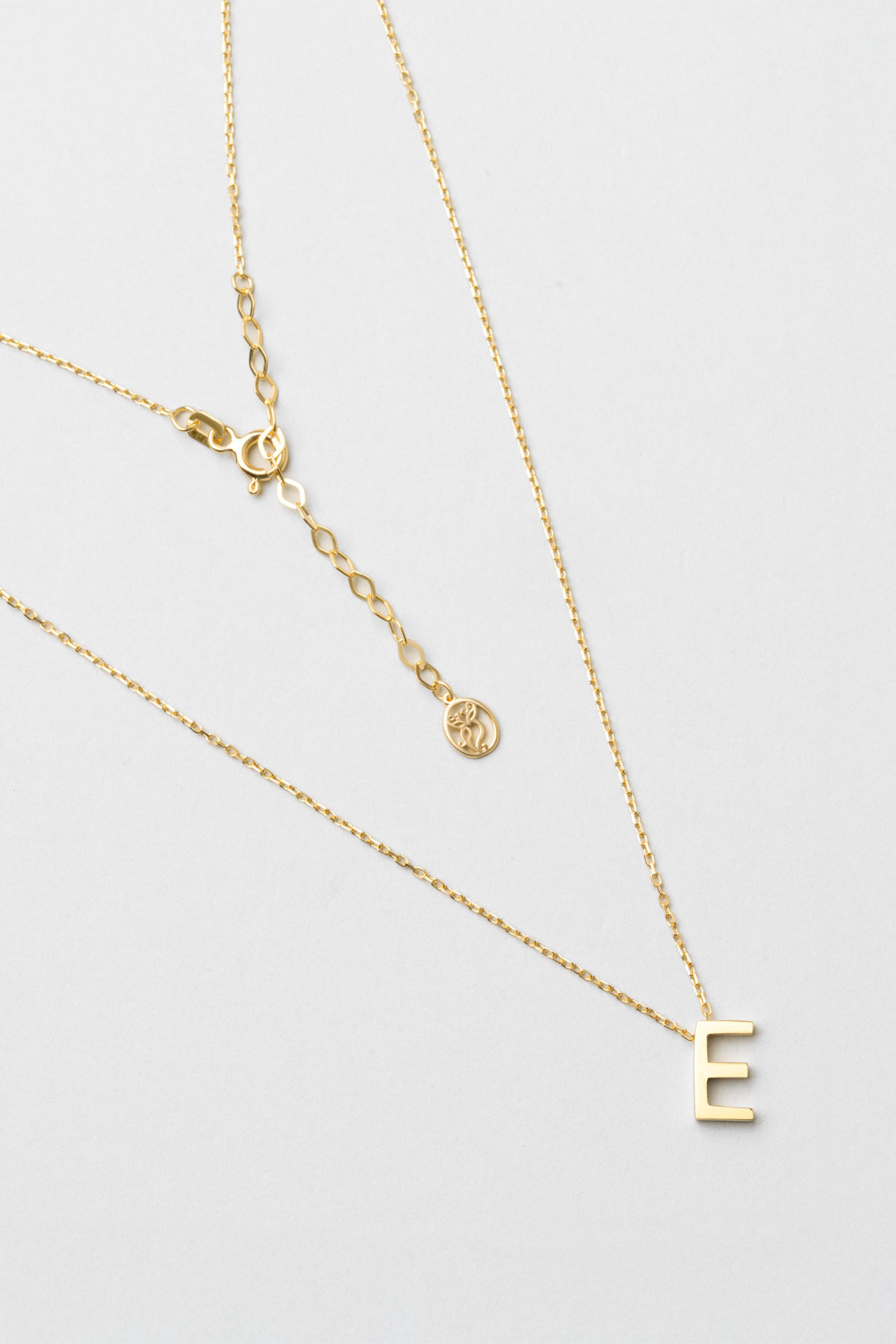 My Story E Harfi 18 Ayar Sarı Altın Kaplama 45 Cm Gümüş Kolye