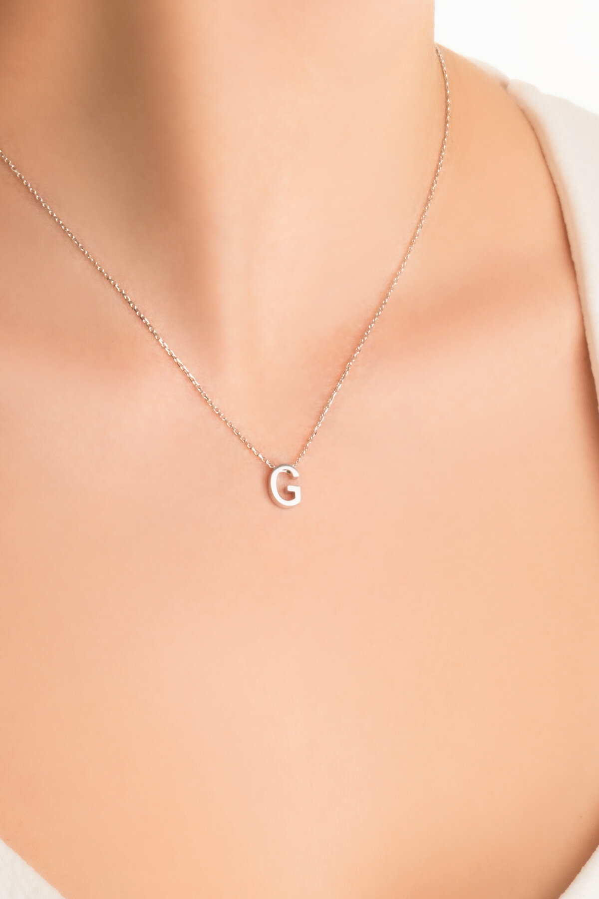 My Story G Harfi 18 Ayar Beyaz Altın Kaplama 45 Cm Gümüş Kolye