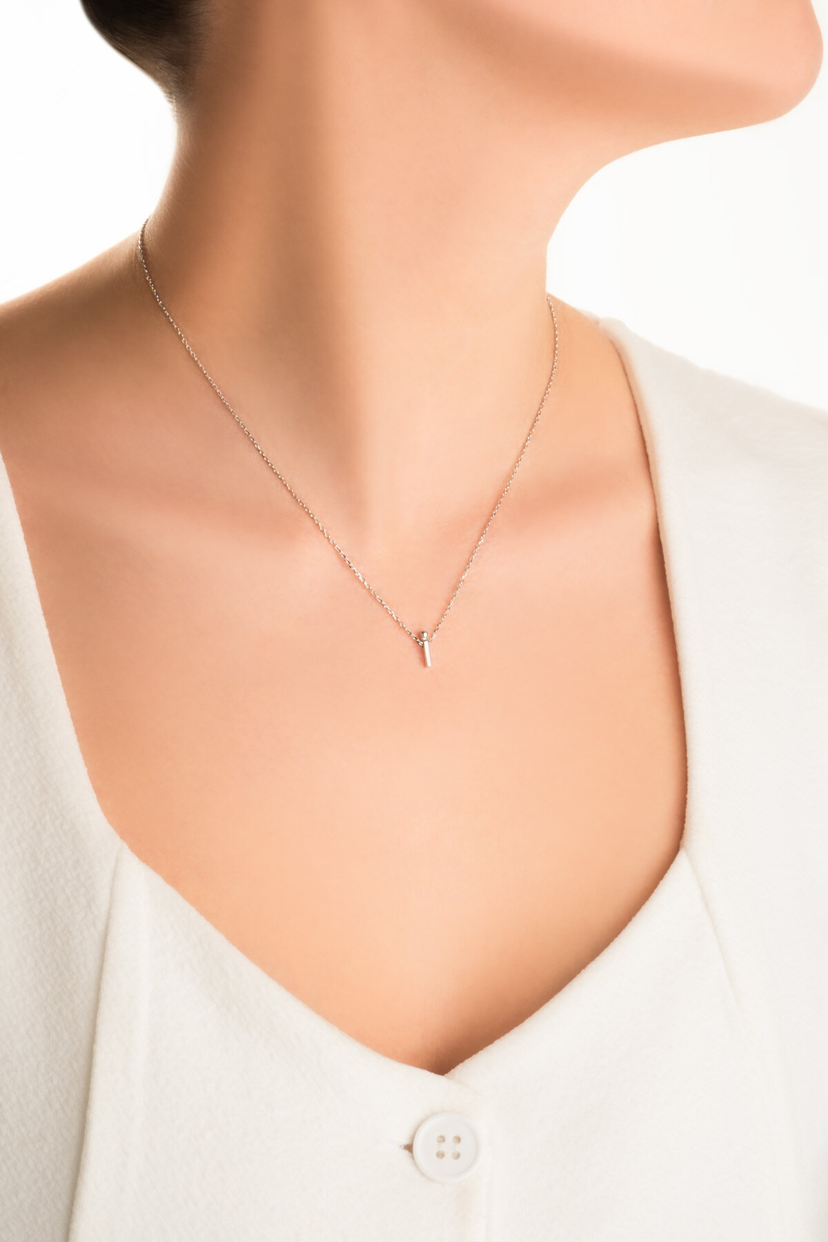 My Story İ Harfi 18 Ayar Beyaz Altın Kaplama 45 Cm Gümüş Kolye