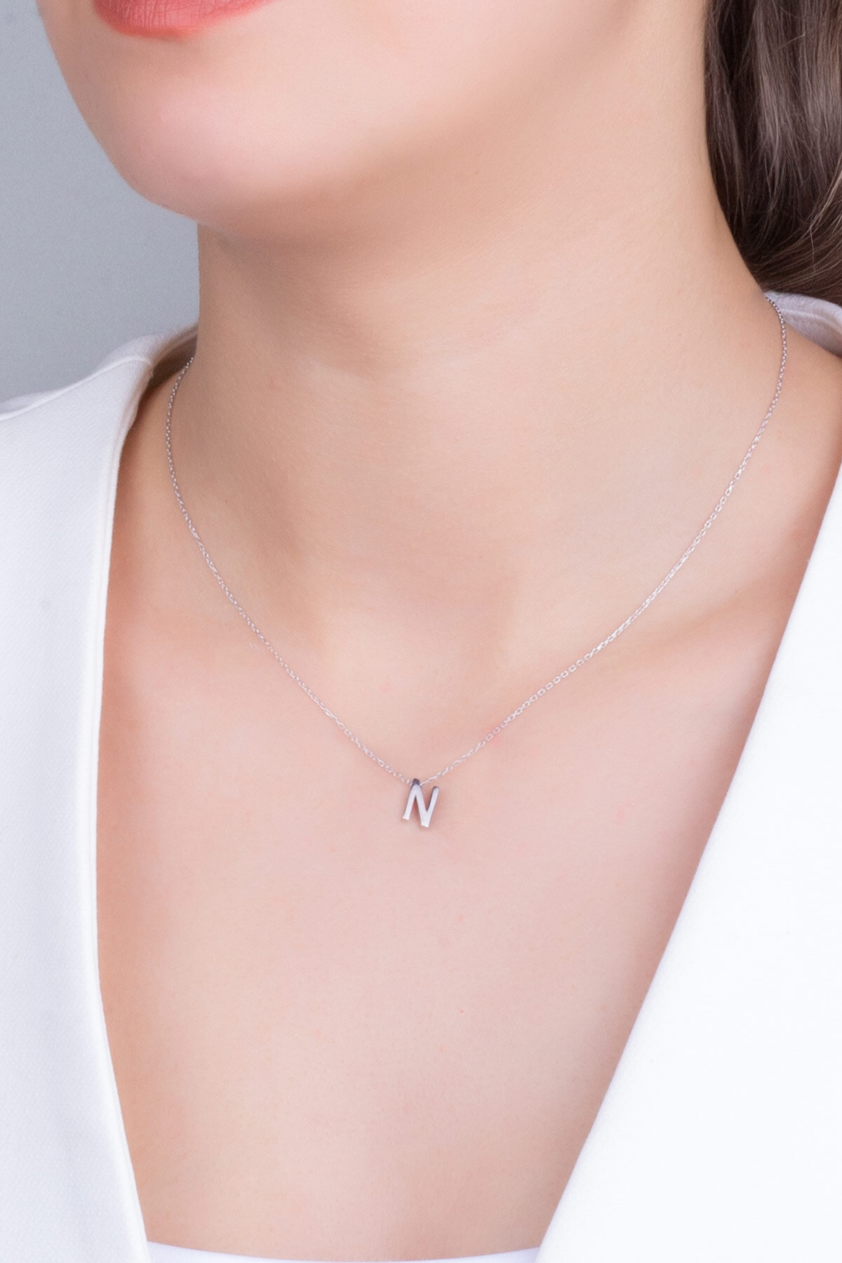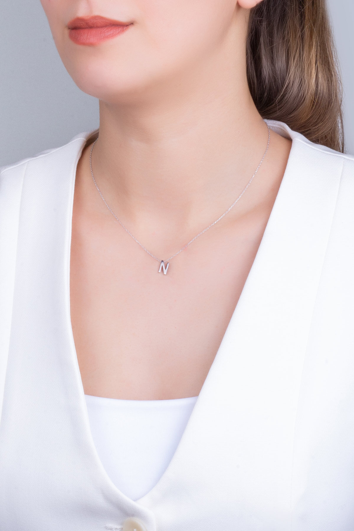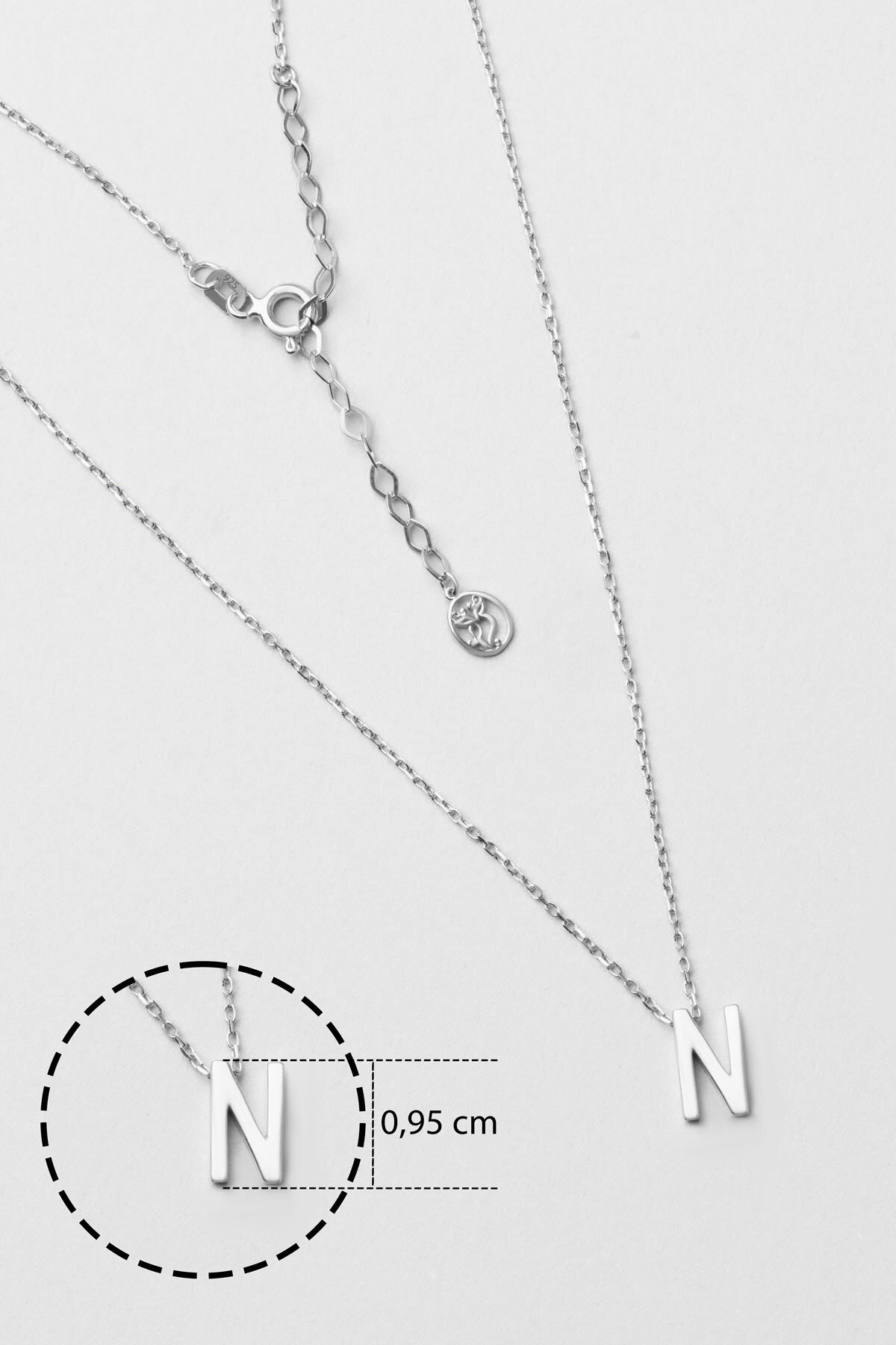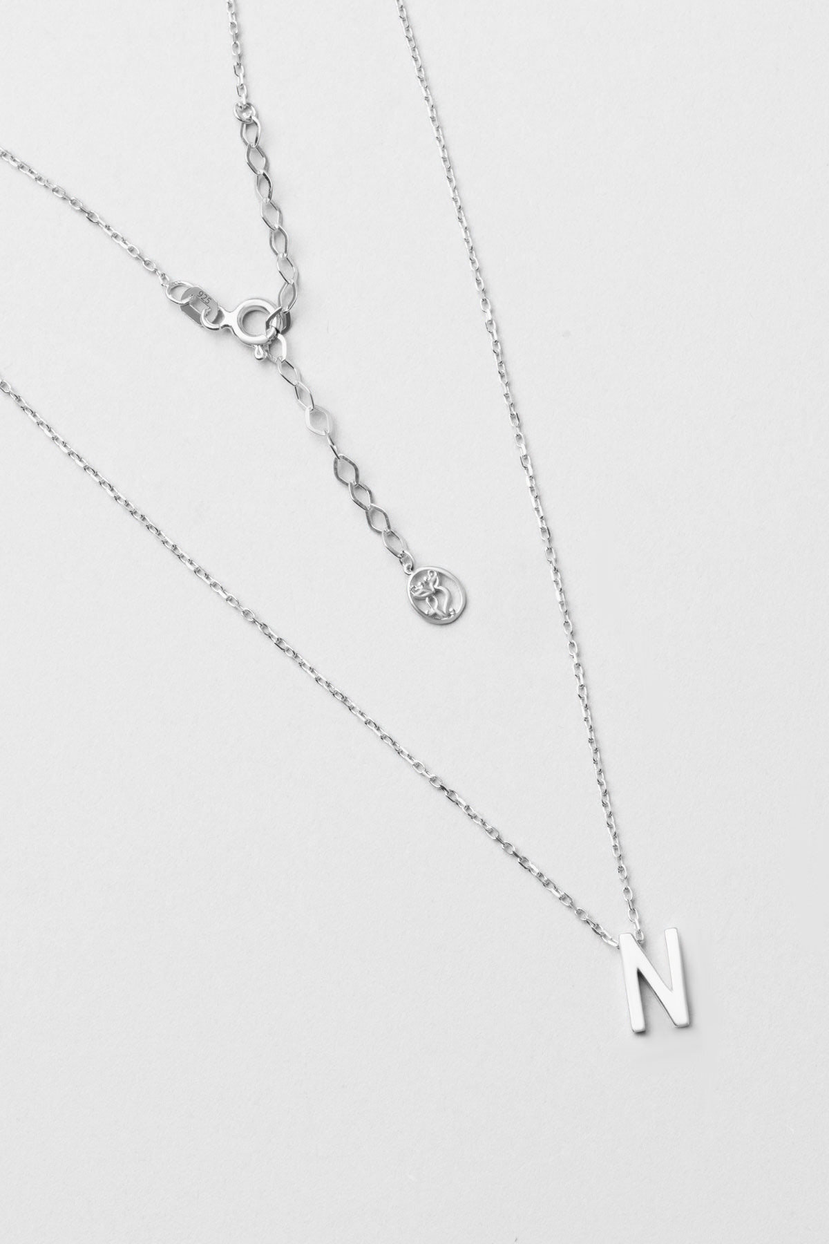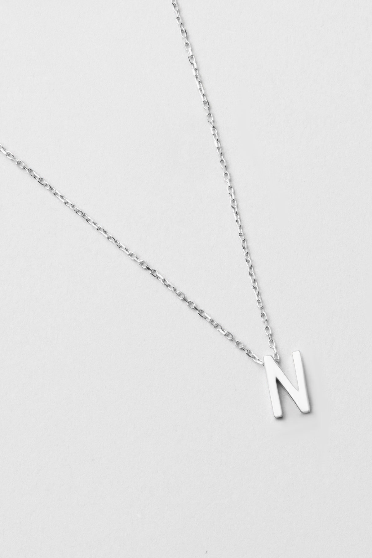 My Story N Harfi 18 Ayar Beyaz Altın Kaplama 45 Cm Gümüş Kolye