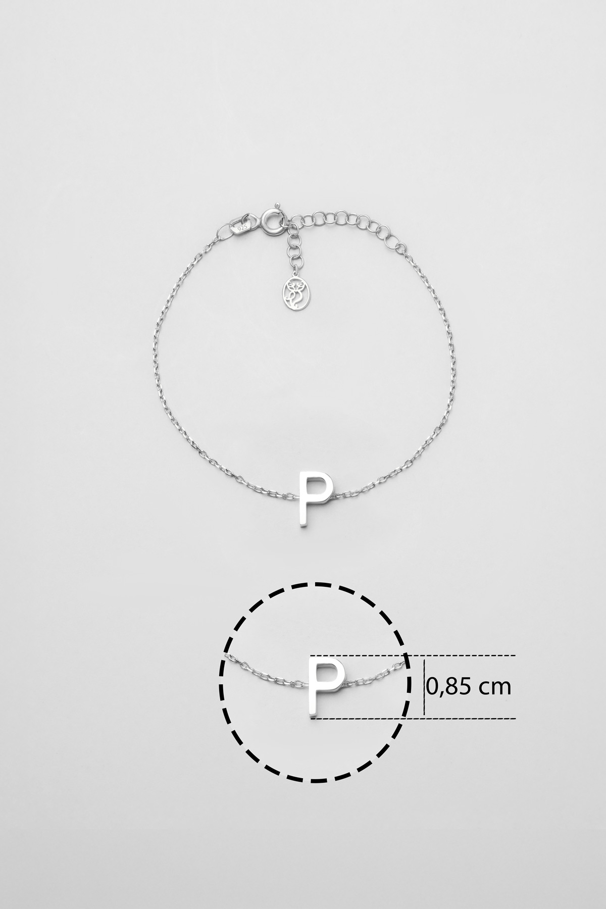 My Story P Harfi 18 Ayar Beyaz Altın Kaplama 18 Cm Gümüş Bileklik