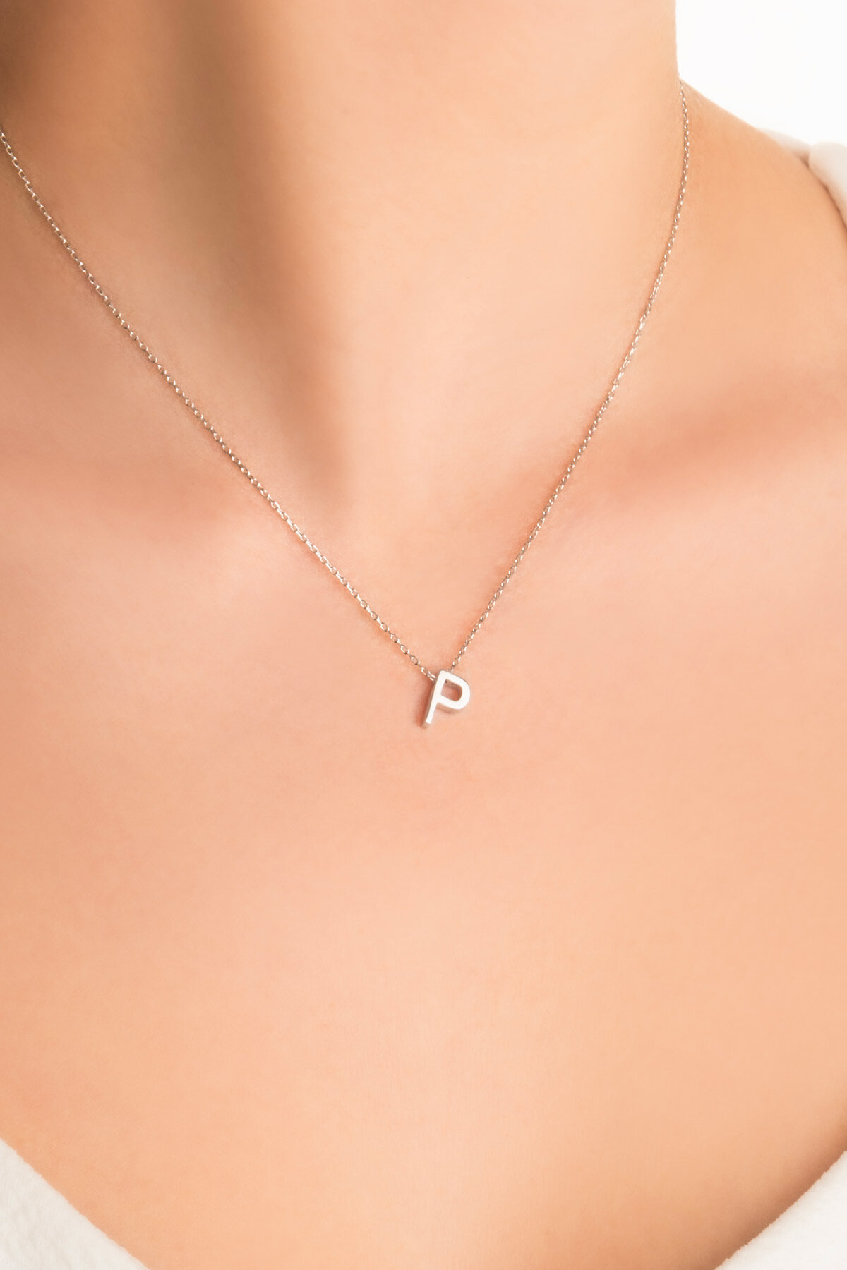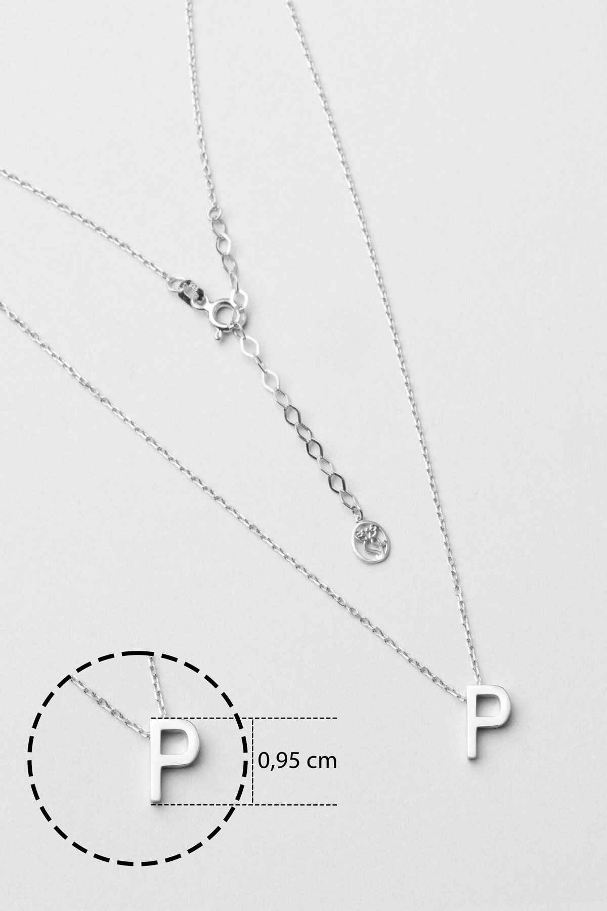 My Story P Harfi 18 Ayar Beyaz Altın Kaplama 45 Cm Gümüş Kolye