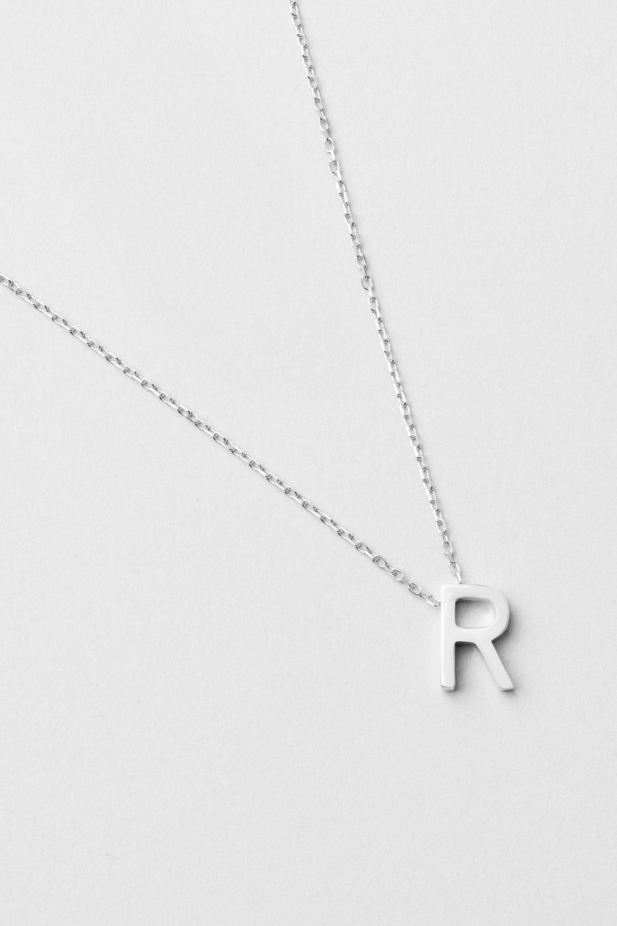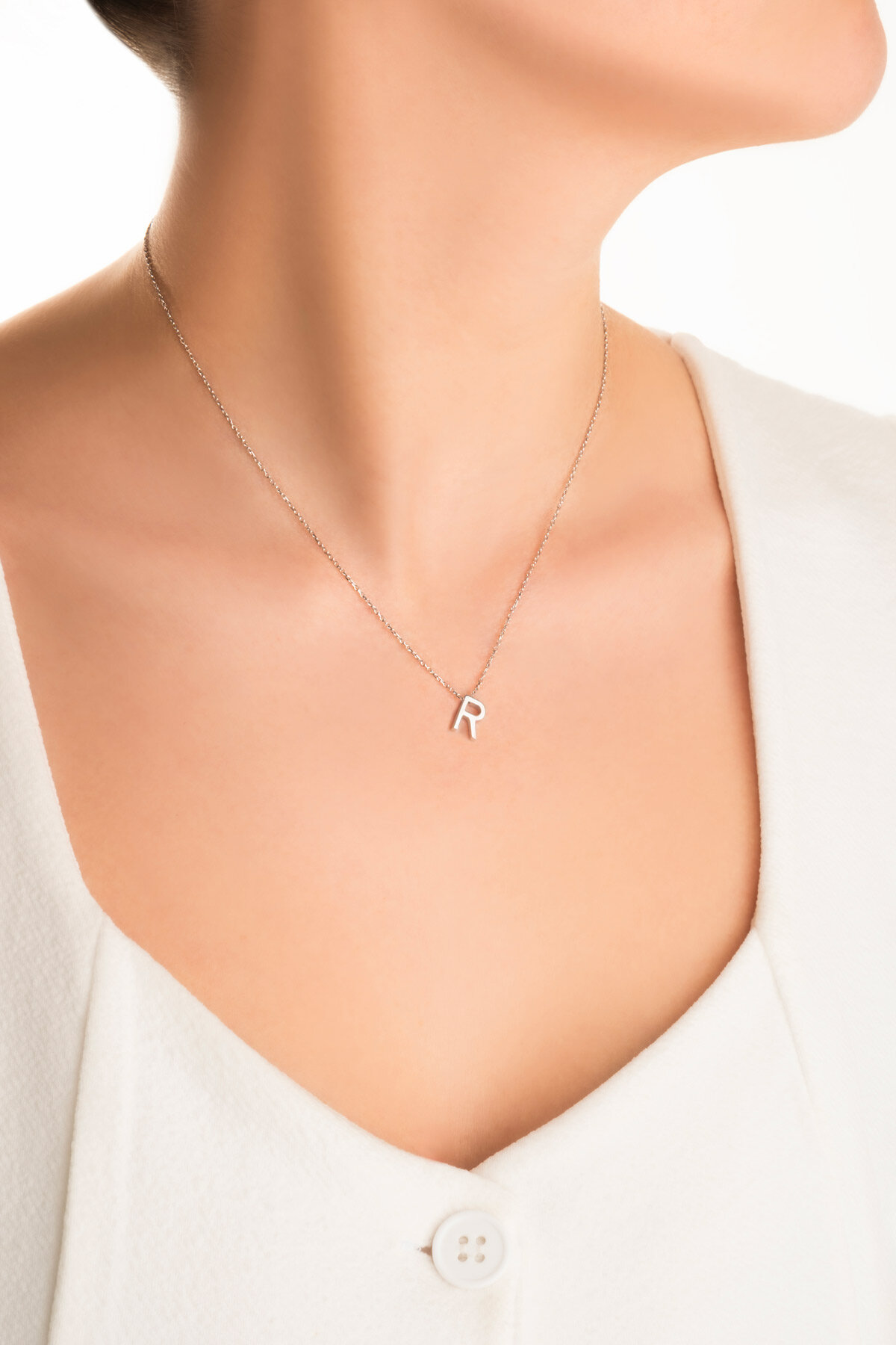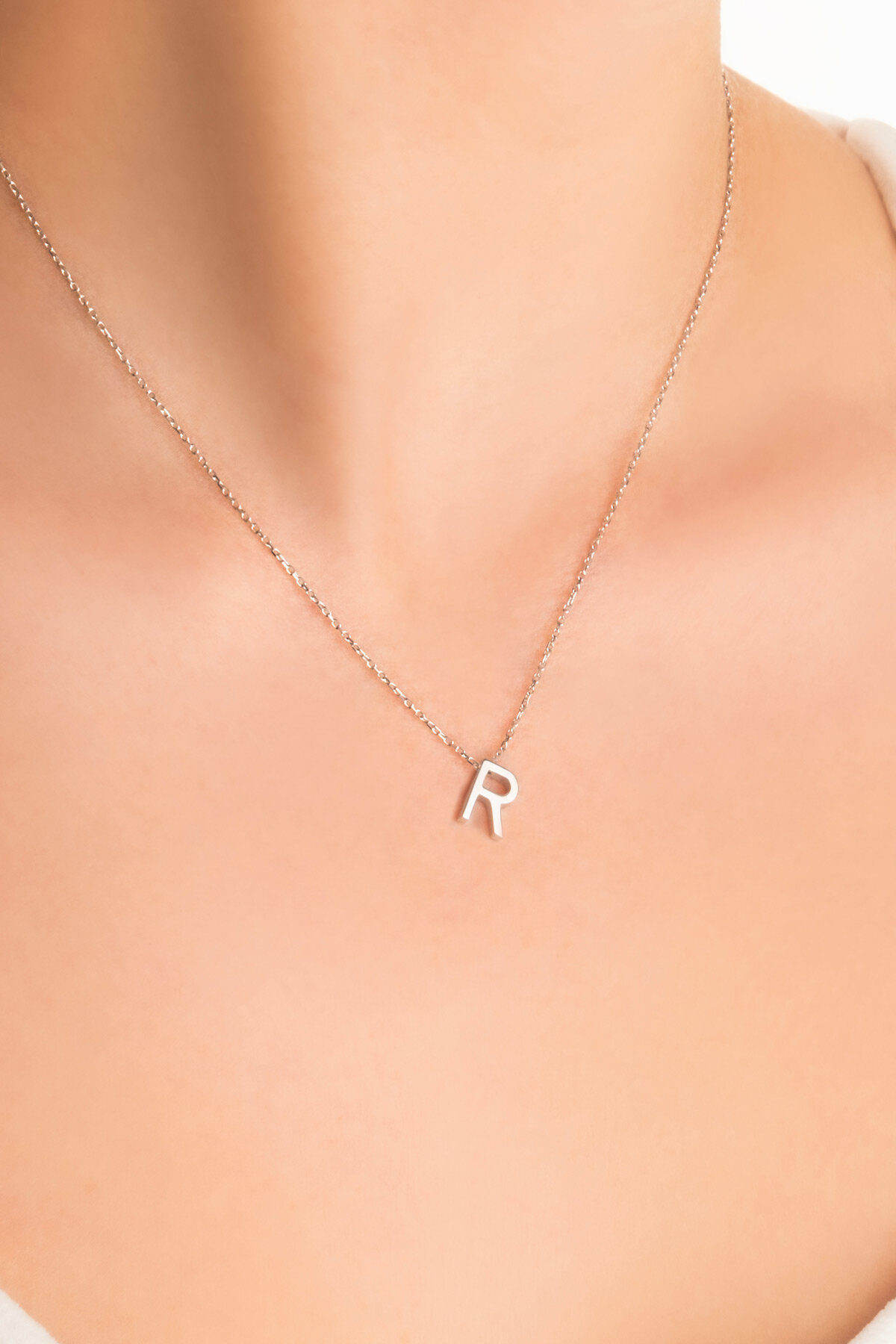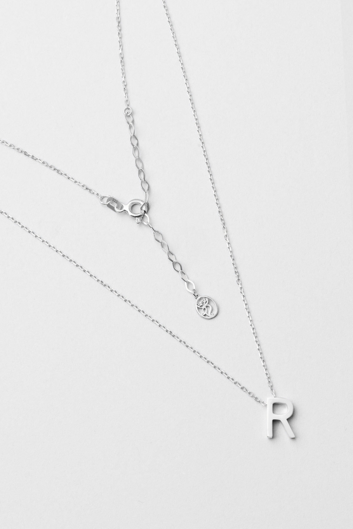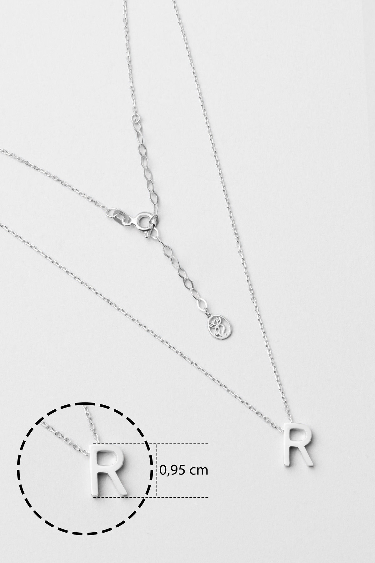 My Story R Harfi 18 Ayar Beyaz Altın Kaplama 45 Cm Gümüş Kolye