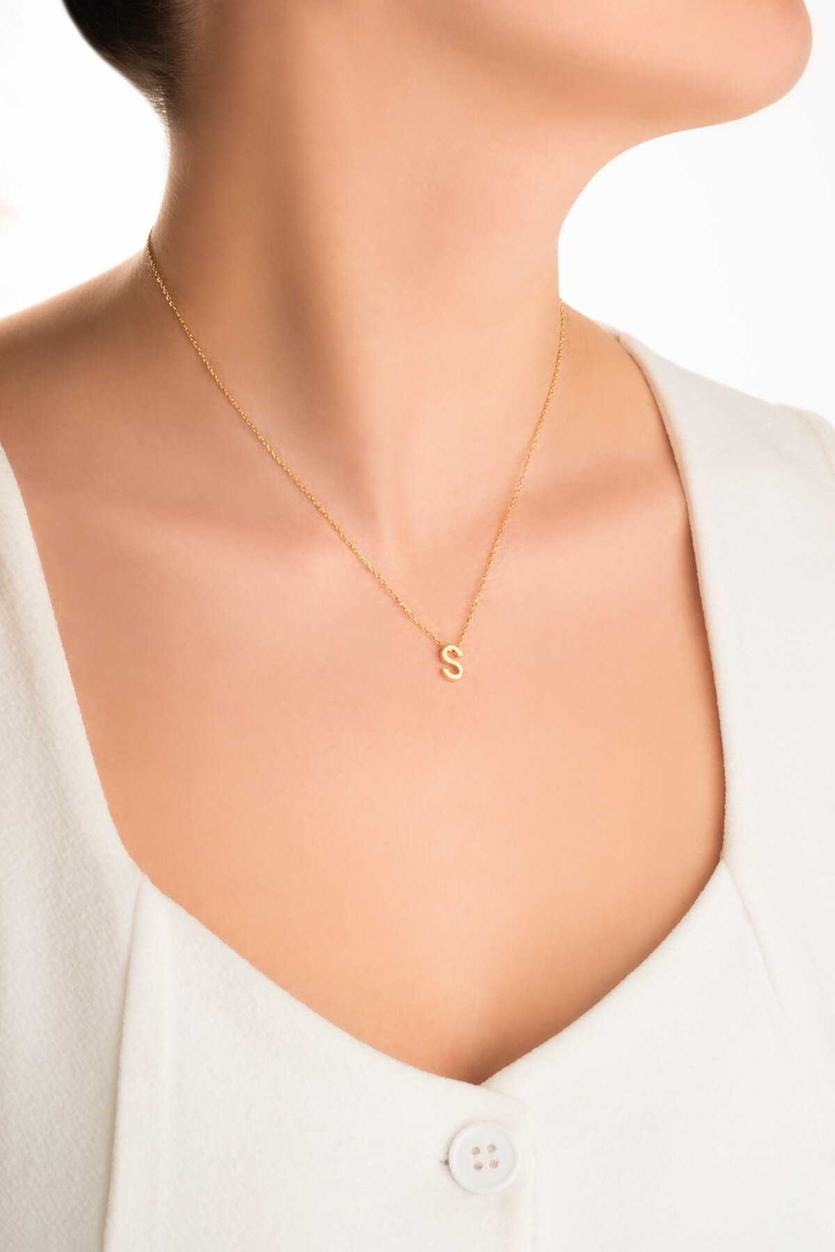 My Story S Harfi 18 Ayar Sarı Altın Kaplama 45 Cm Gümüş Kolye