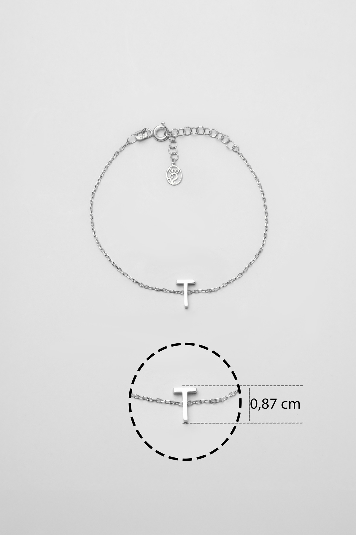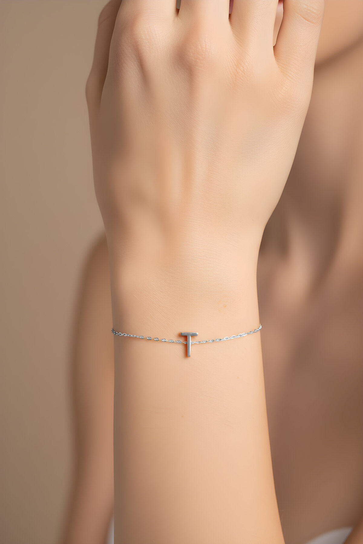 My Story T Harfi 18 Ayar Beyaz Altın Kaplama 18 Cm Gümüş Bileklik
