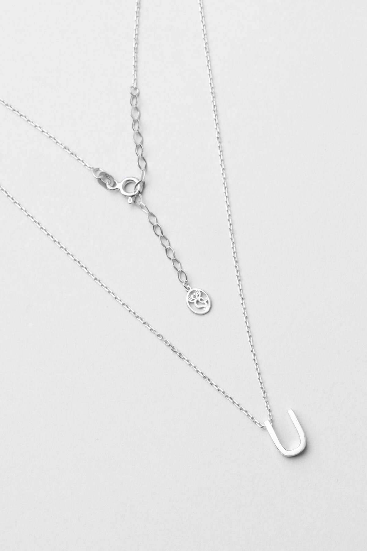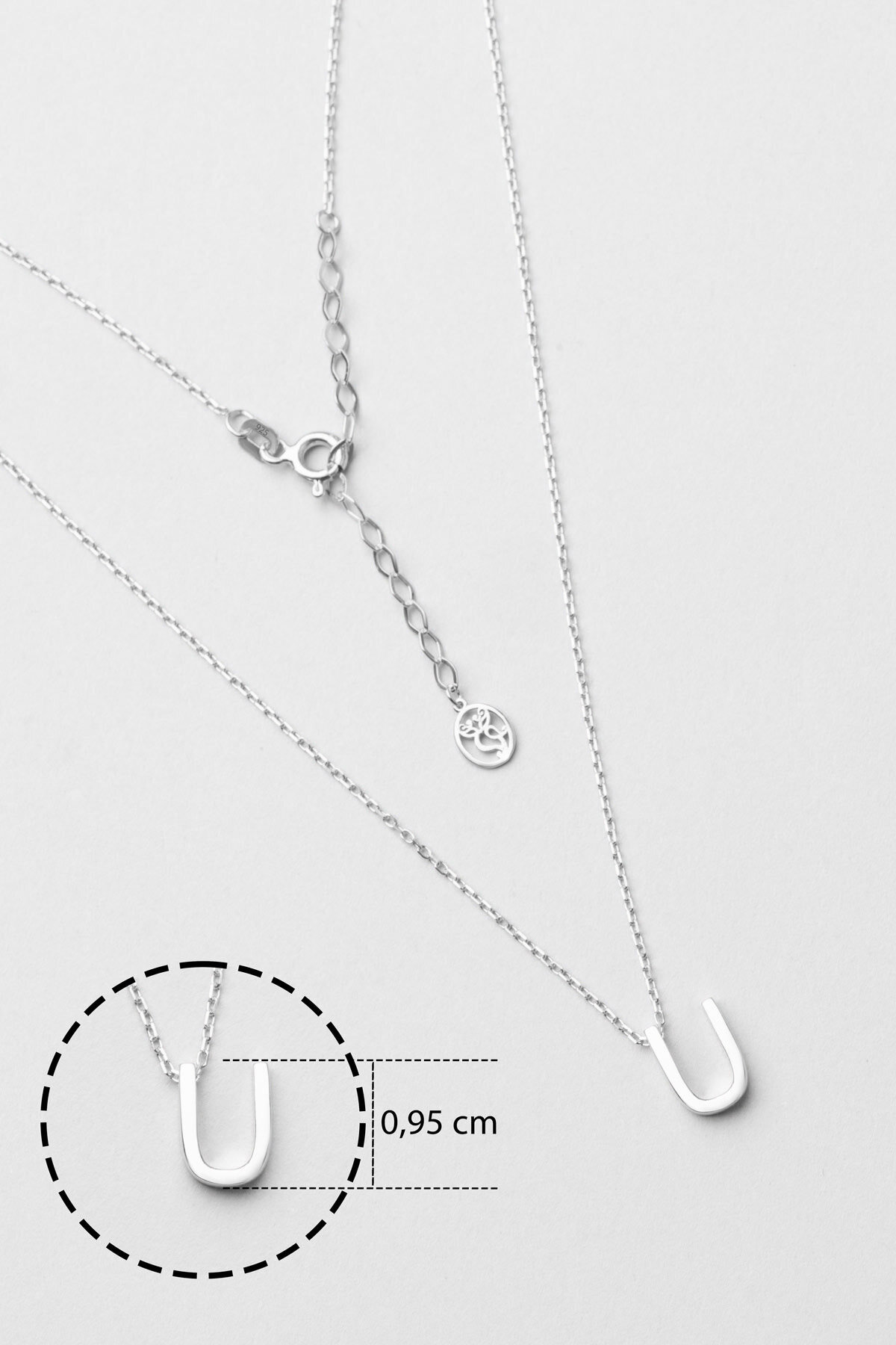 My Story U Harfi 18 Ayar Beyaz Altın Kaplama 45 Cm Gümüş Kolye