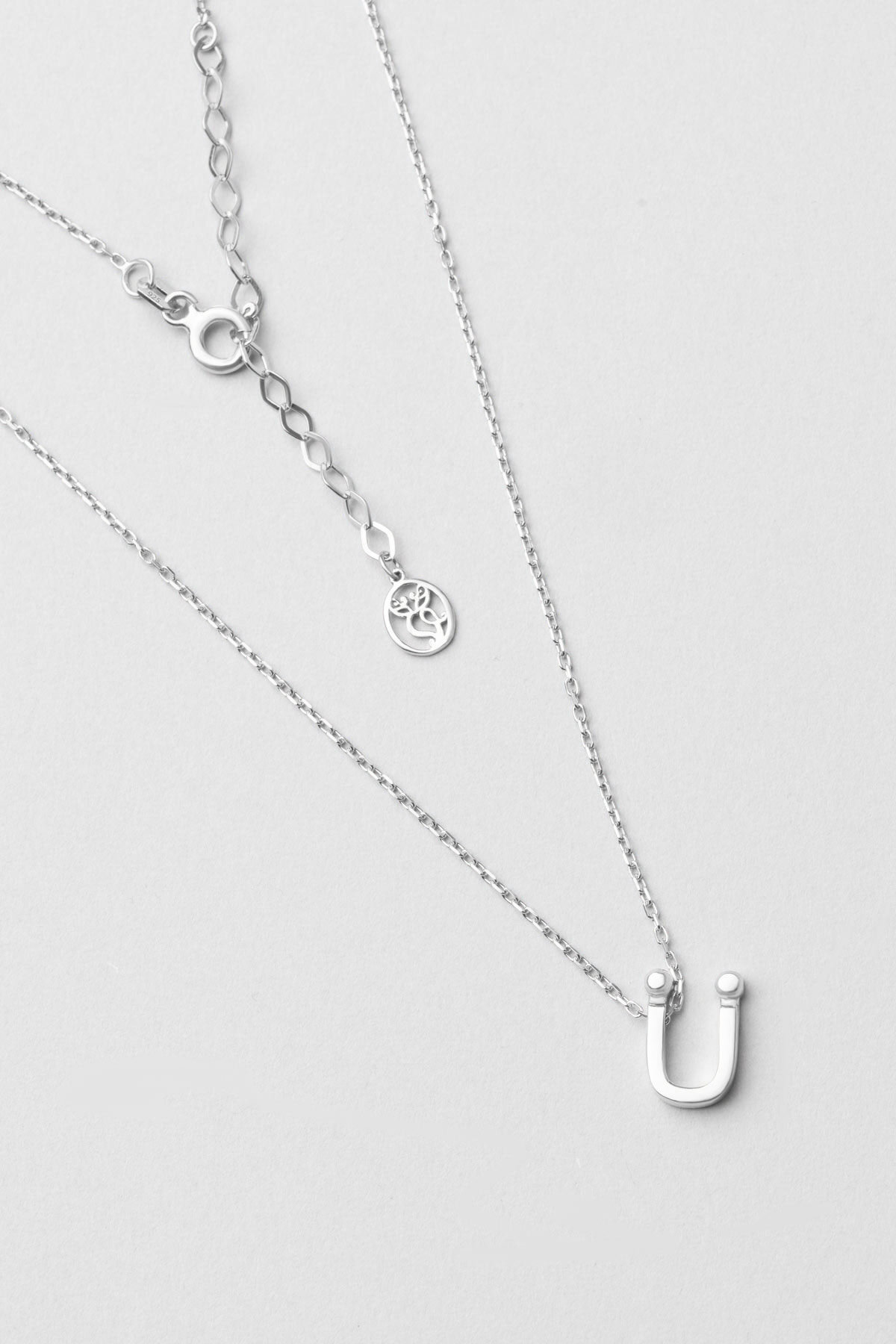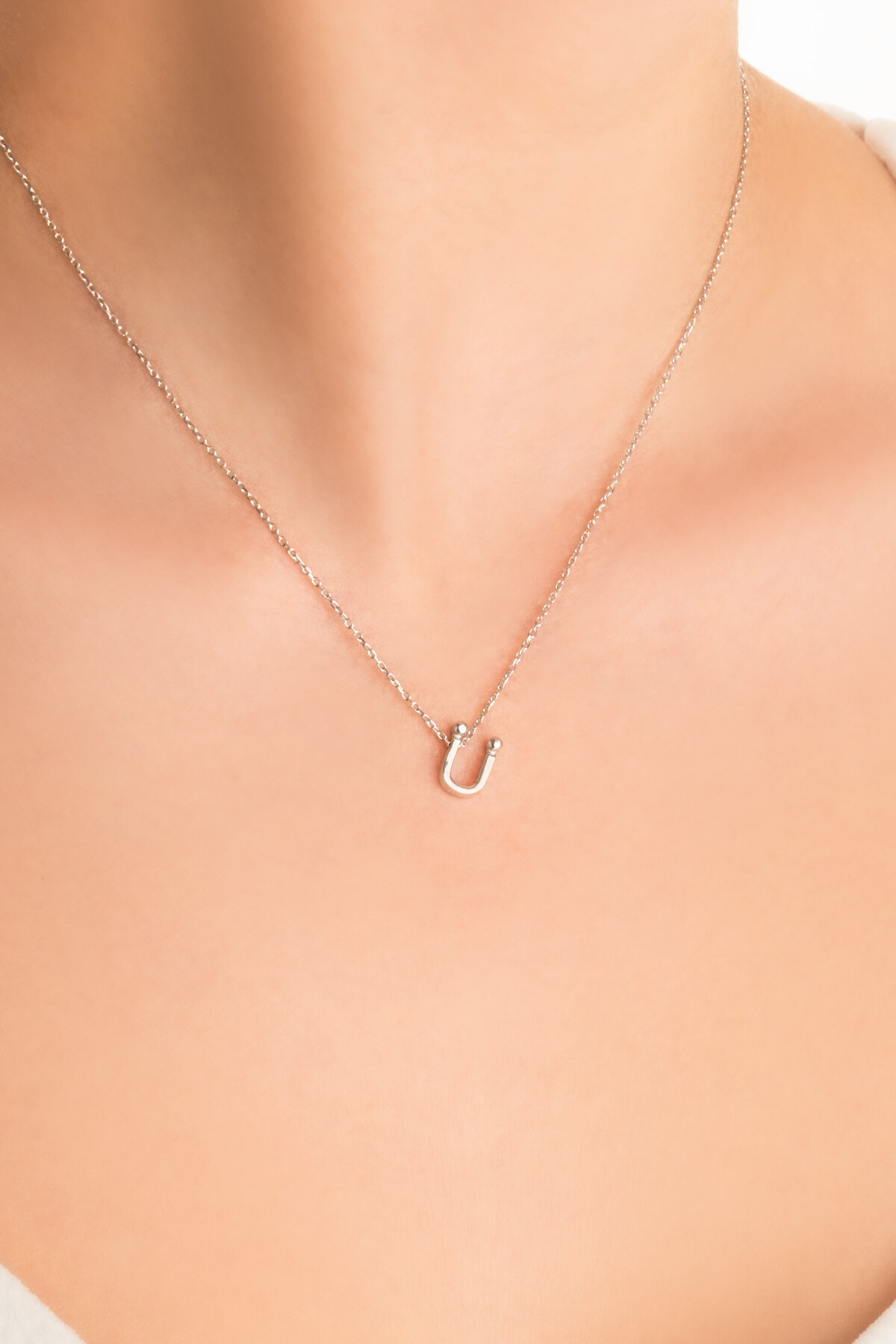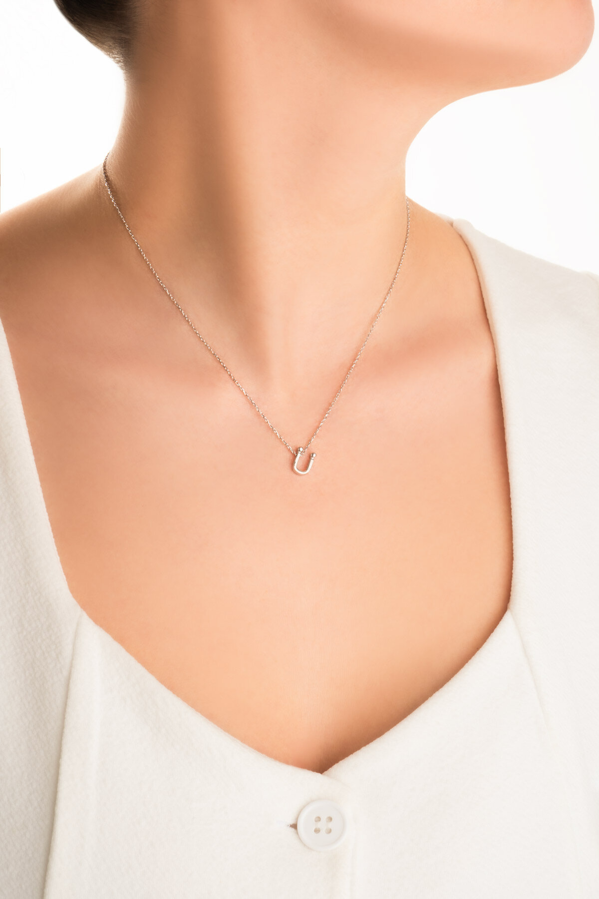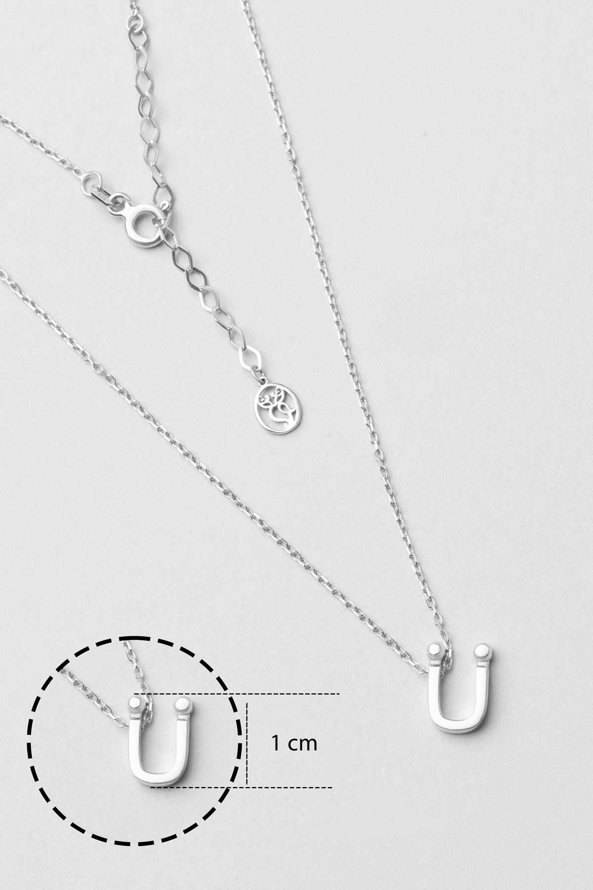 My Story Ü Harfi 18 Ayar Beyaz Altın Kaplama 45 Cm Gümüş Kolye