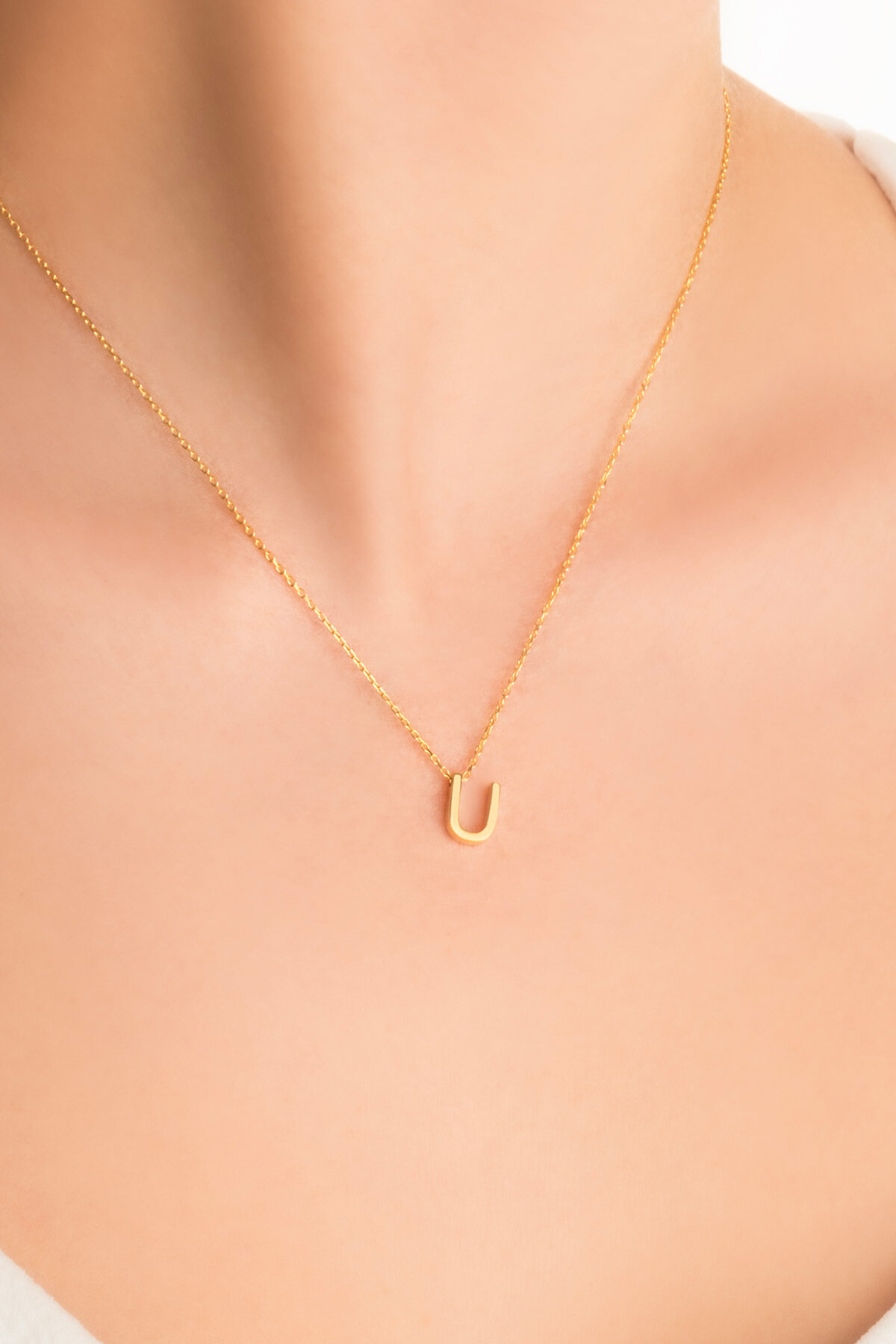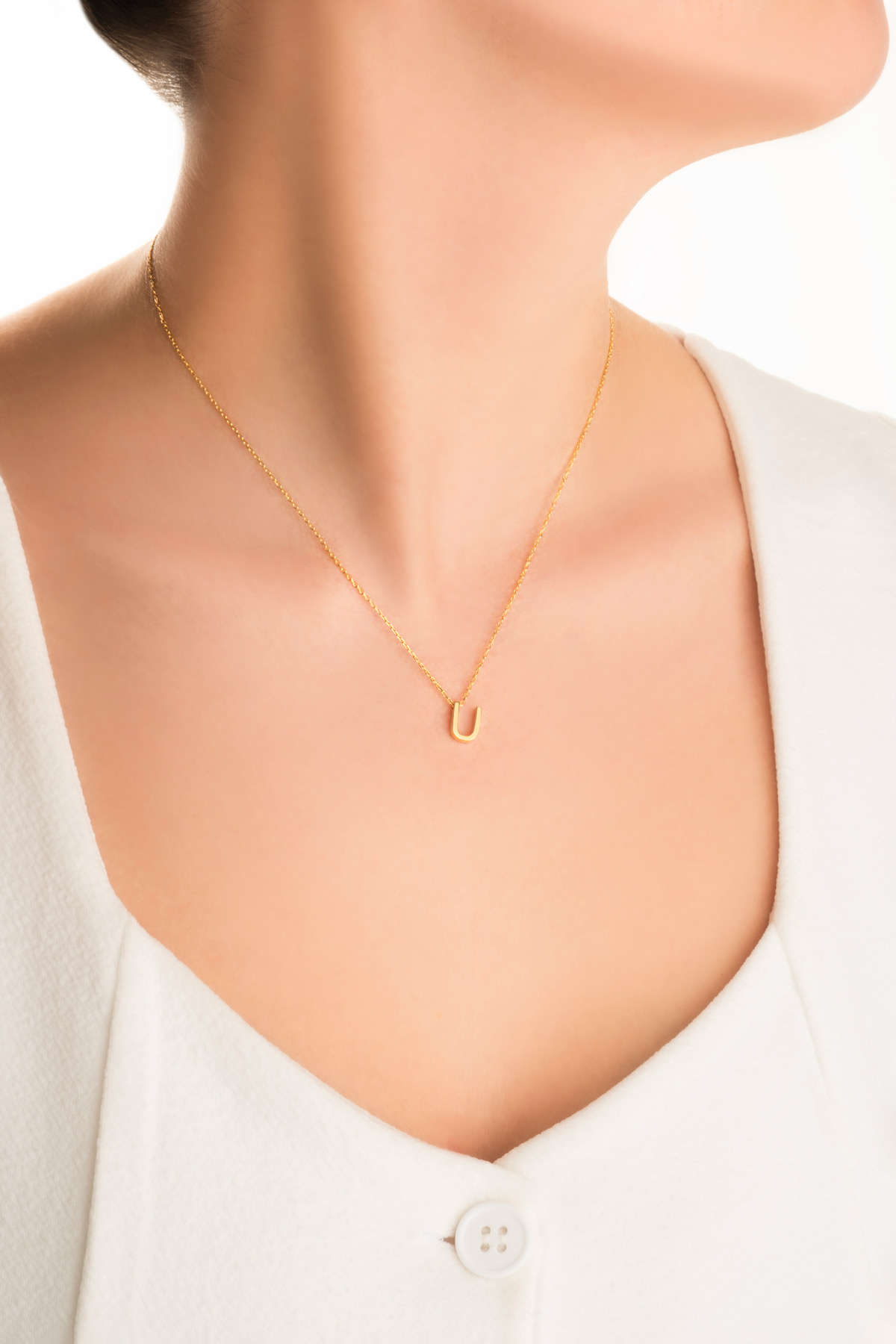 My Story U Harfi 18 Ayar Sarı Altın Kaplama 45 Cm Gümüş Kolye