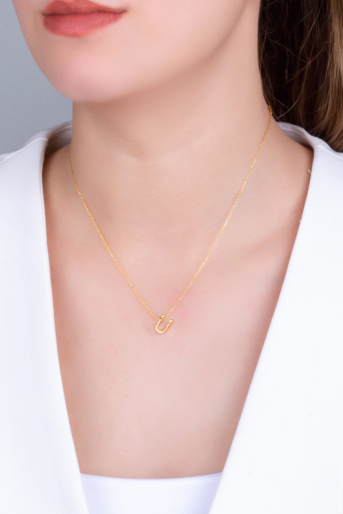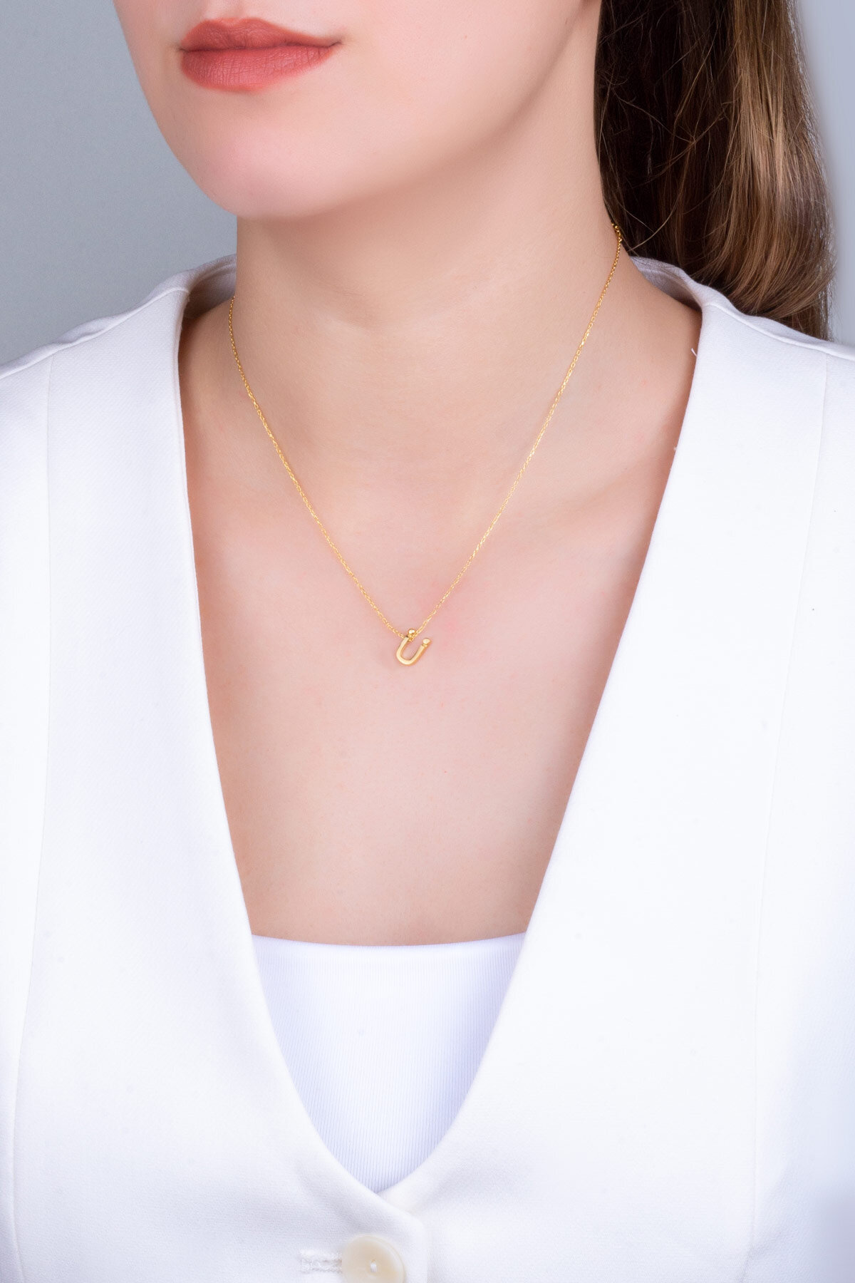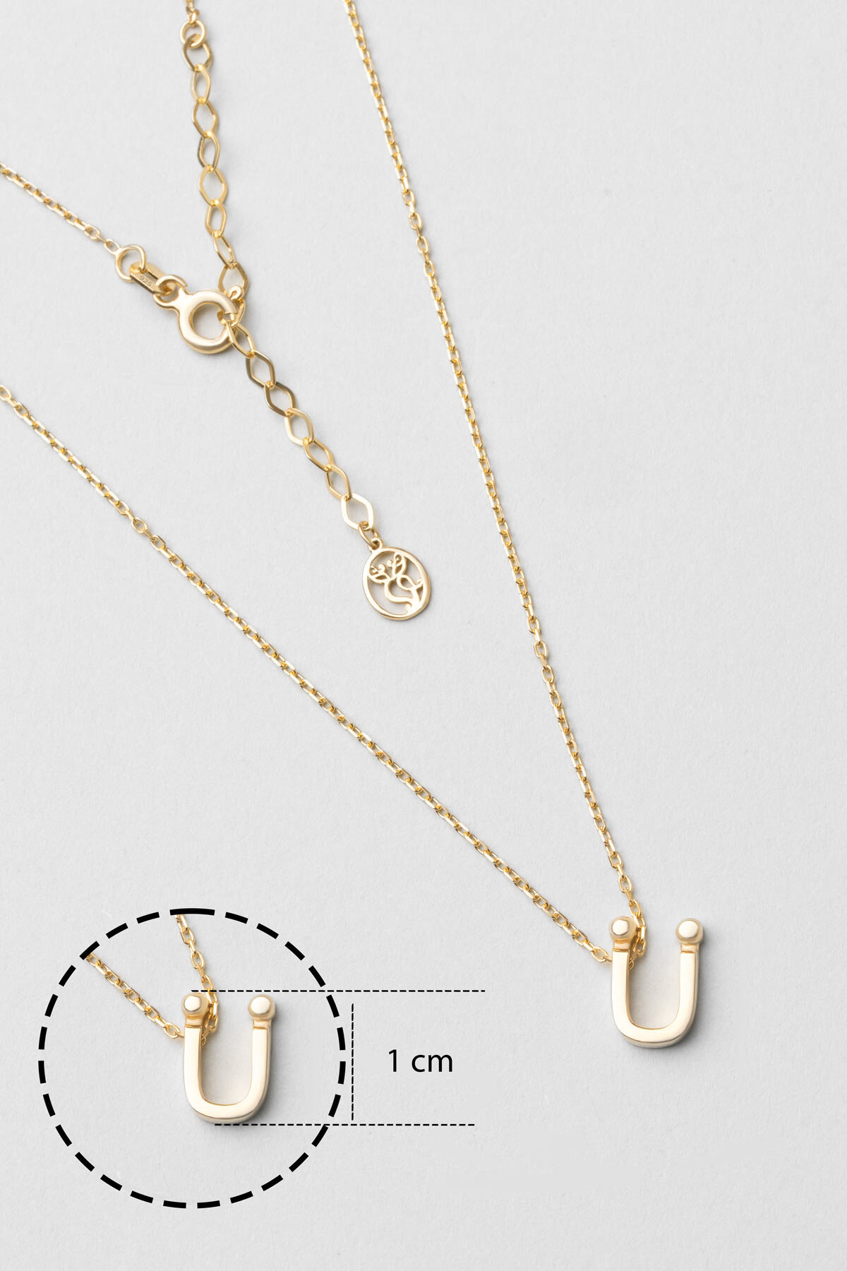 My Story Ü Harfi 18 Ayar Sarı Altın Kaplama 45 Cm Gümüş Kolye