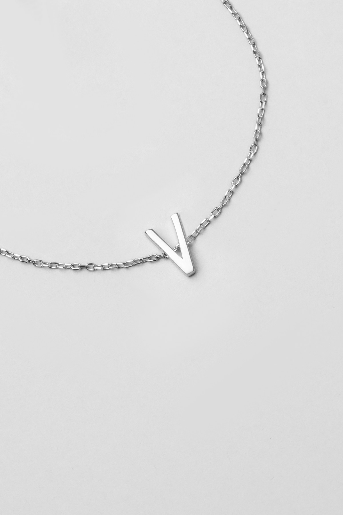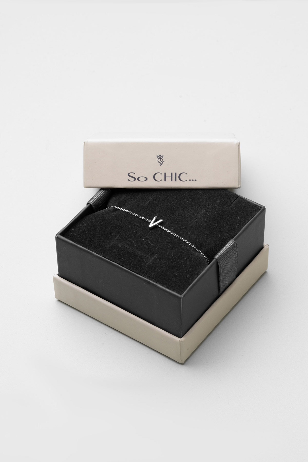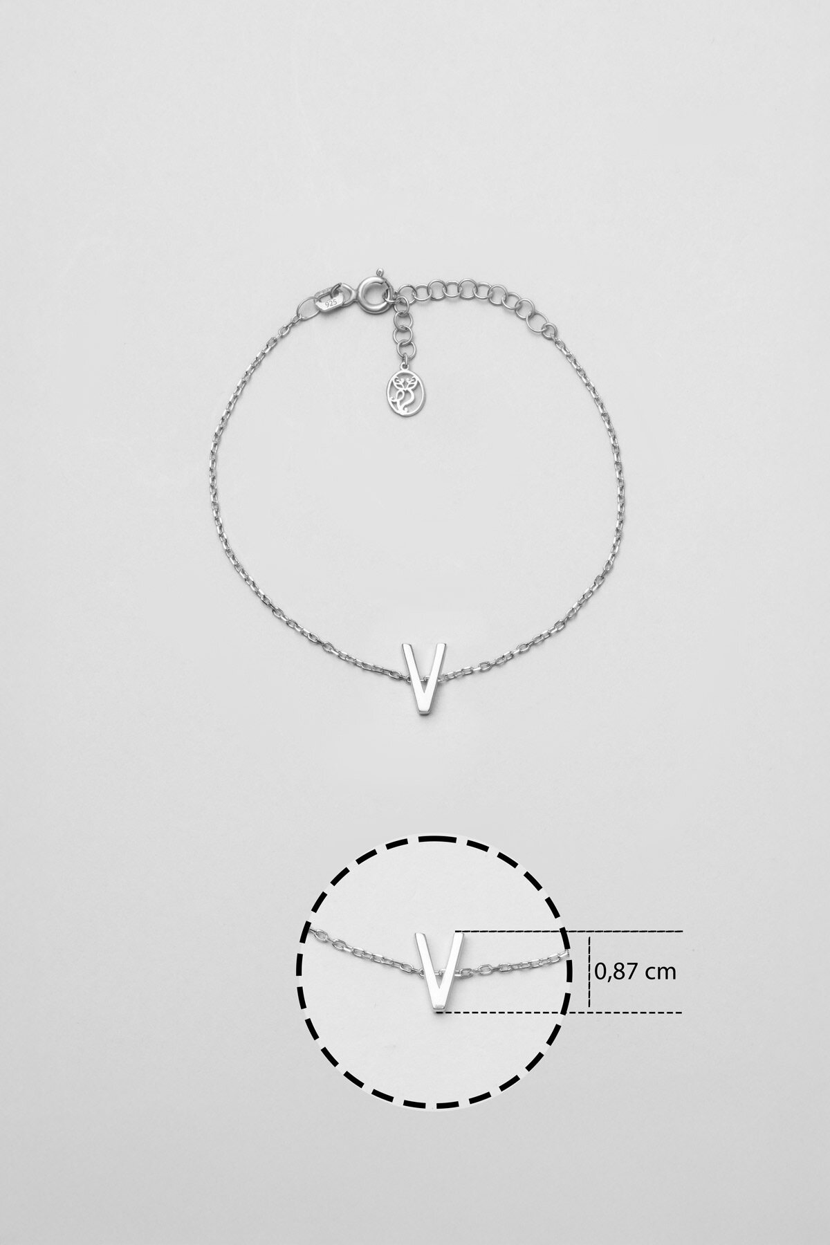 My Story V Harfi 18 Ayar Beyaz Altın Kaplama 18 Cm Gümüş Bileklik
