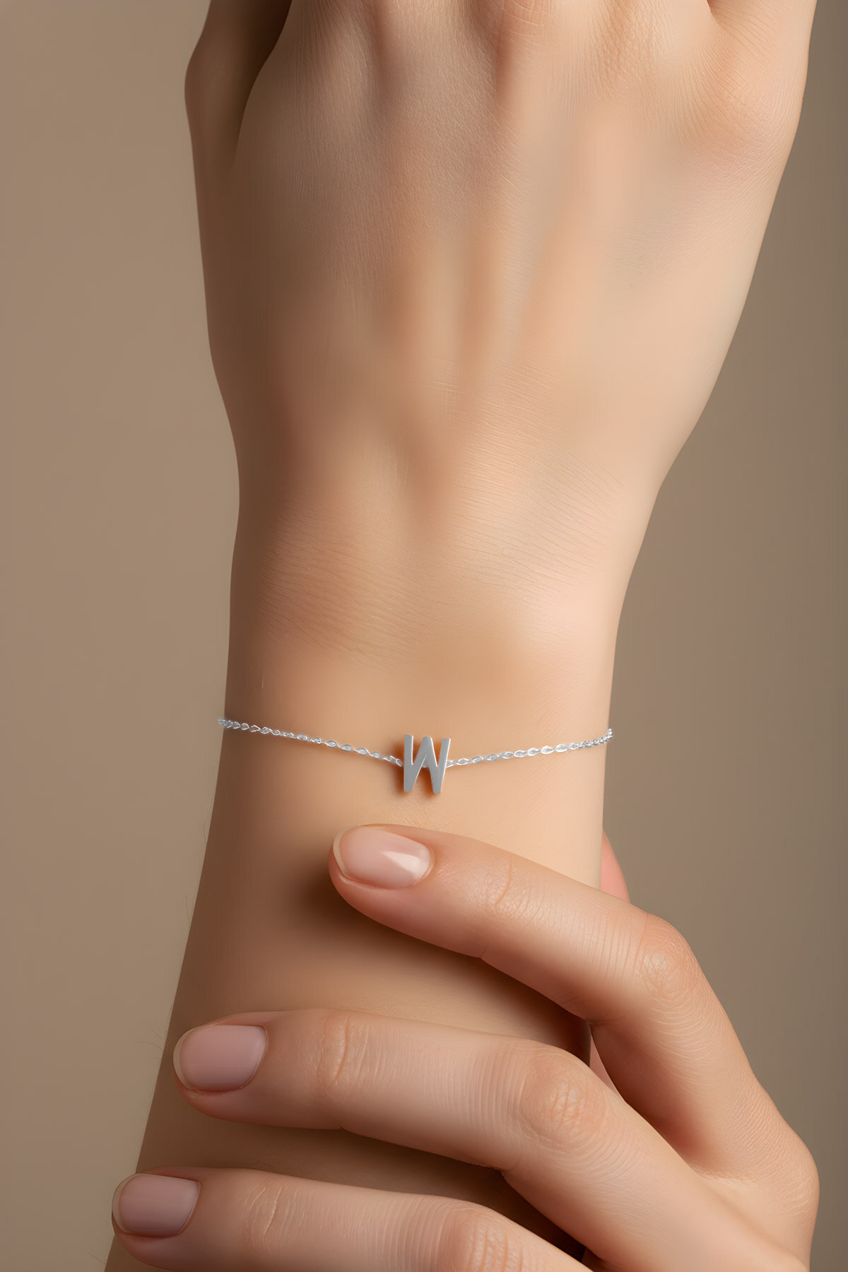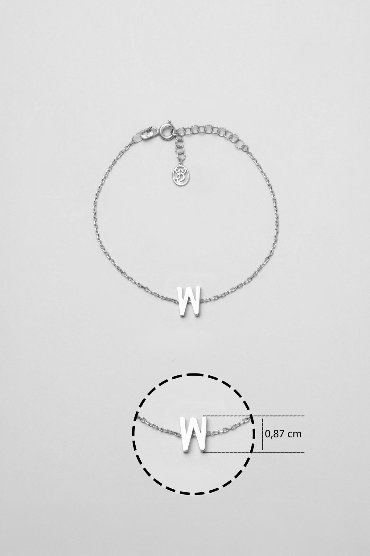 My Story W Harfi 18 Ayar Beyaz Altın Kaplama 18 Cm Gümüş Bileklik