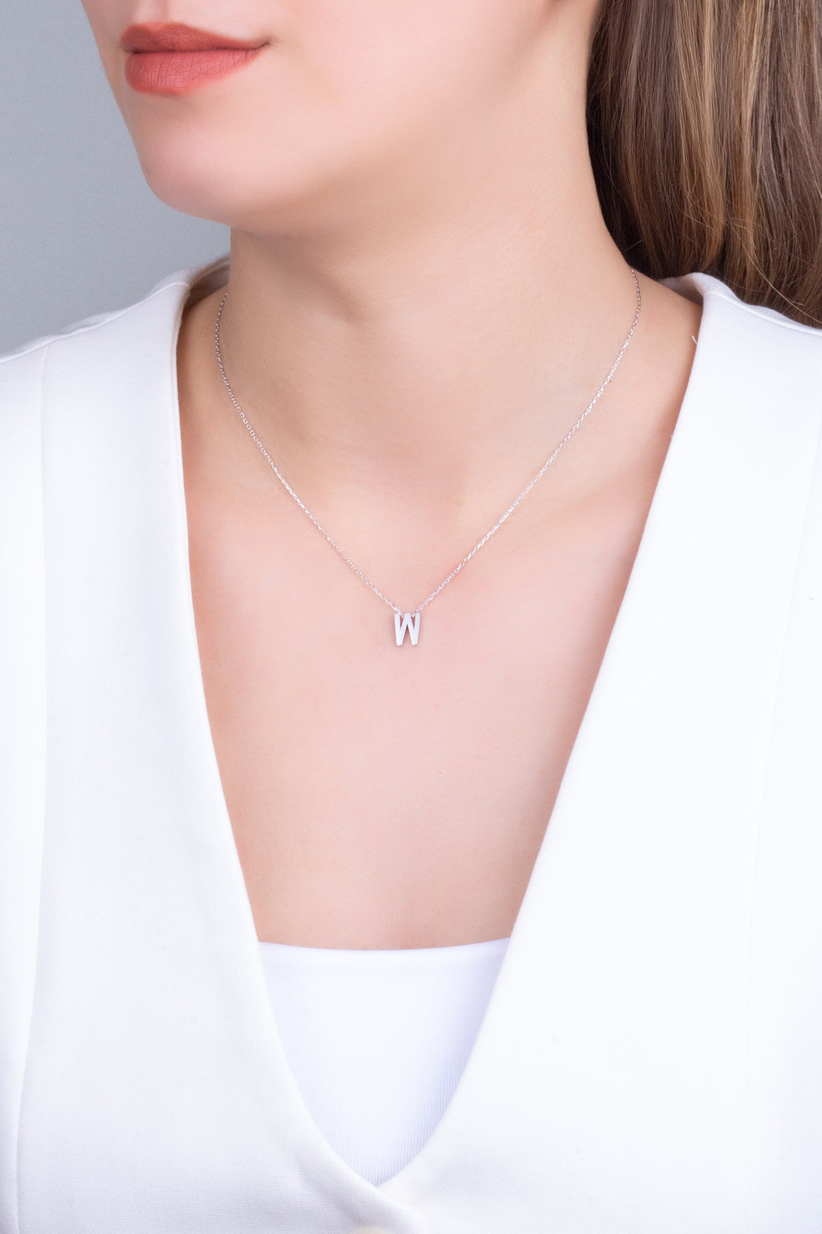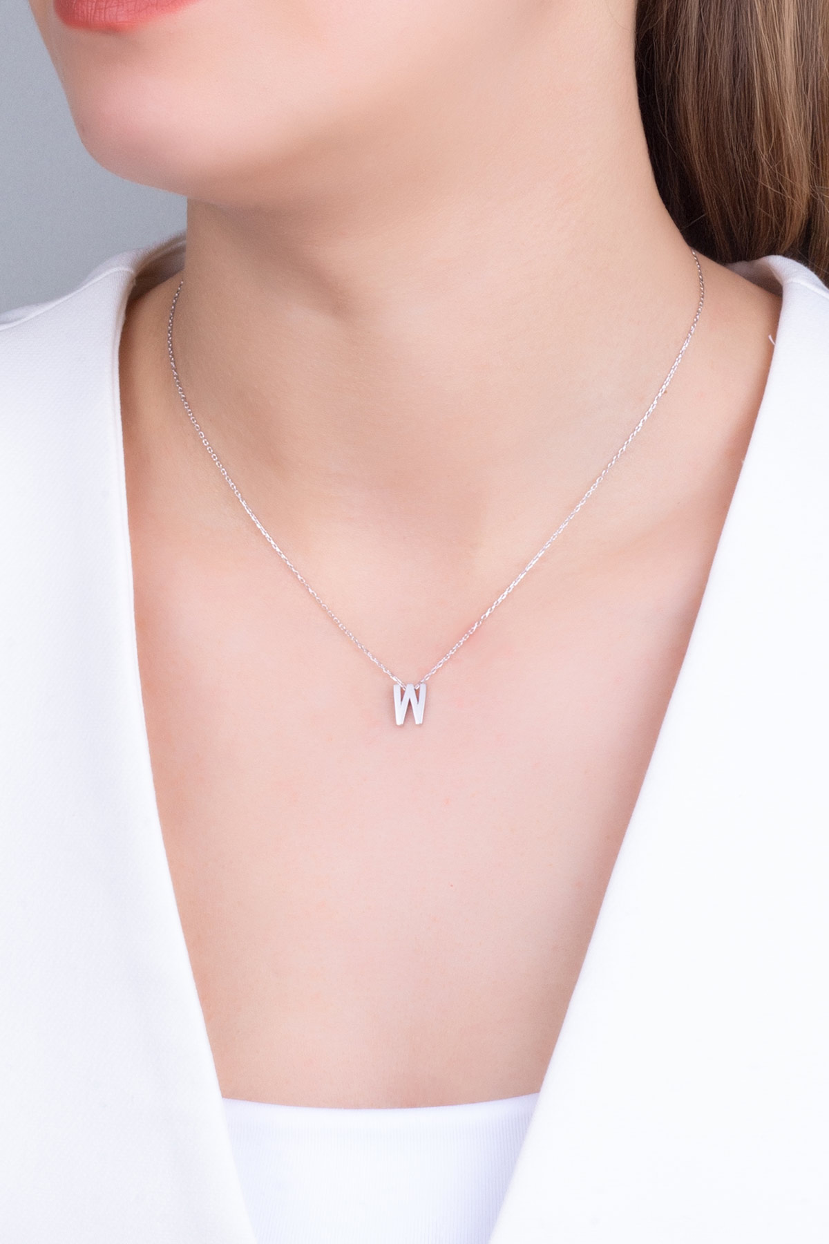 My Story W Harfi 18 Ayar Beyaz Altın Kaplama 45 Cm Gümüş Kolye