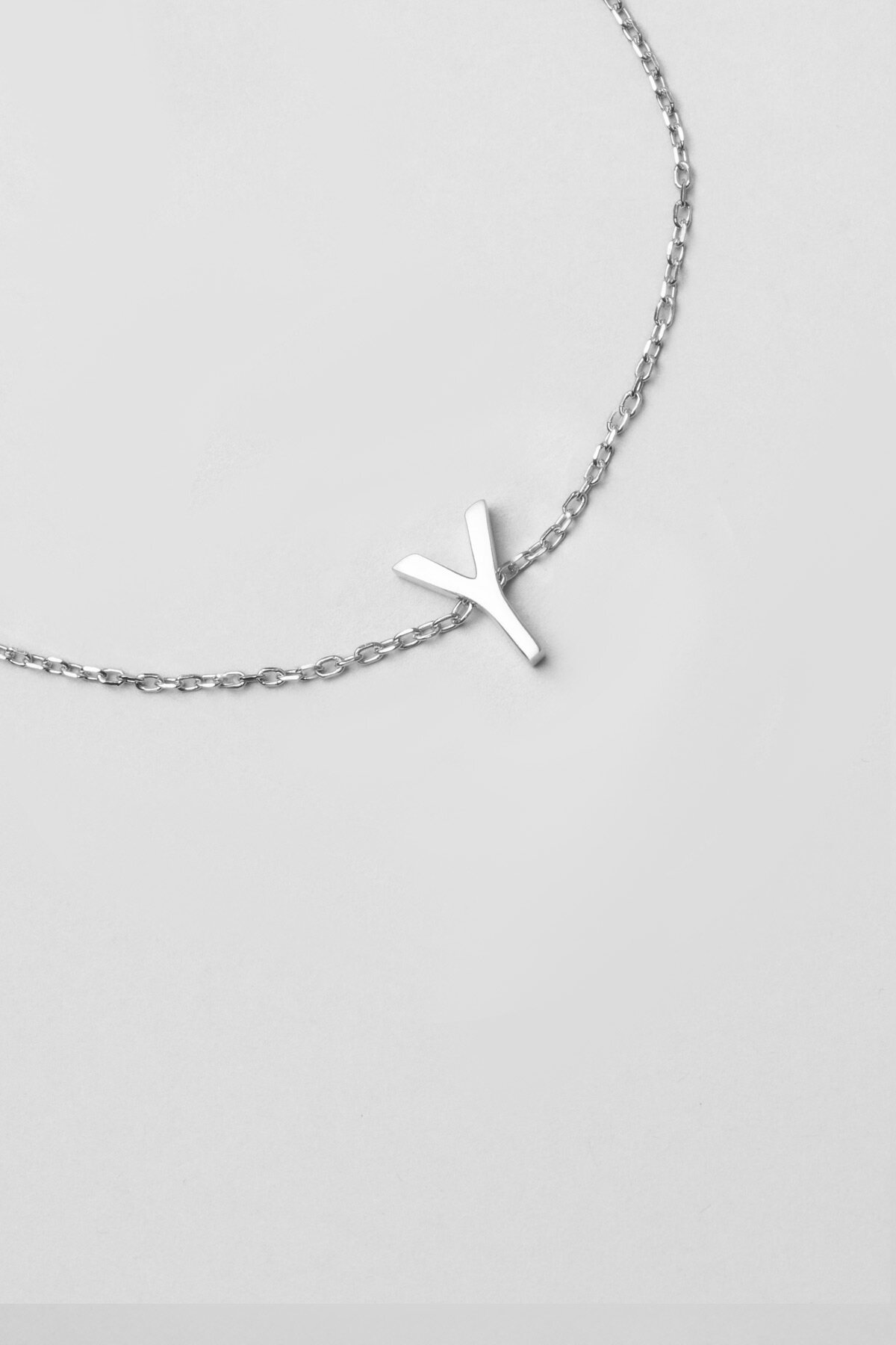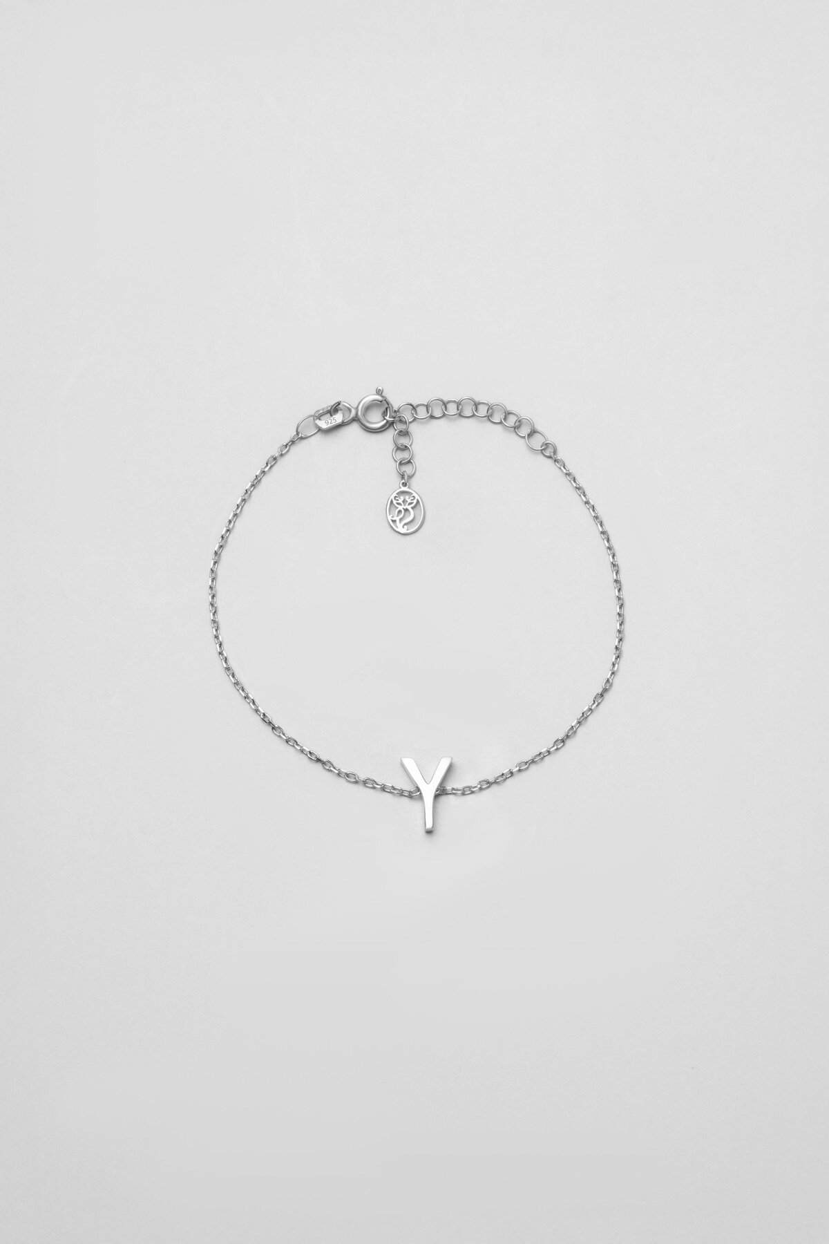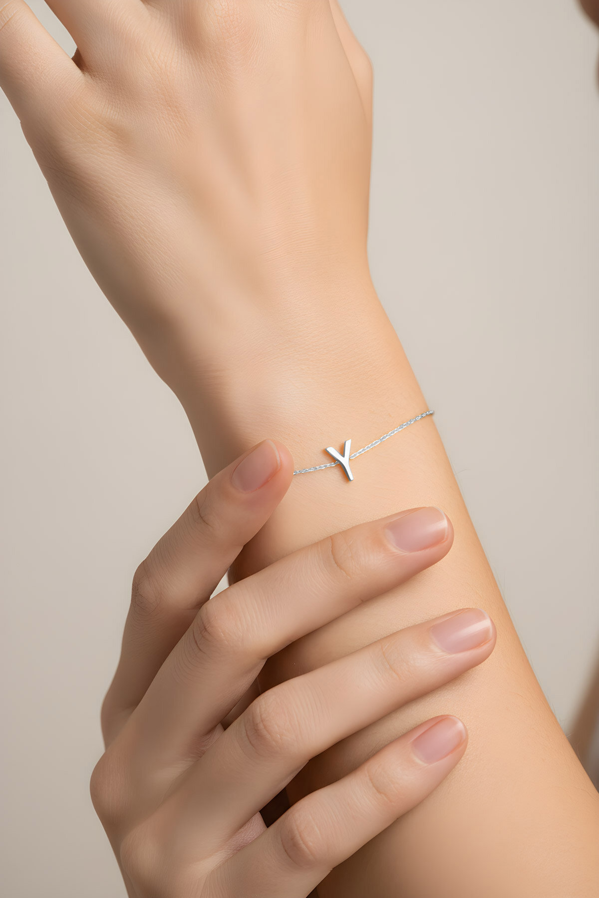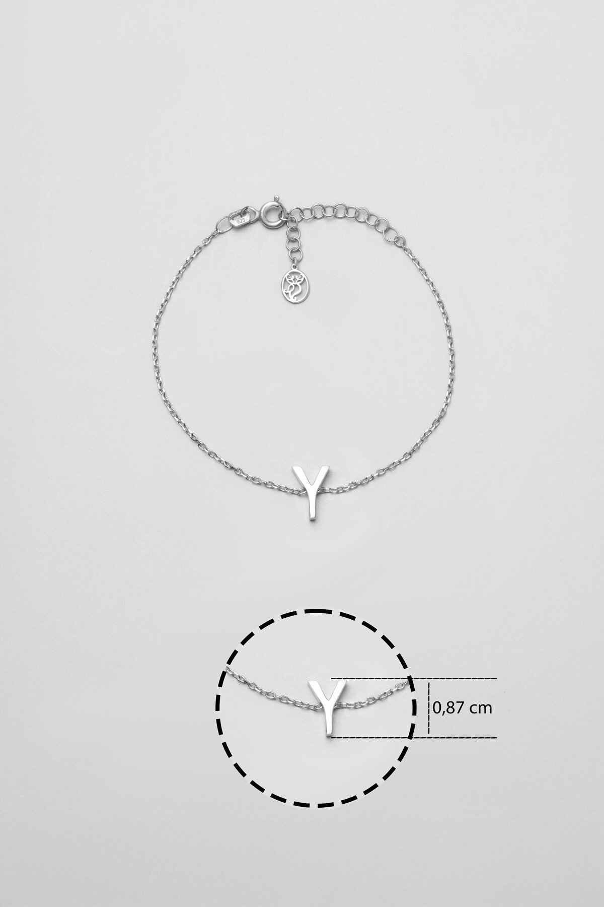 My Story Y Harfi 18 Ayar Beyaz Altın Kaplama 18 Cm Gümüş Bileklik
