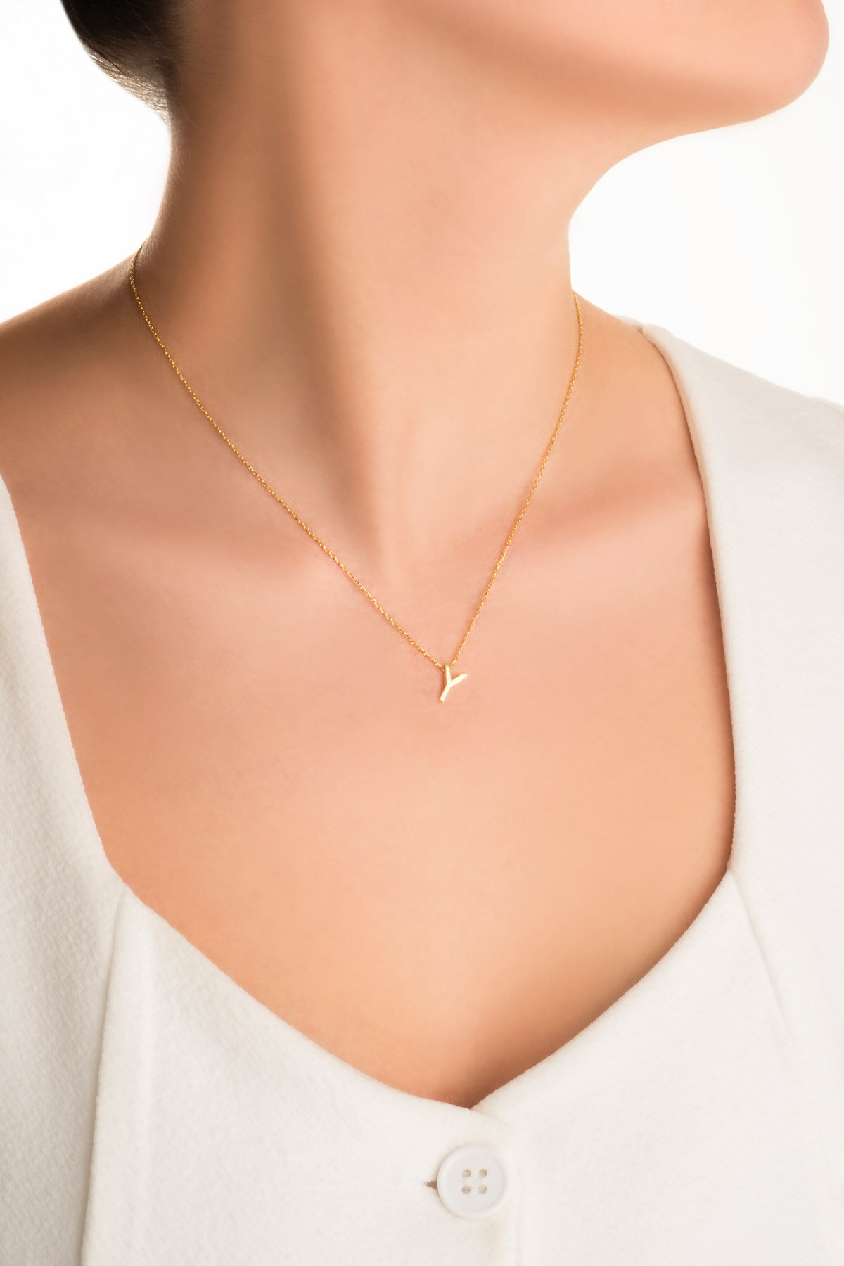 My Story Y Harfi 18 Ayar Sarı Altın Kaplama 45 Cm Gümüş Kolye