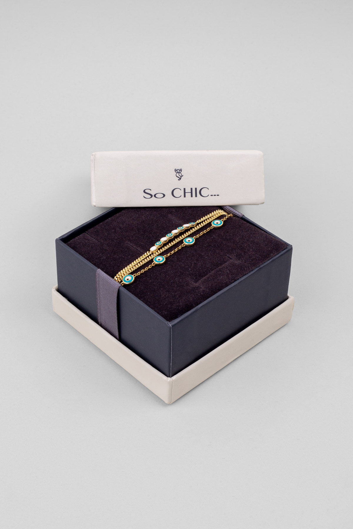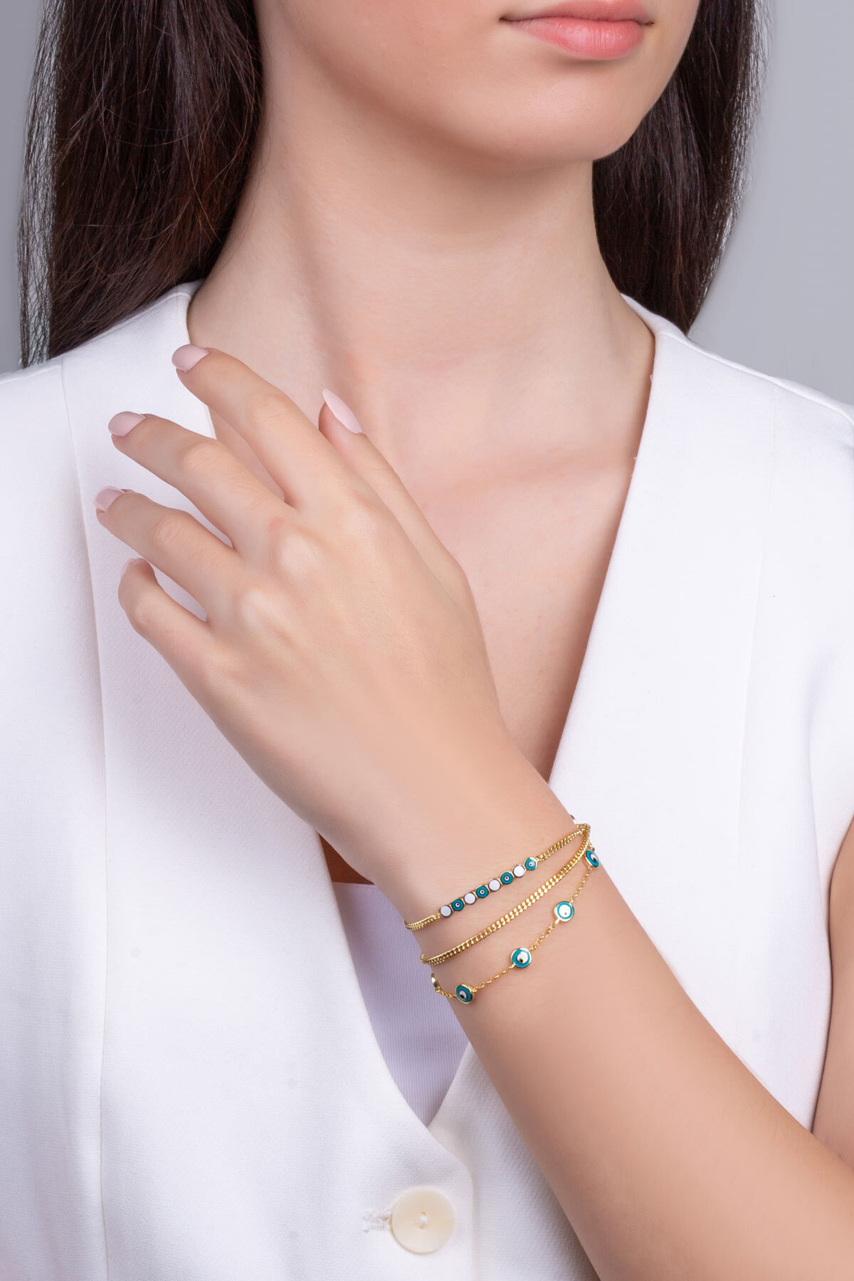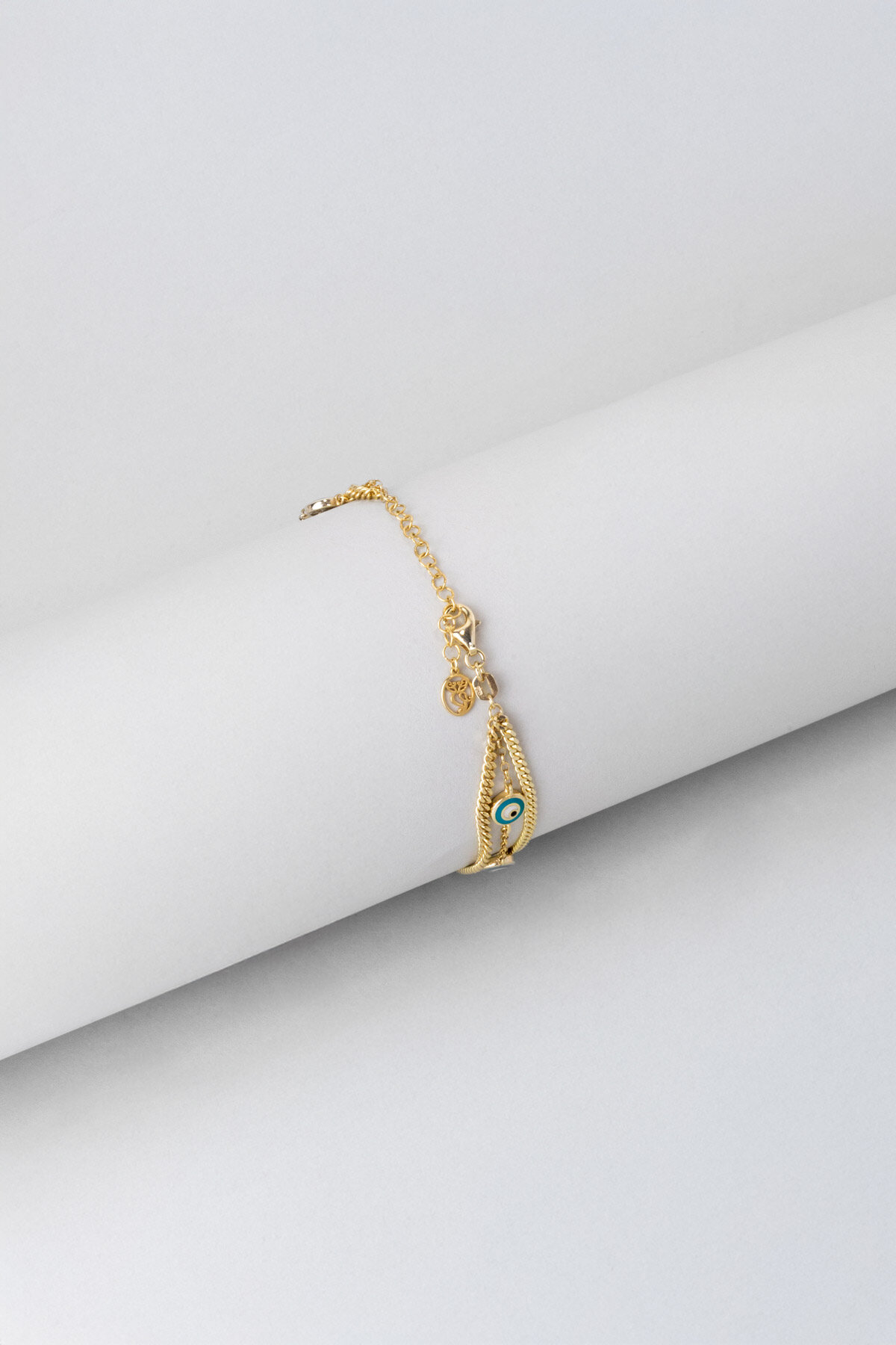 Nazar Işıltısı Üç Sıra 18 Ayar Sarı Altın Kaplama 20 Cm Gümüş Bileklik