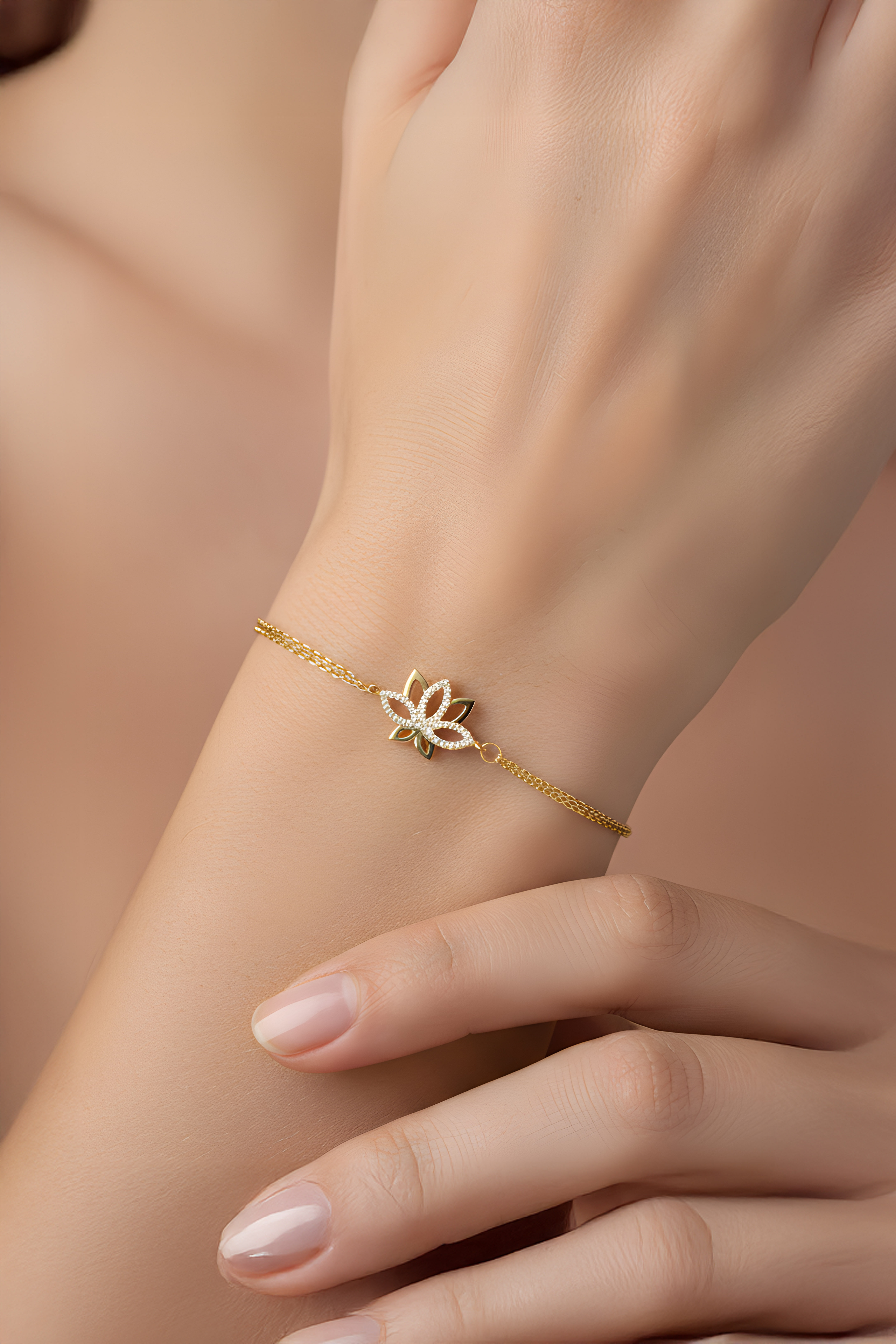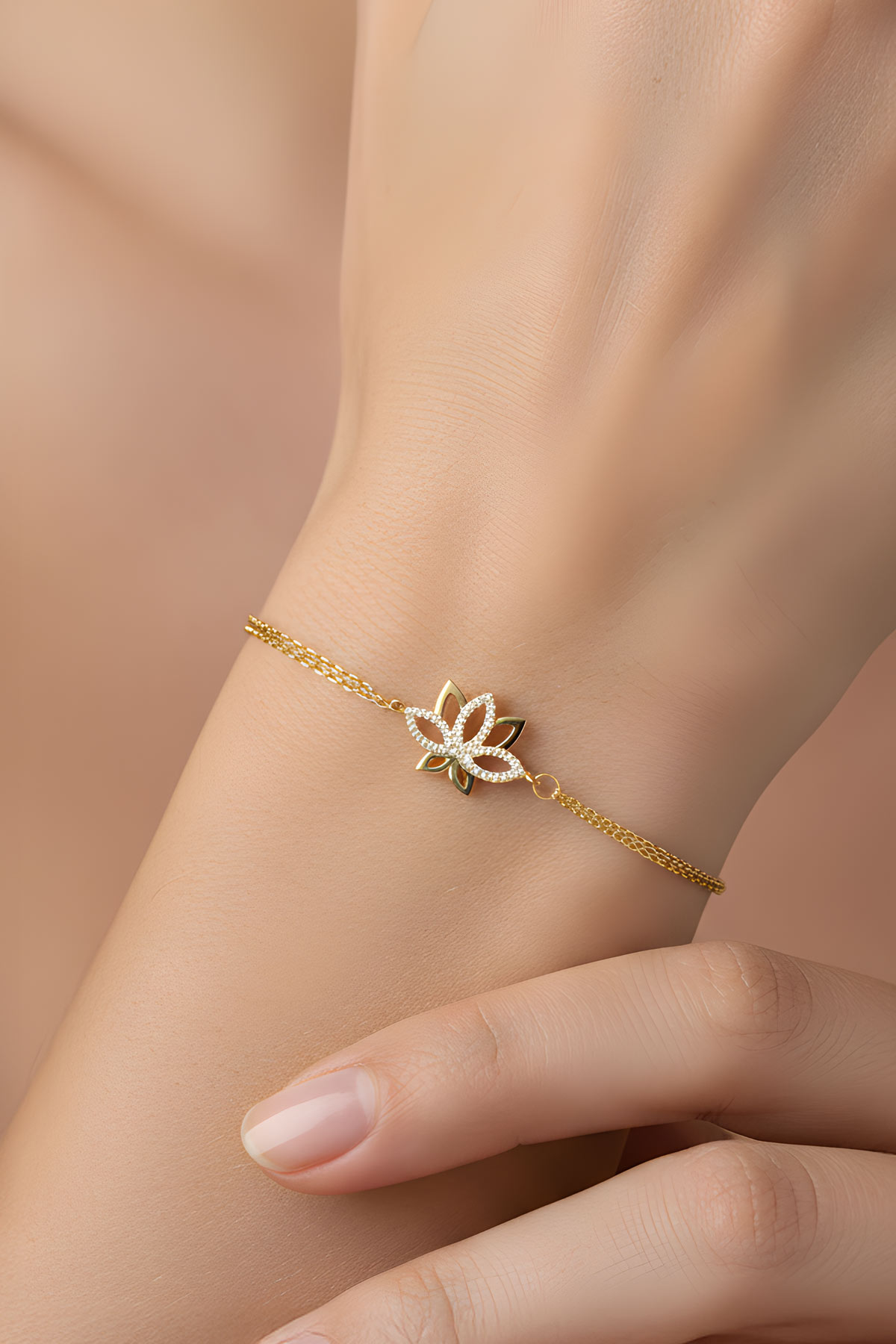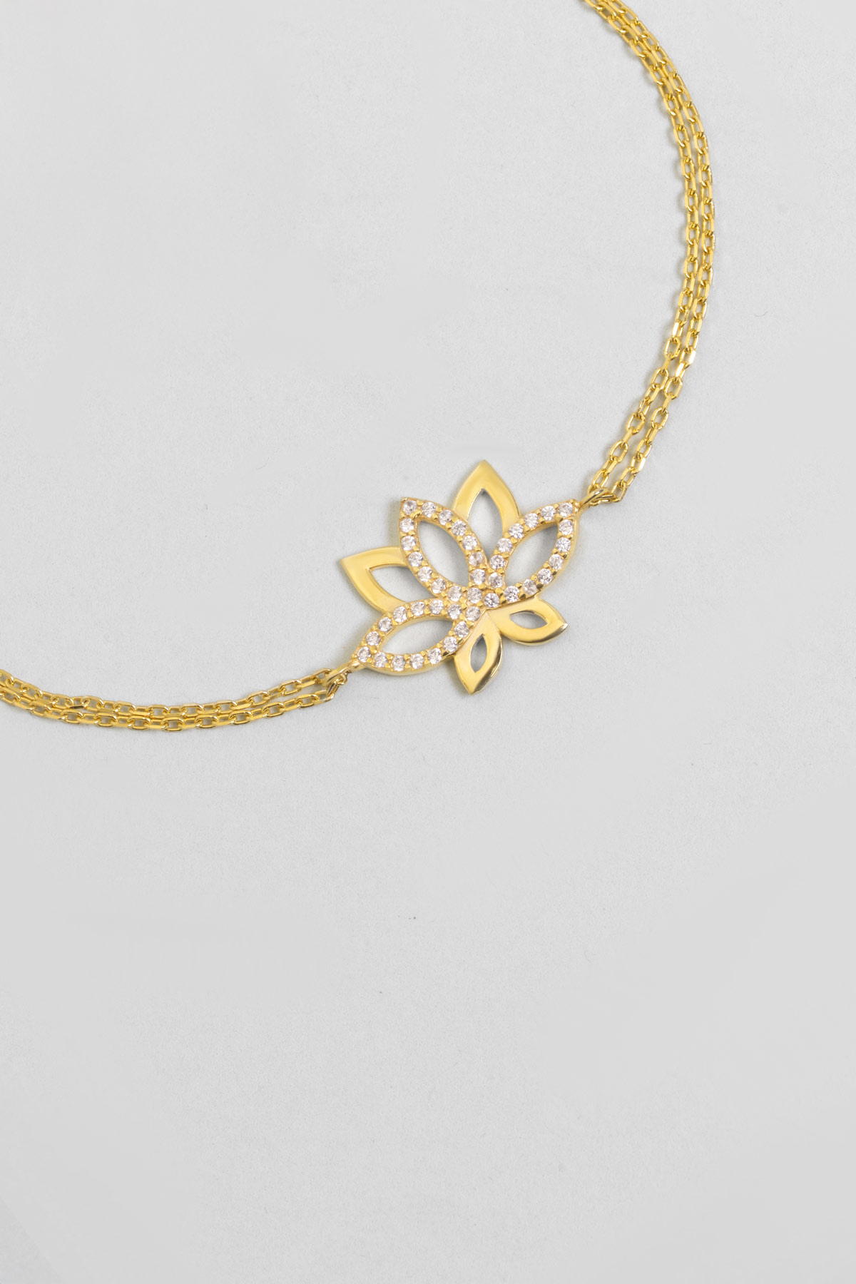 Nilüfer Çiçeği 18 Ayar Sarı Altın Kaplama 20 Cm Gümüş Minimal Bileklik