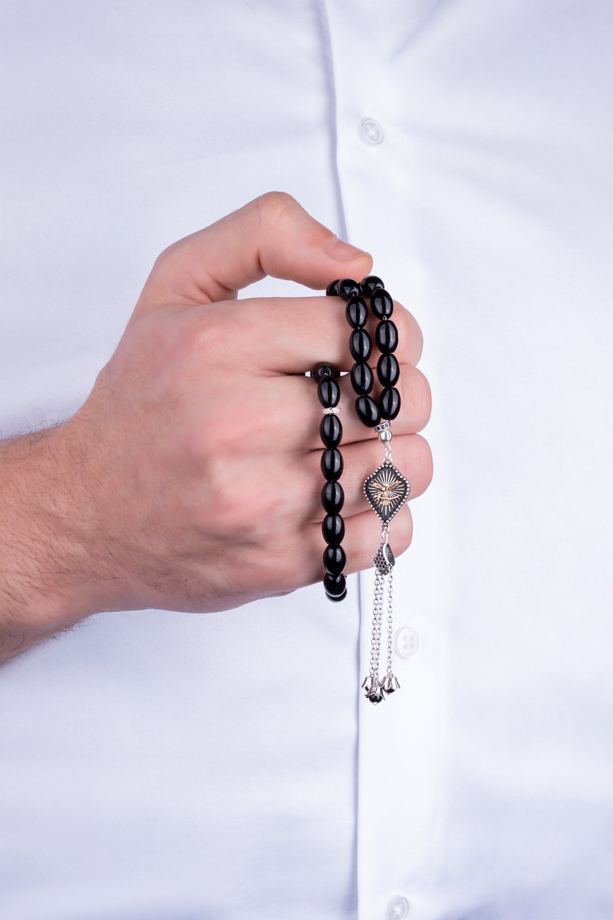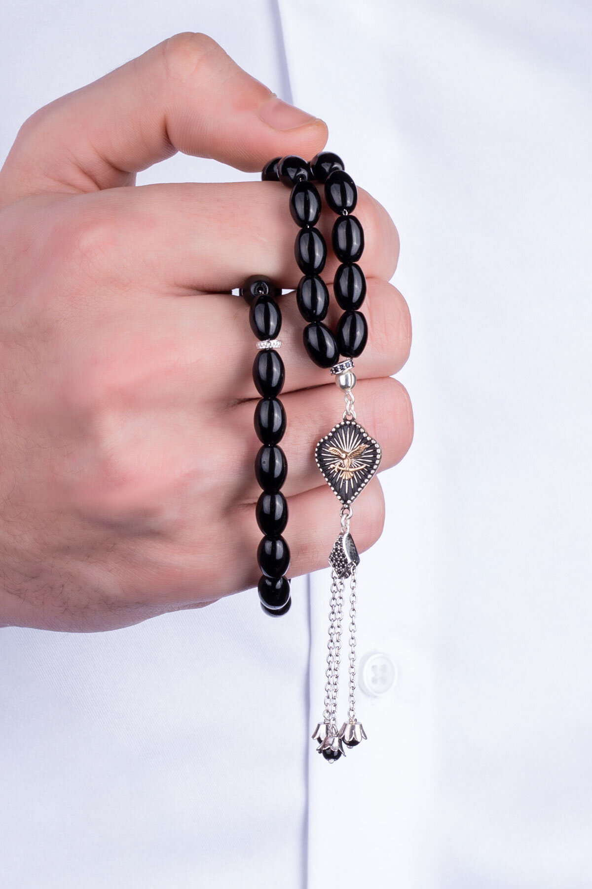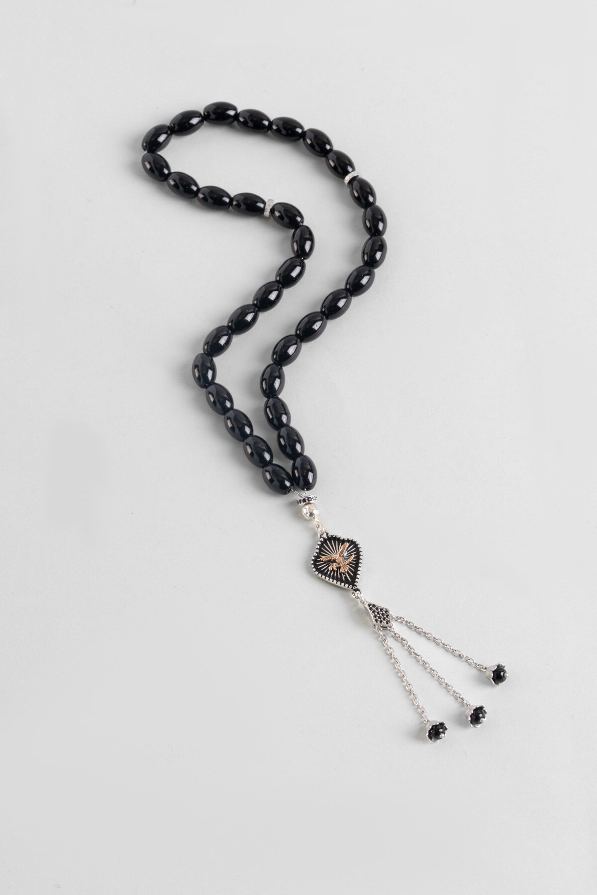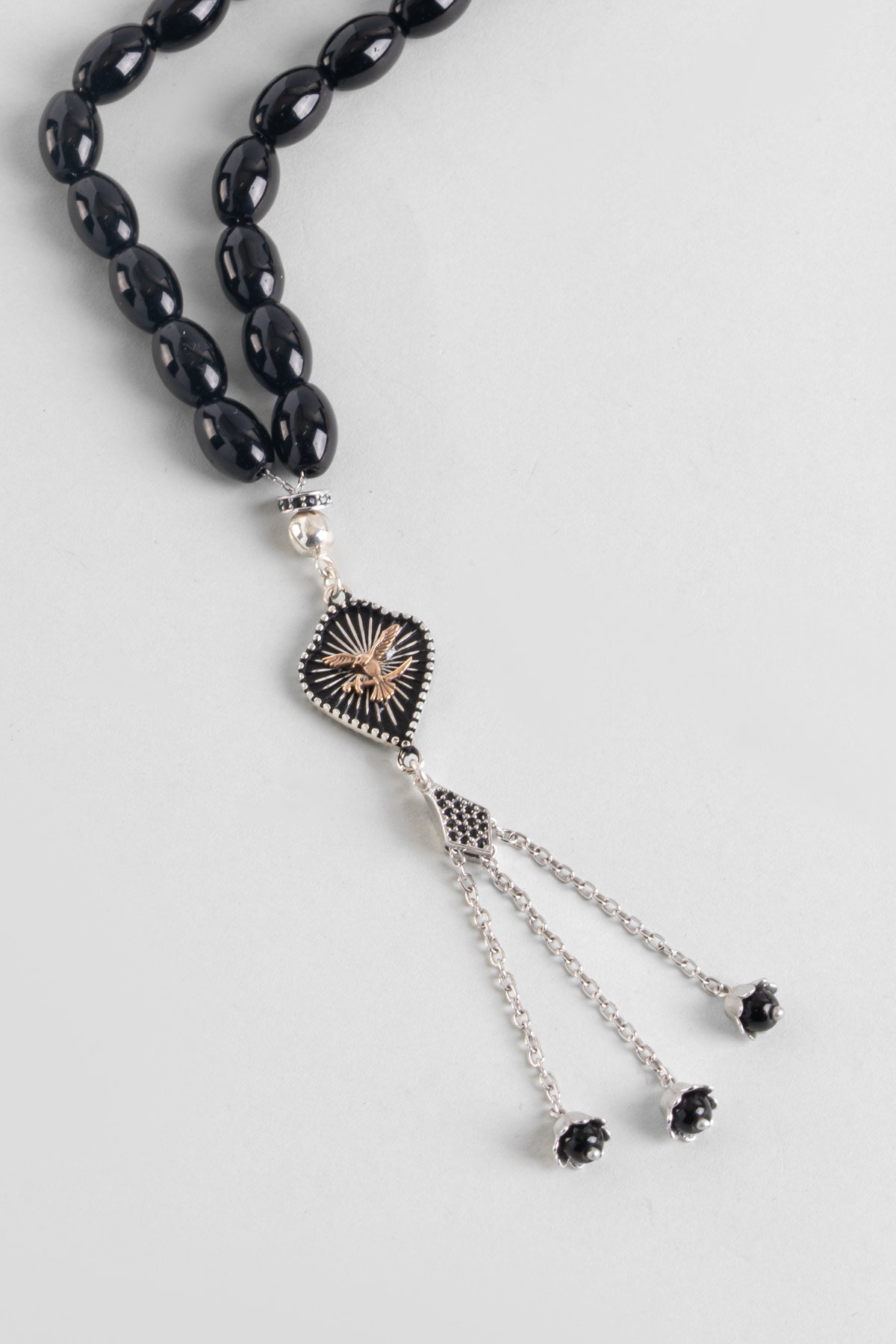 Oniks Taşlı Kartal Figürlü 23 Cm Gümüş Tesbih