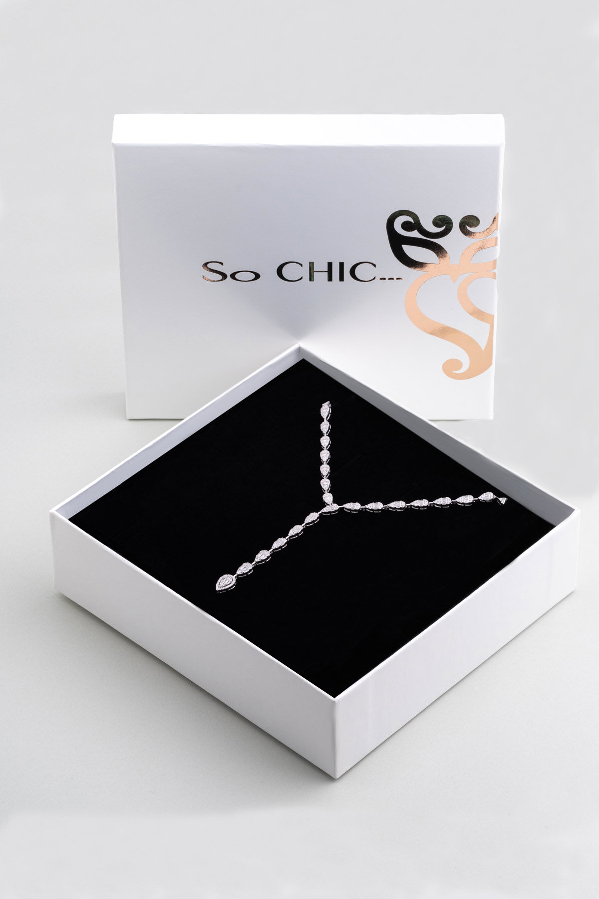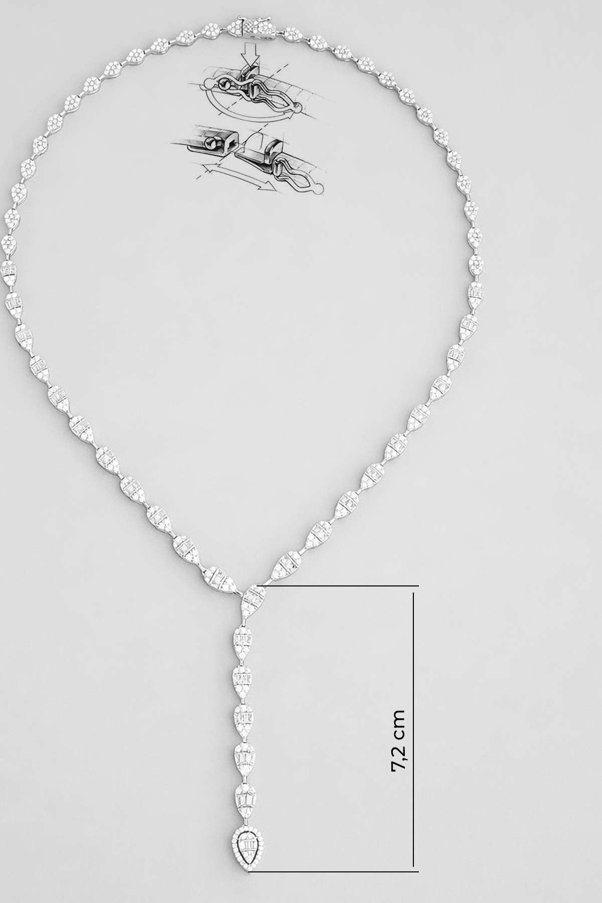 Parlak Baget 18 Ayar Beyaz Altın Kaplama Gümüş Gerdanlık