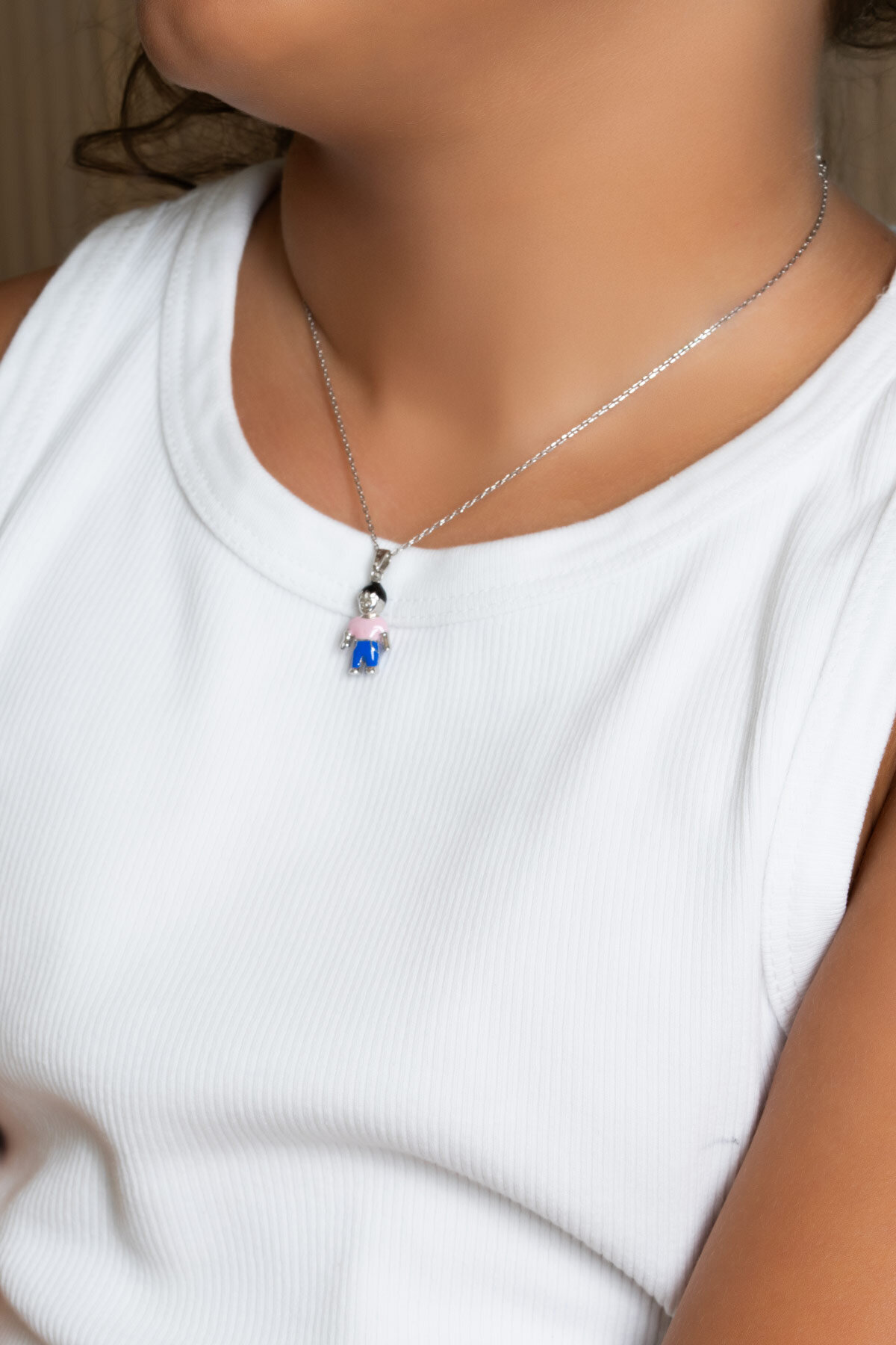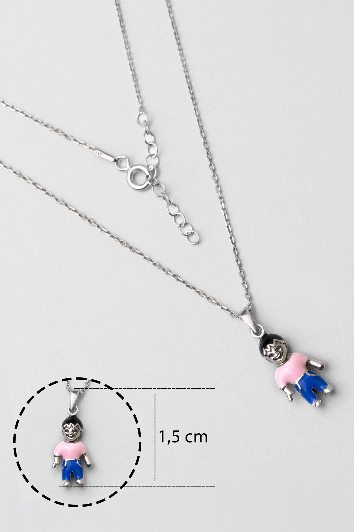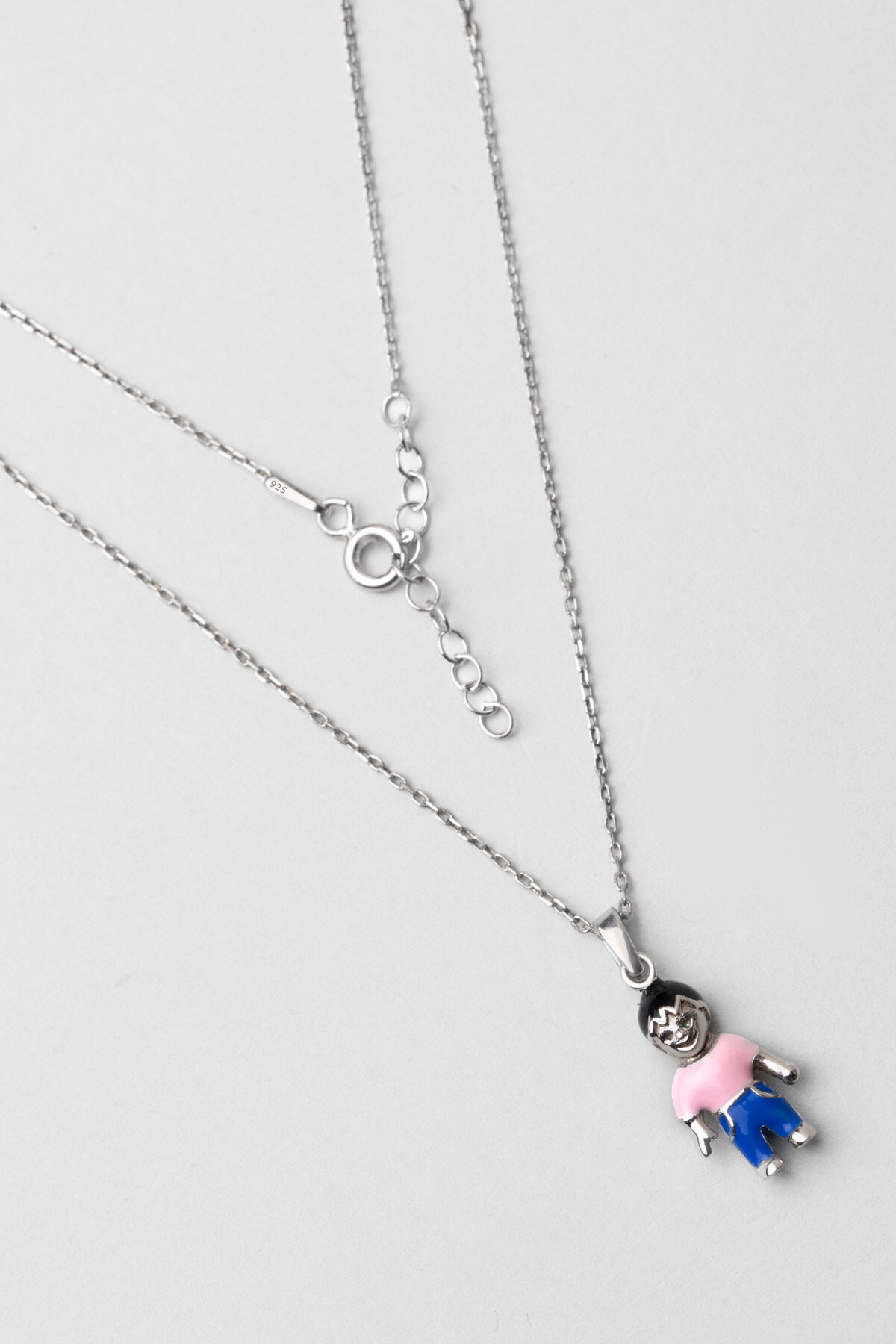 Pembe Çocuk Figürlü 18 Ayar Beyaz Altın Kaplama Gümüş 33 Cm Çocuk Kolye