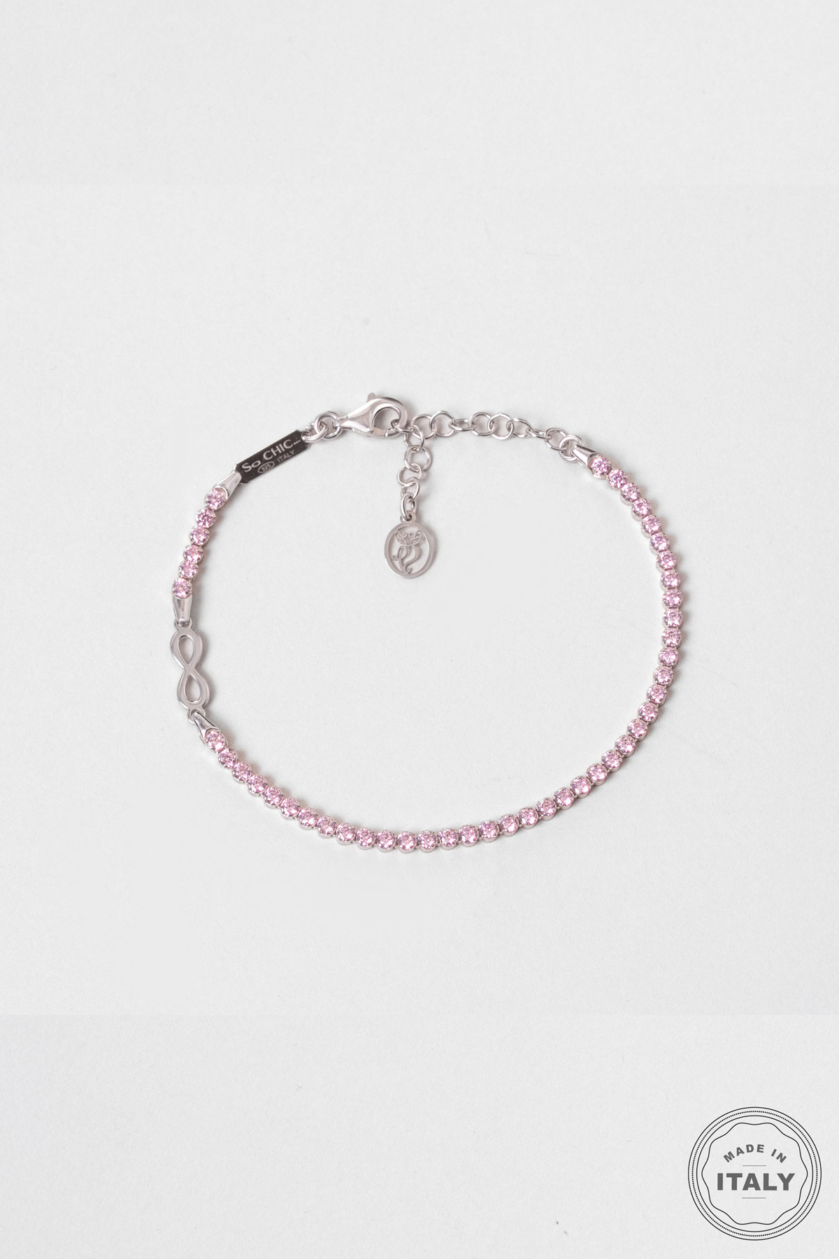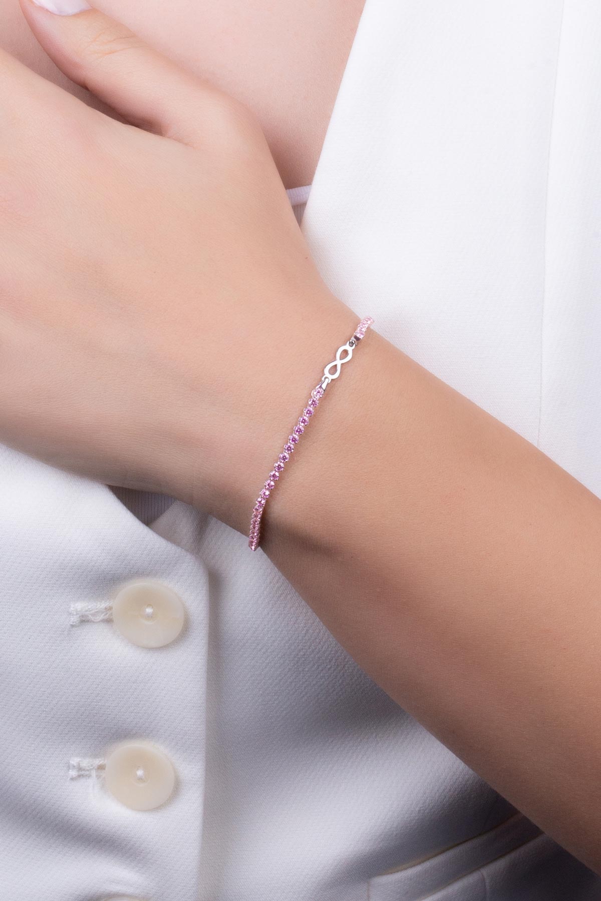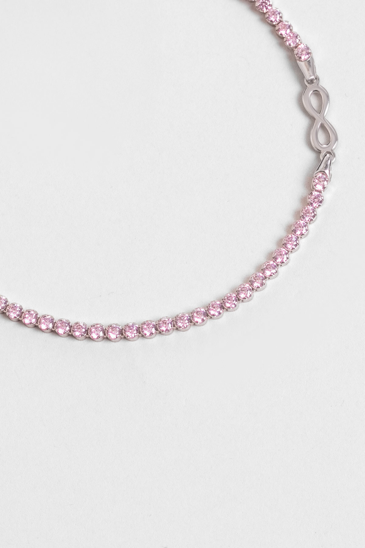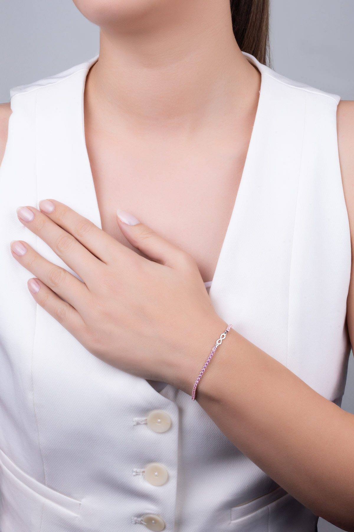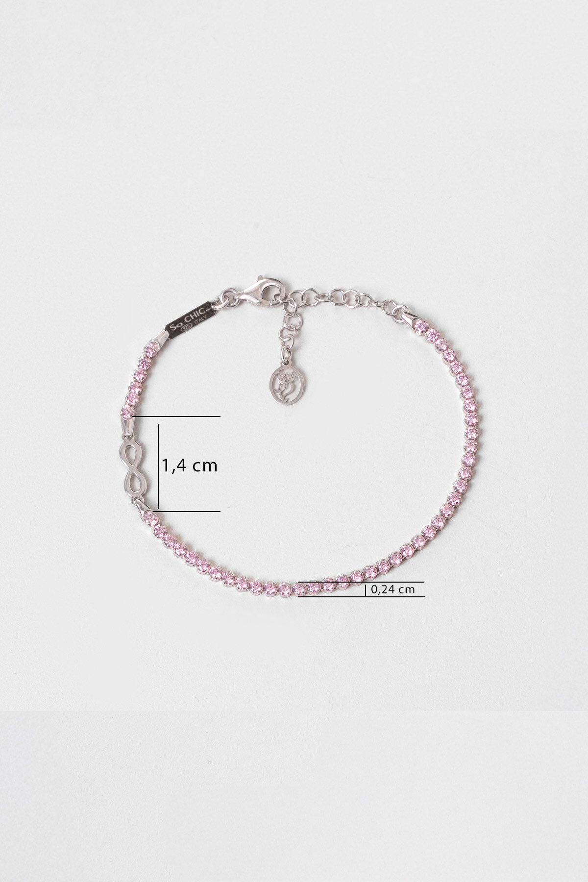 Pembe Sonsuzluk İtalyan 18 Ayar Beyaz Altın Kaplama 19 Cm Gümüş Su Yolu Bileklik