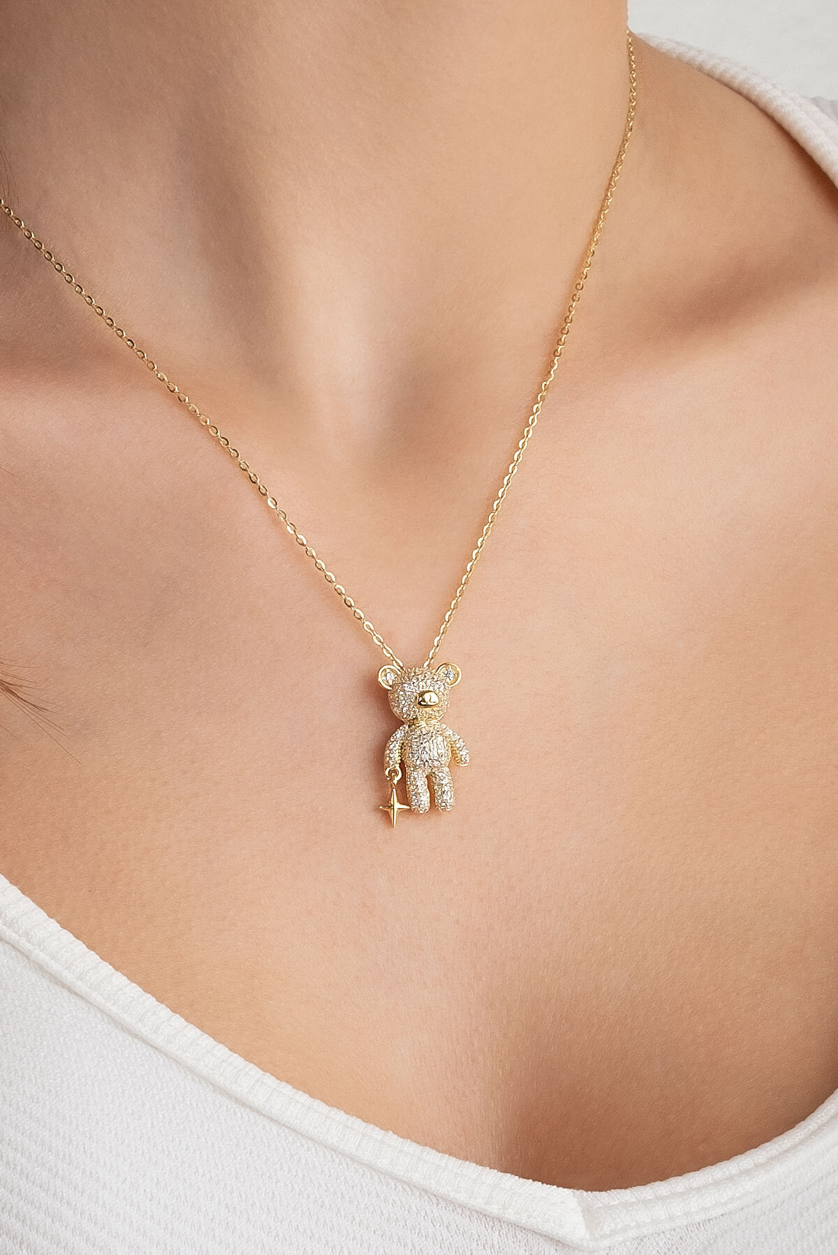 Pofuduk Ayıcık 18 Ayar Beyaz Altın Kaplama 45 Cm Gümüş Kolye