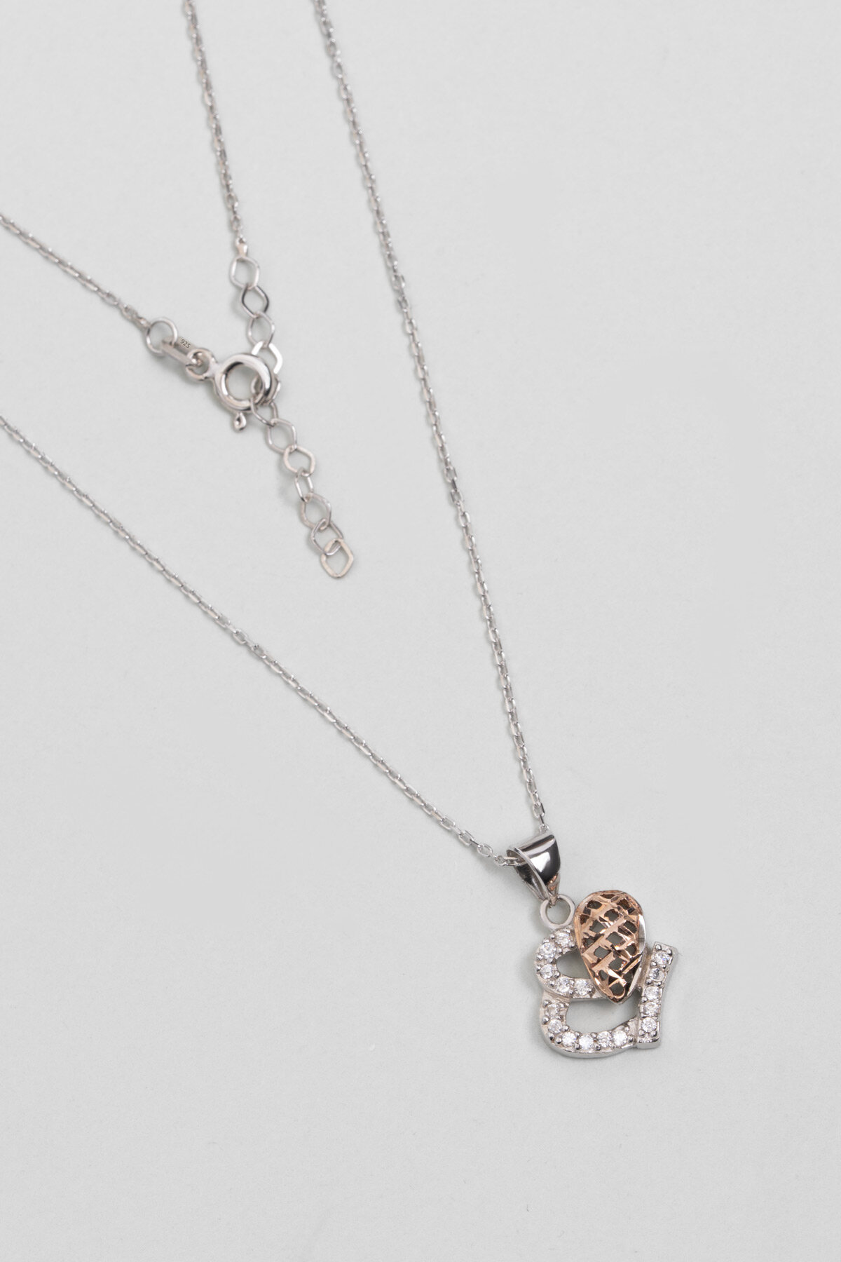 Queen 18 Ayar Beyaz Altın Kaplama 43 Cm Gümüş Kolye