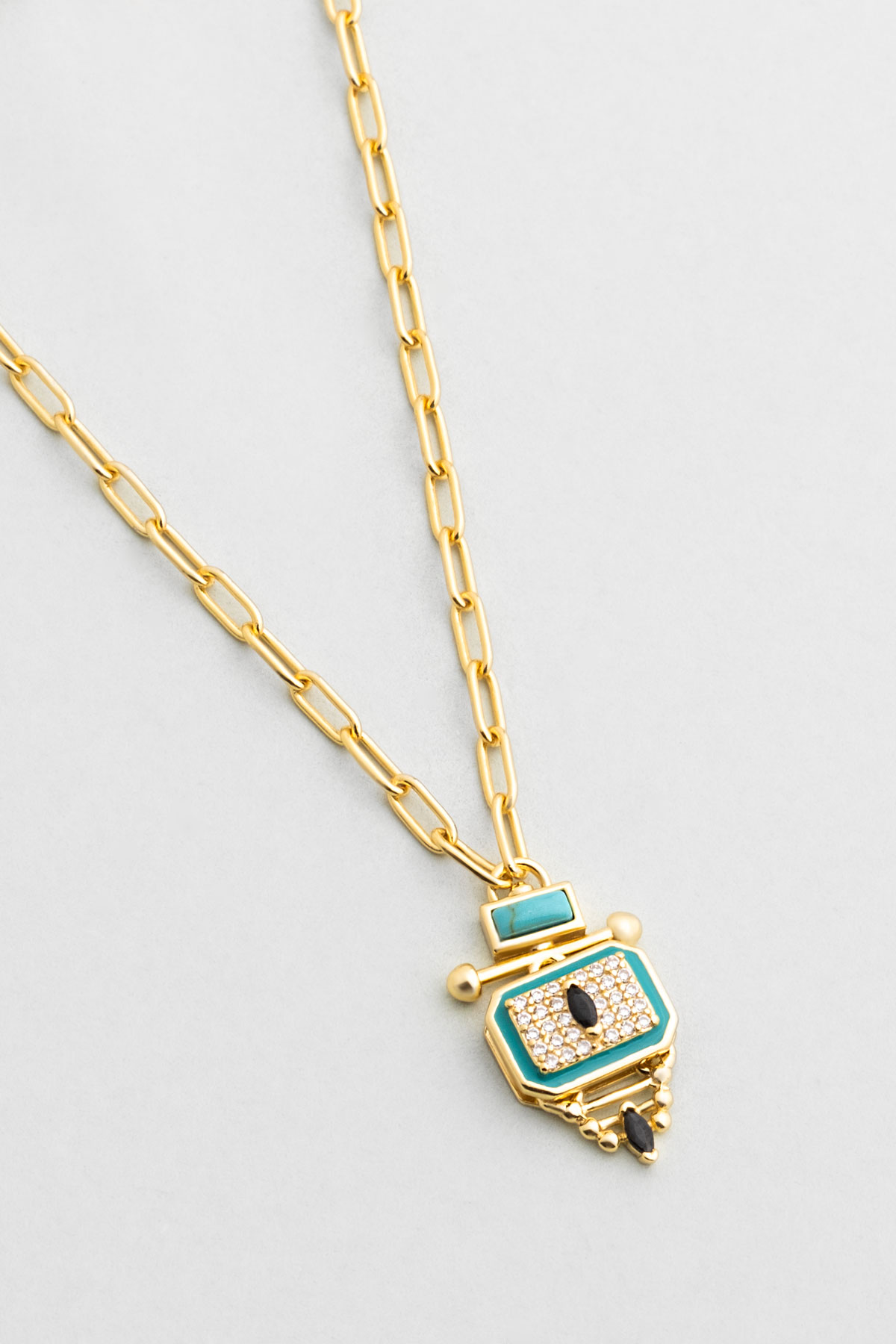 Kadim Mısır’ın güneş tanrısı Ra’nın kutsal gözü, evrenin gizemli enerjisini taşır. Kolye, ruhunuza kutsal bir koruma ve ışık getirirken, bilinmeyenin sırlarını fısıldayan mistik bir tılsım gibi güç verir.