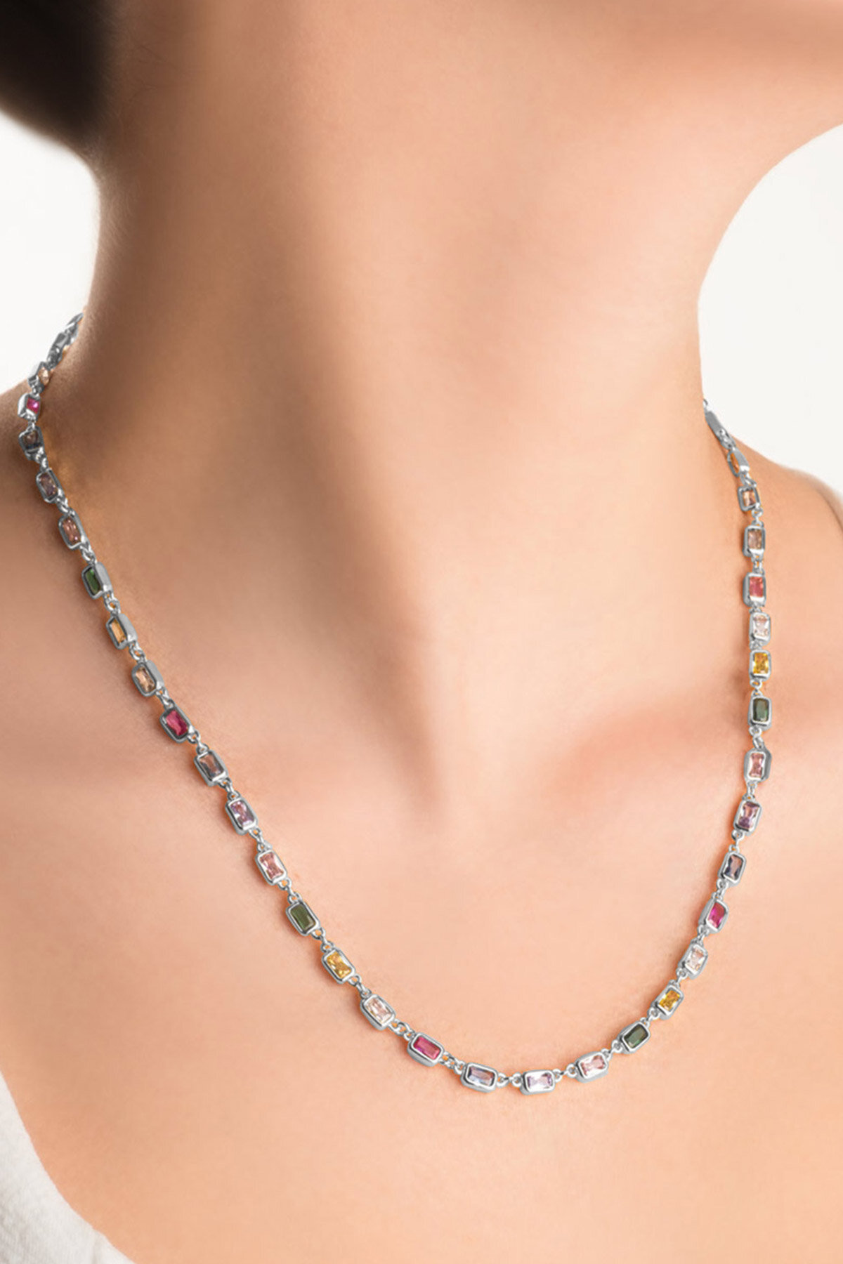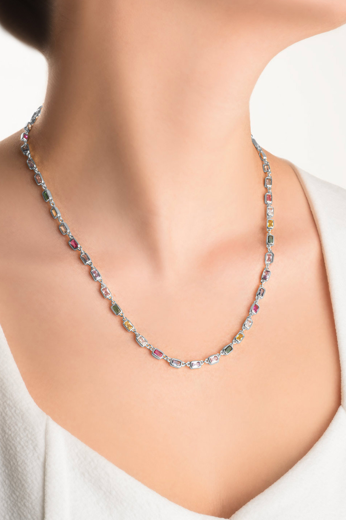 Mix Taşlı Beyaz Altın Kaplama