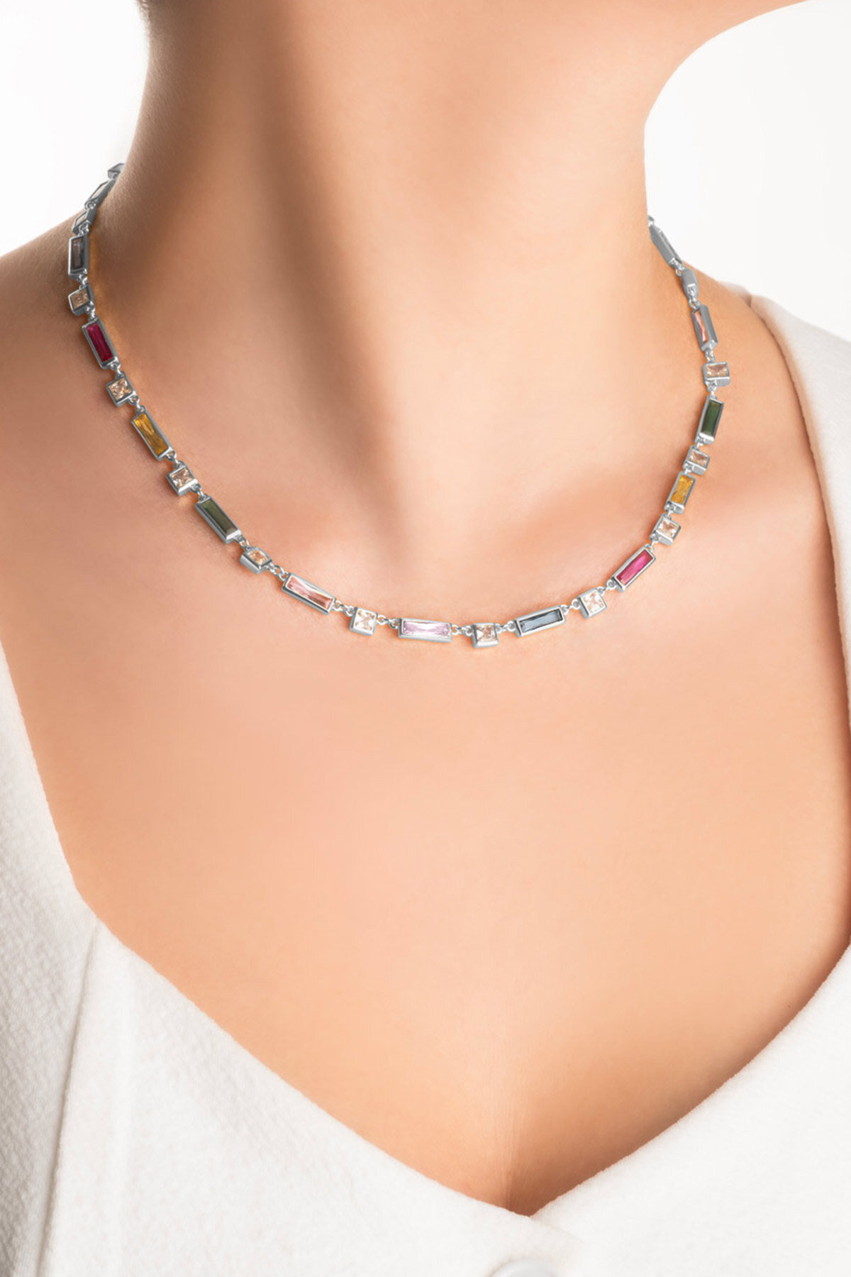 Mix Taşlı Beyaz Altın Kaplama