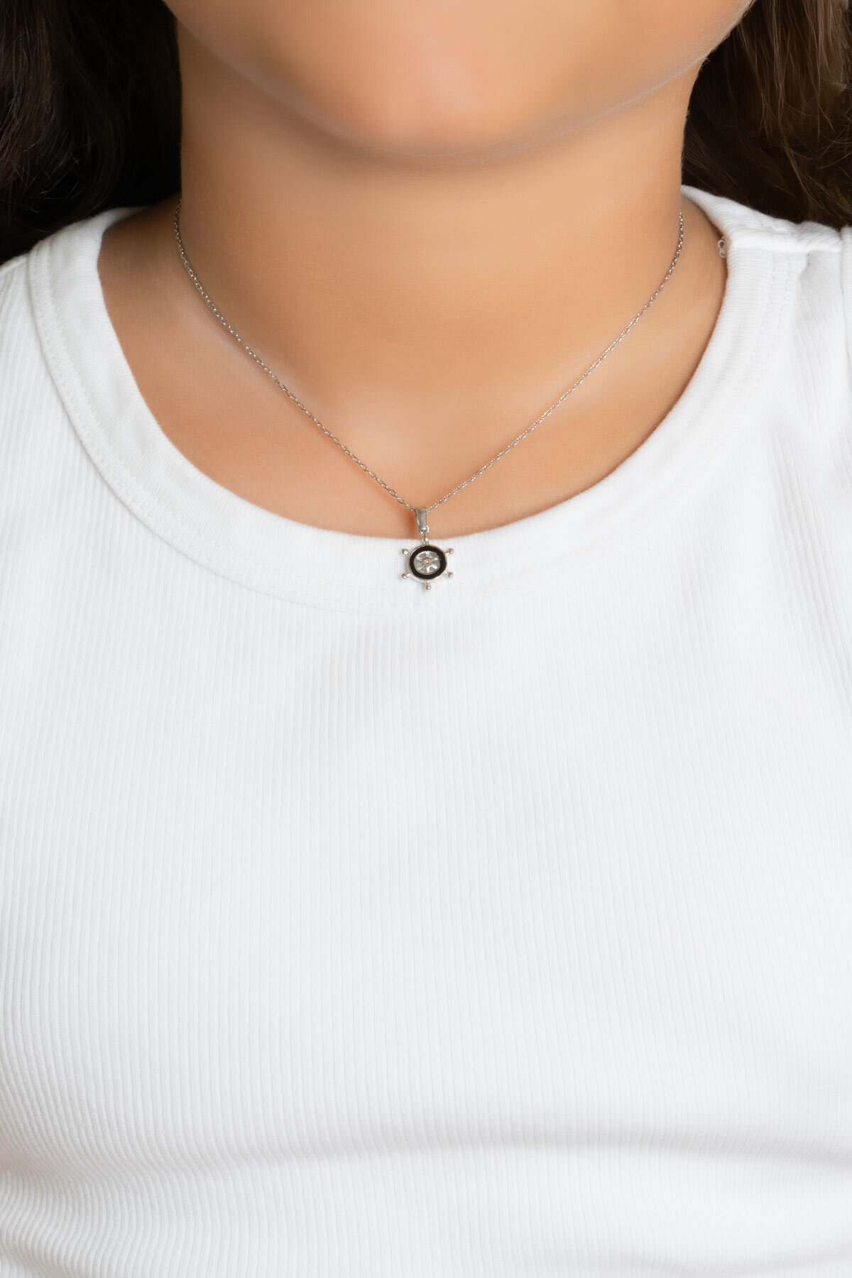 Renkli Dümen 18 Ayar Beyaz Altın Kaplama 33 Cm Gümüş Çocuk Kolye