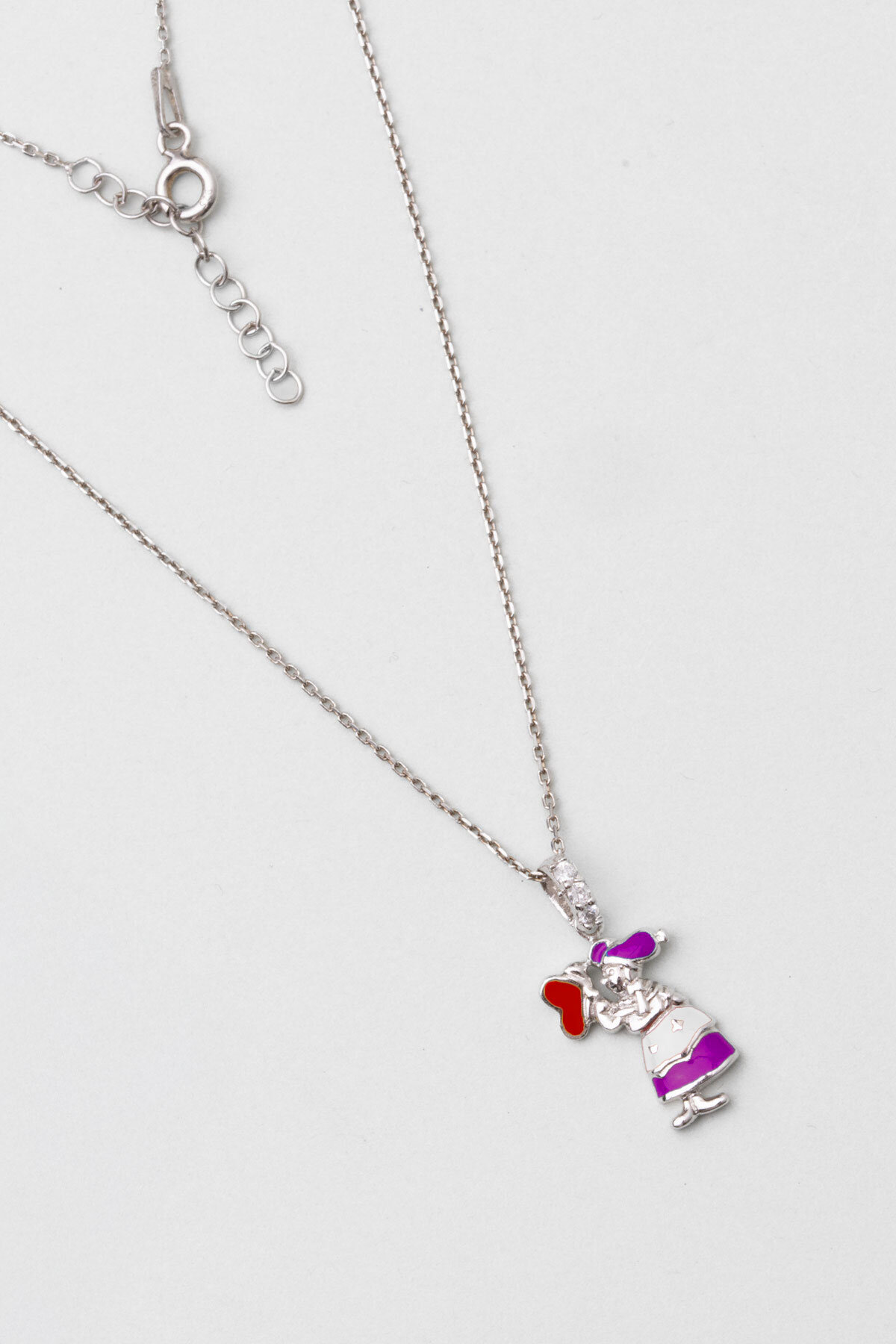 Renkli İskoçyalı 18 Ayar Beyaz Altın Kaplama 33 Cm Gümüş Çocuk Kolye