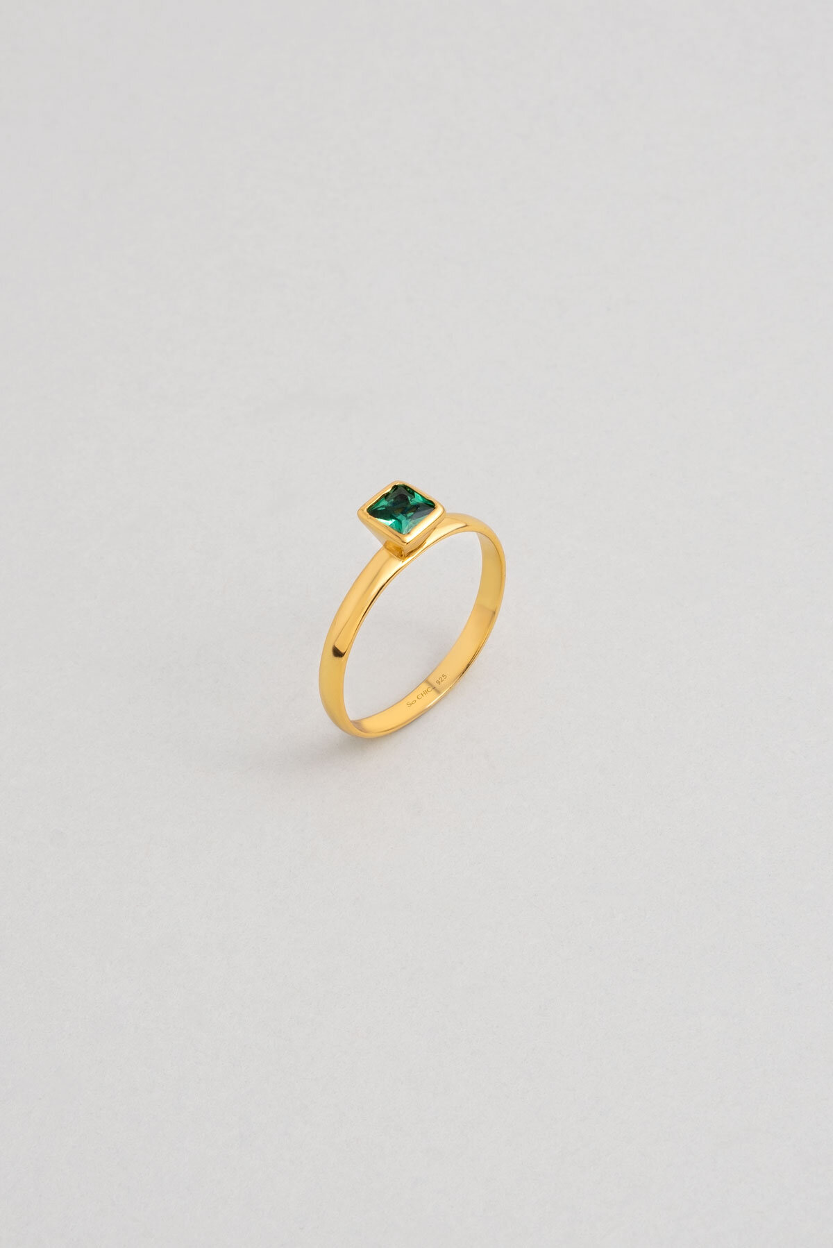 Renkli Taşlı 18 Ayar Sarı Altın Kaplama Gümüş Minimal Yüzük