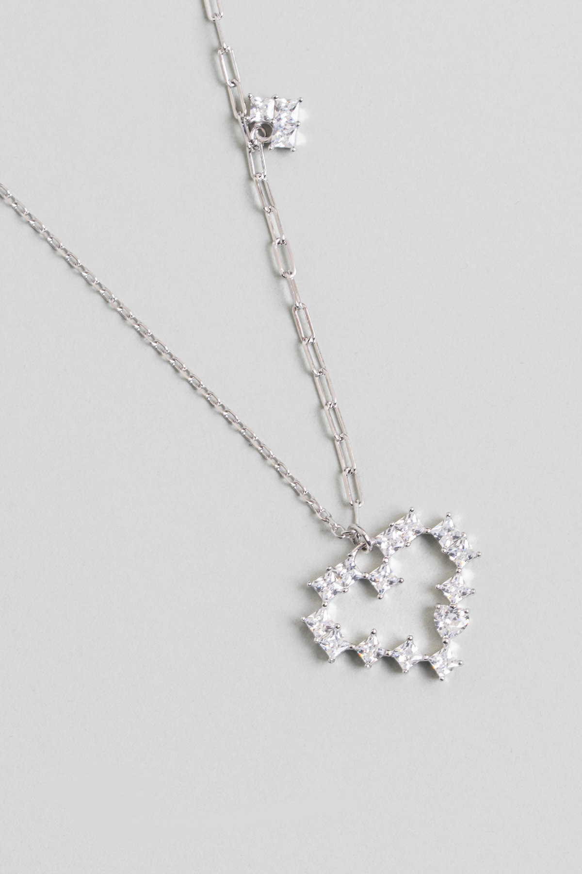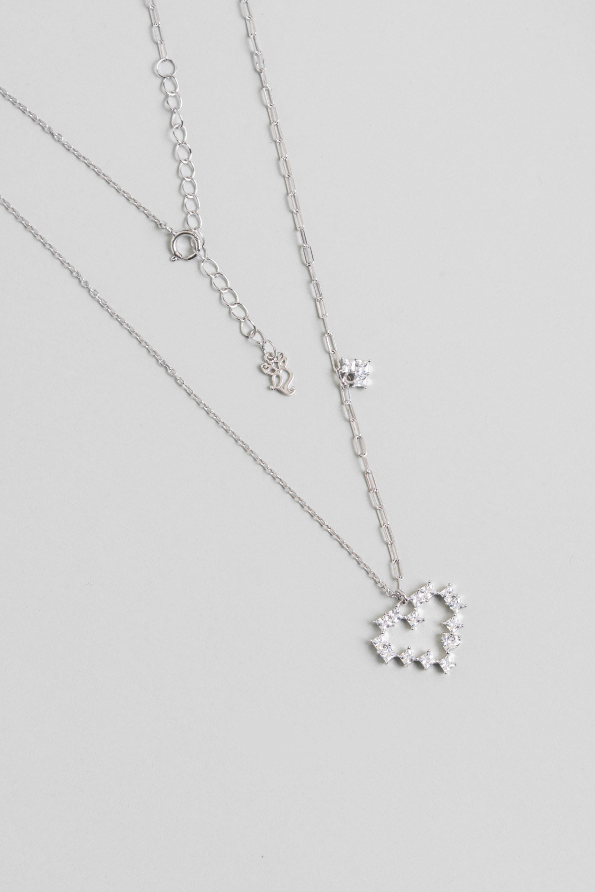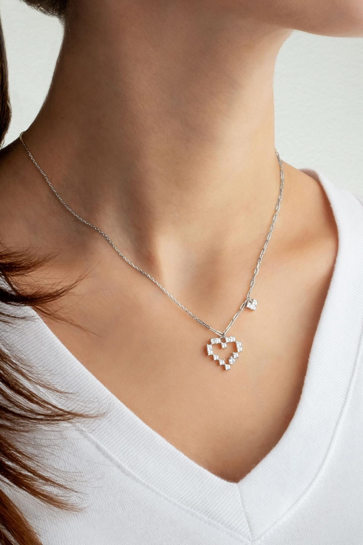 Saf Aşk 18 Ayar Beyaz Altın Kaplama 45 Cm Gümüş Kalp Kolye