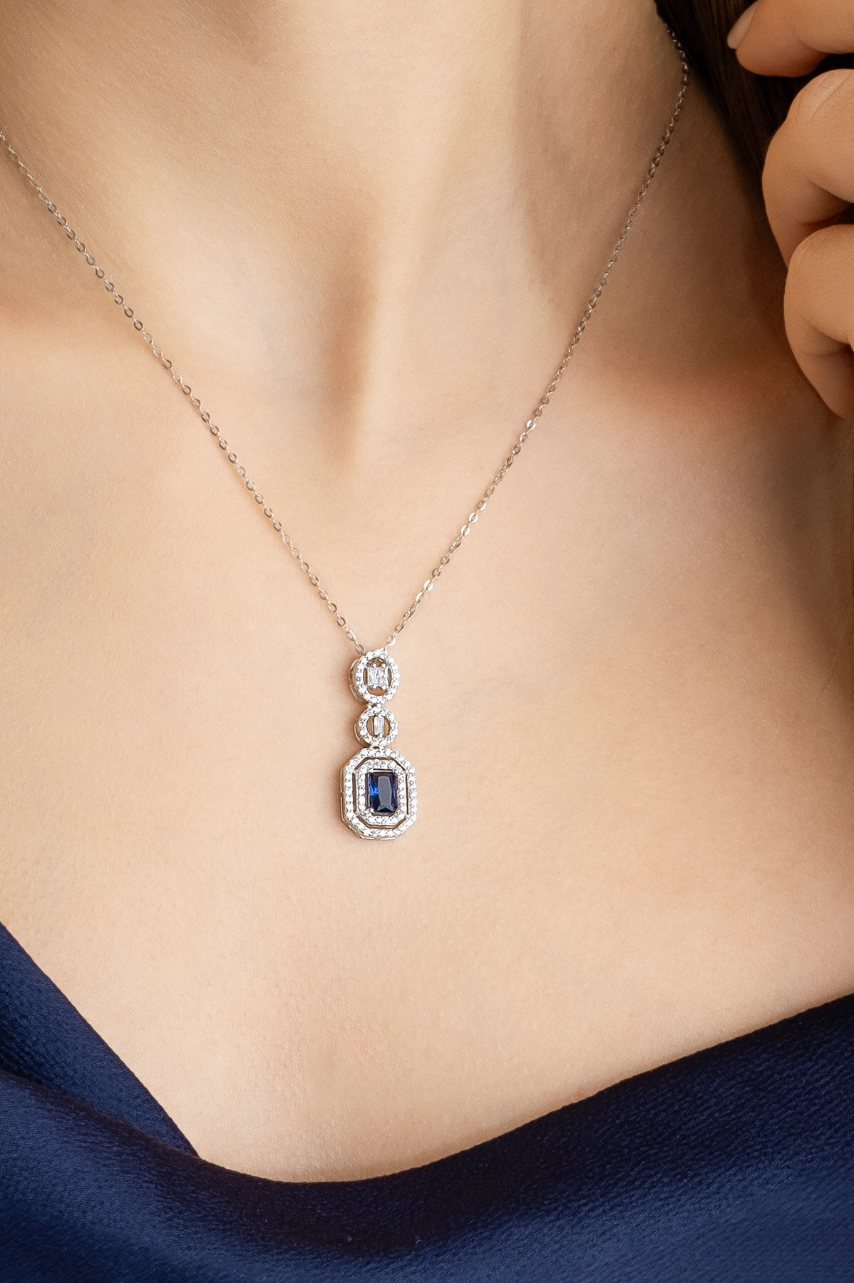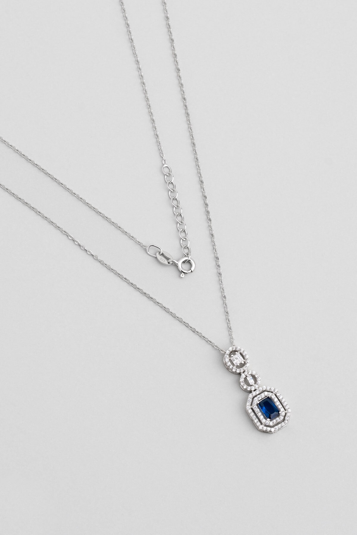 Safir Masalı 18 Ayar Beyaz Altın Kaplama 43 Cm Gümüş Baget Kolye