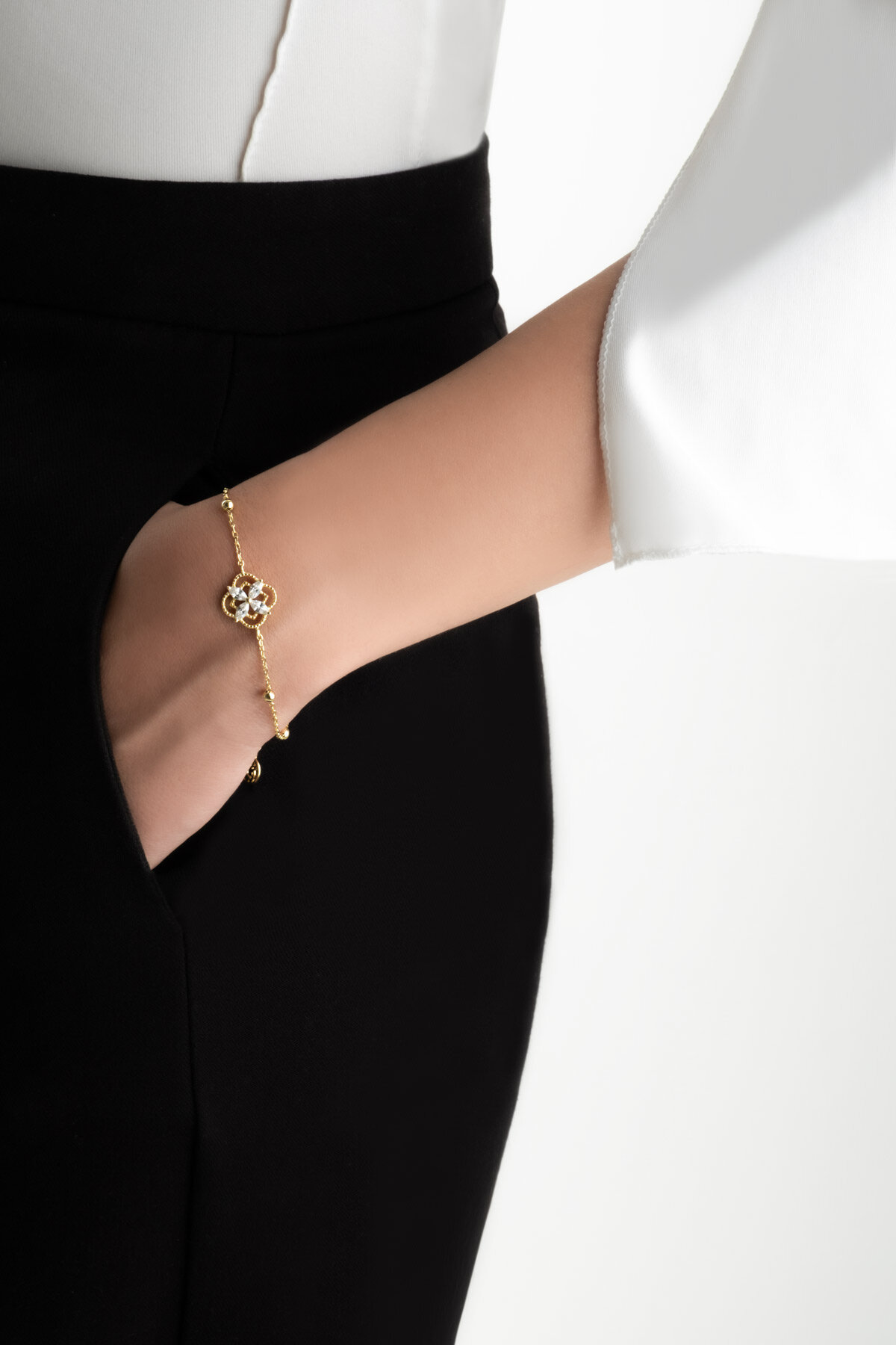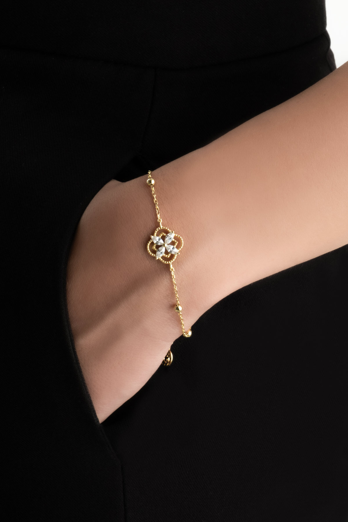 Şans Çiçeği 18 Ayar Sarı Altın Kaplama 19 Cm Gümüş Minimal Bileklik