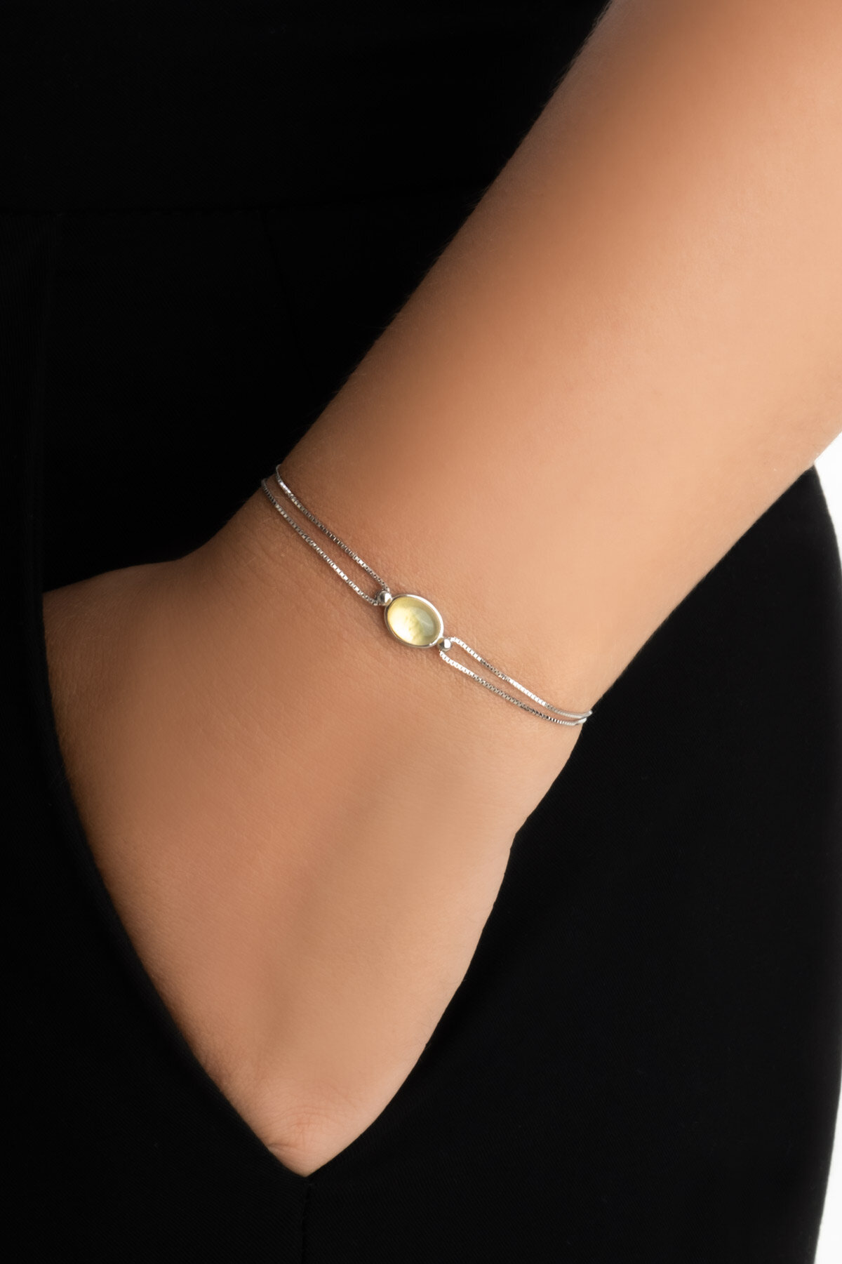 Sarı Melodi 18 Ayar Beyaz Altın Kaplama 19 Cm Gümüş Bileklik