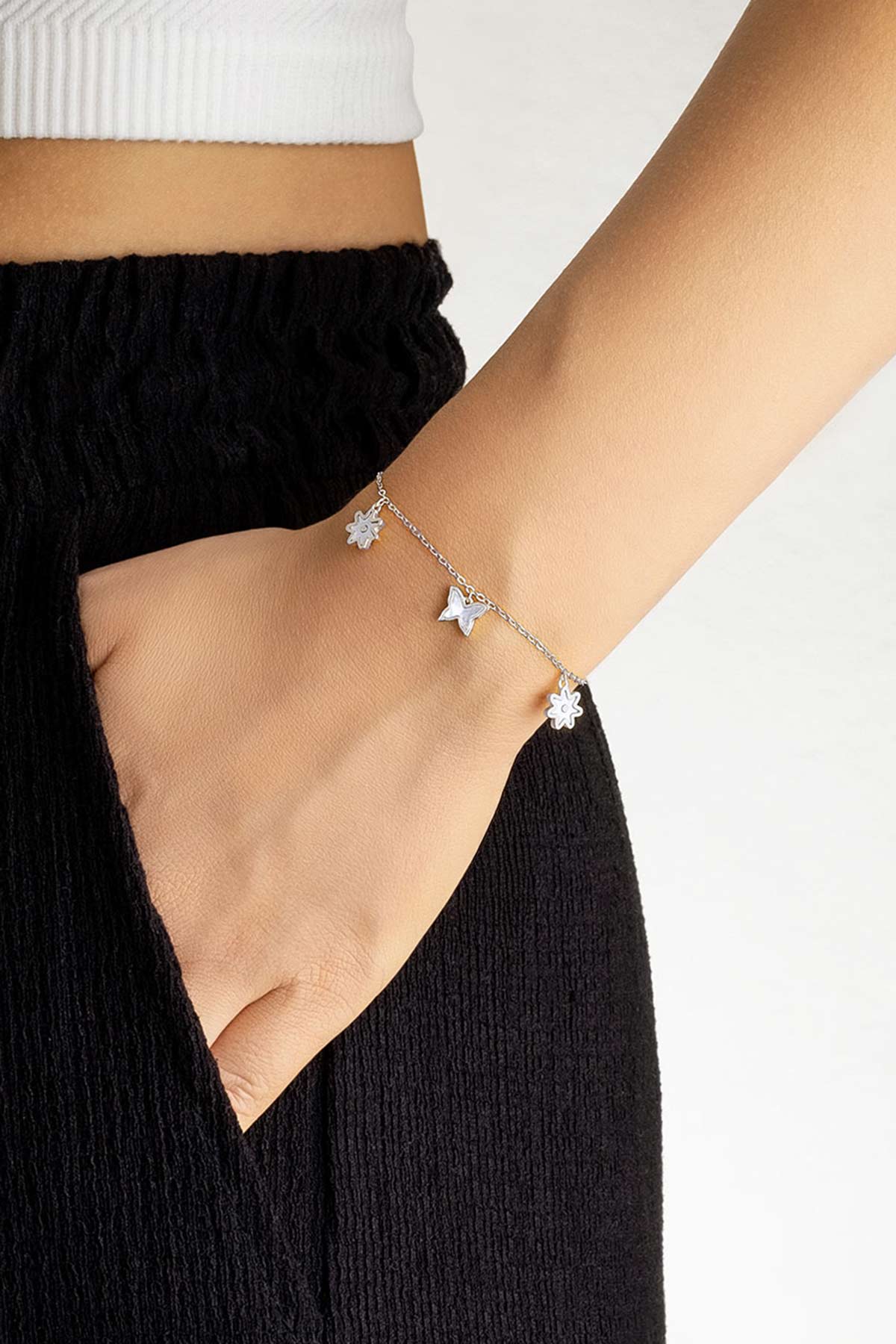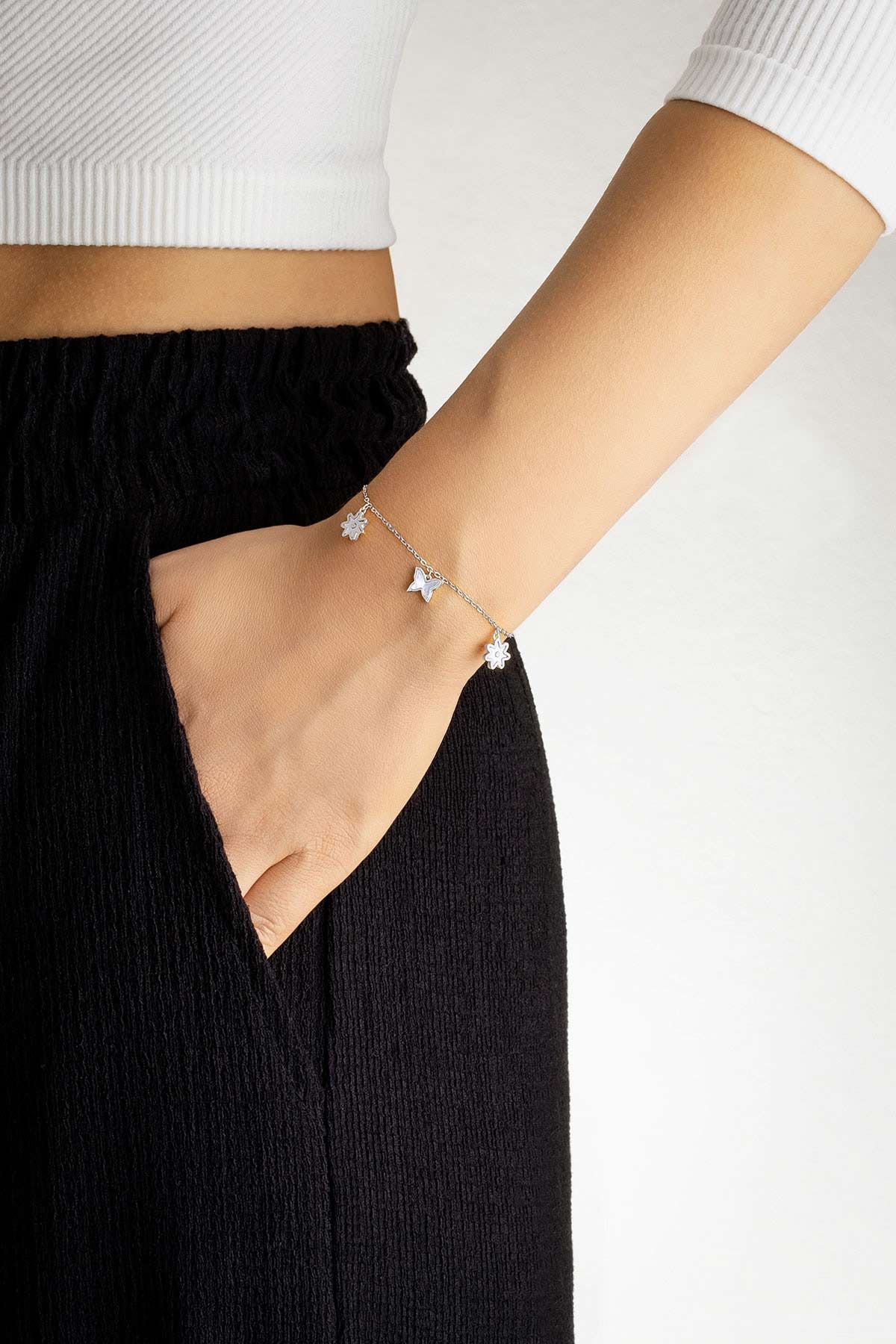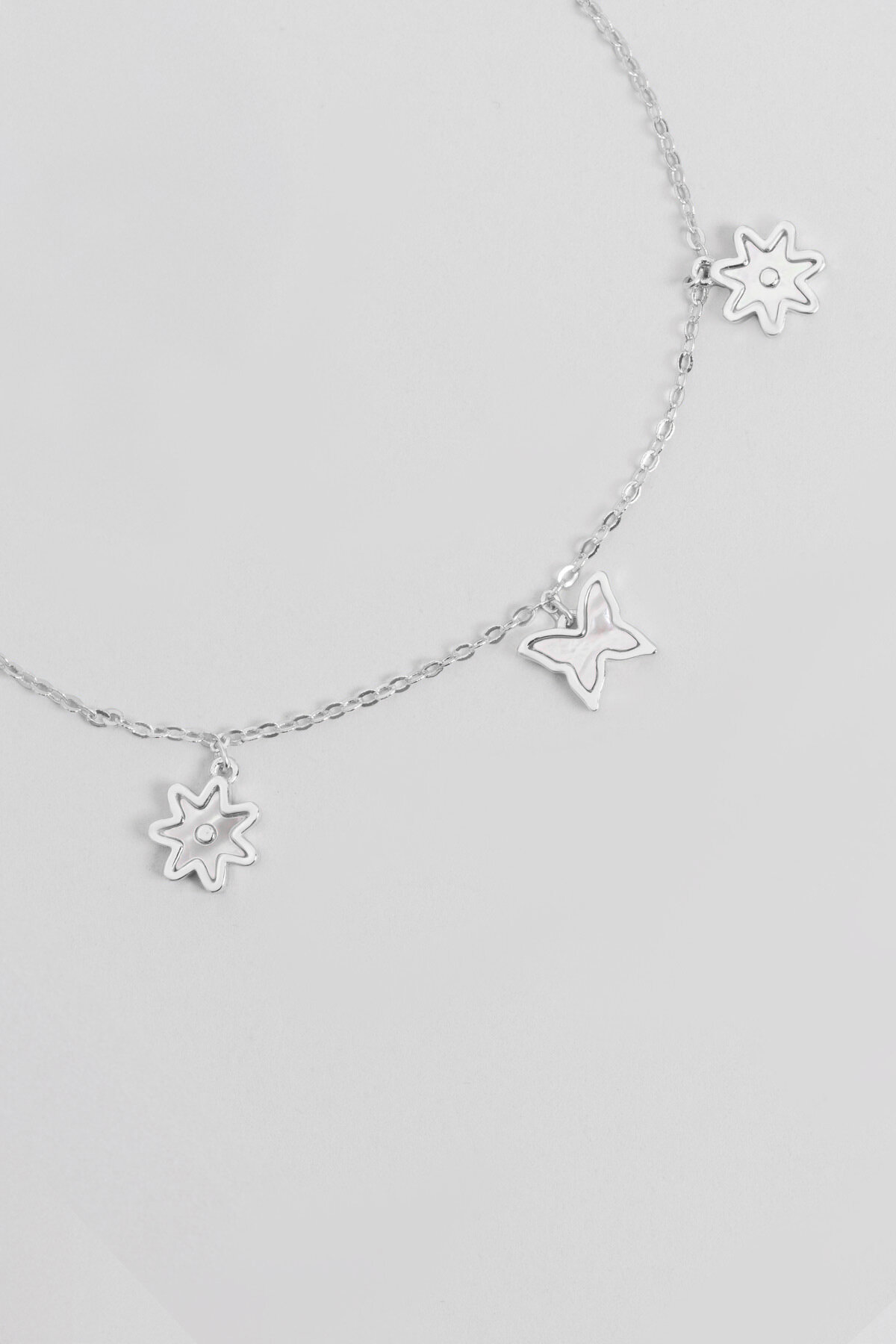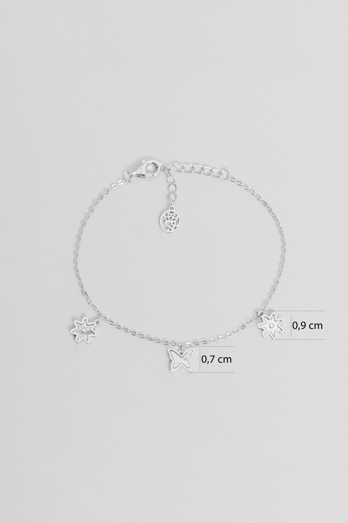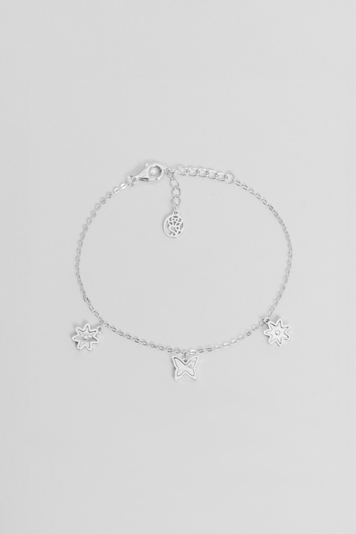 Sedef Çiçeği 18 Ayar Beyaz Altın Kaplama 20 Cm Gümüş Minimal Bileklik