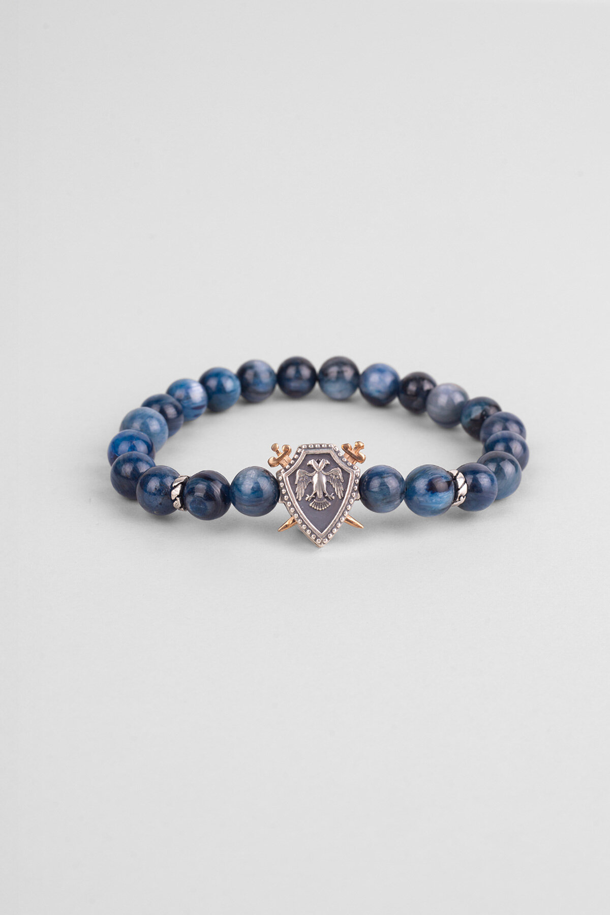 Selçuklu Kartalı Kyanit Taşlı Cilalı Gümüş Erkek Bileklik