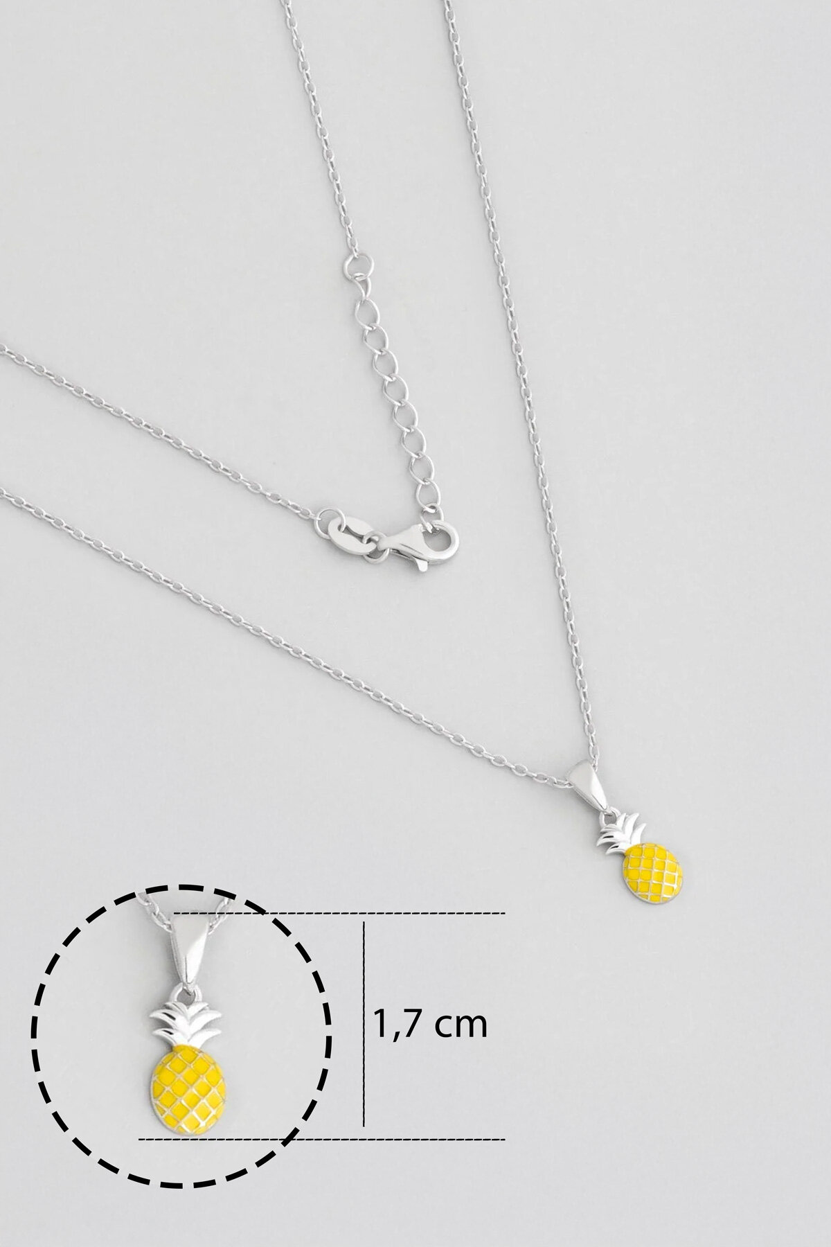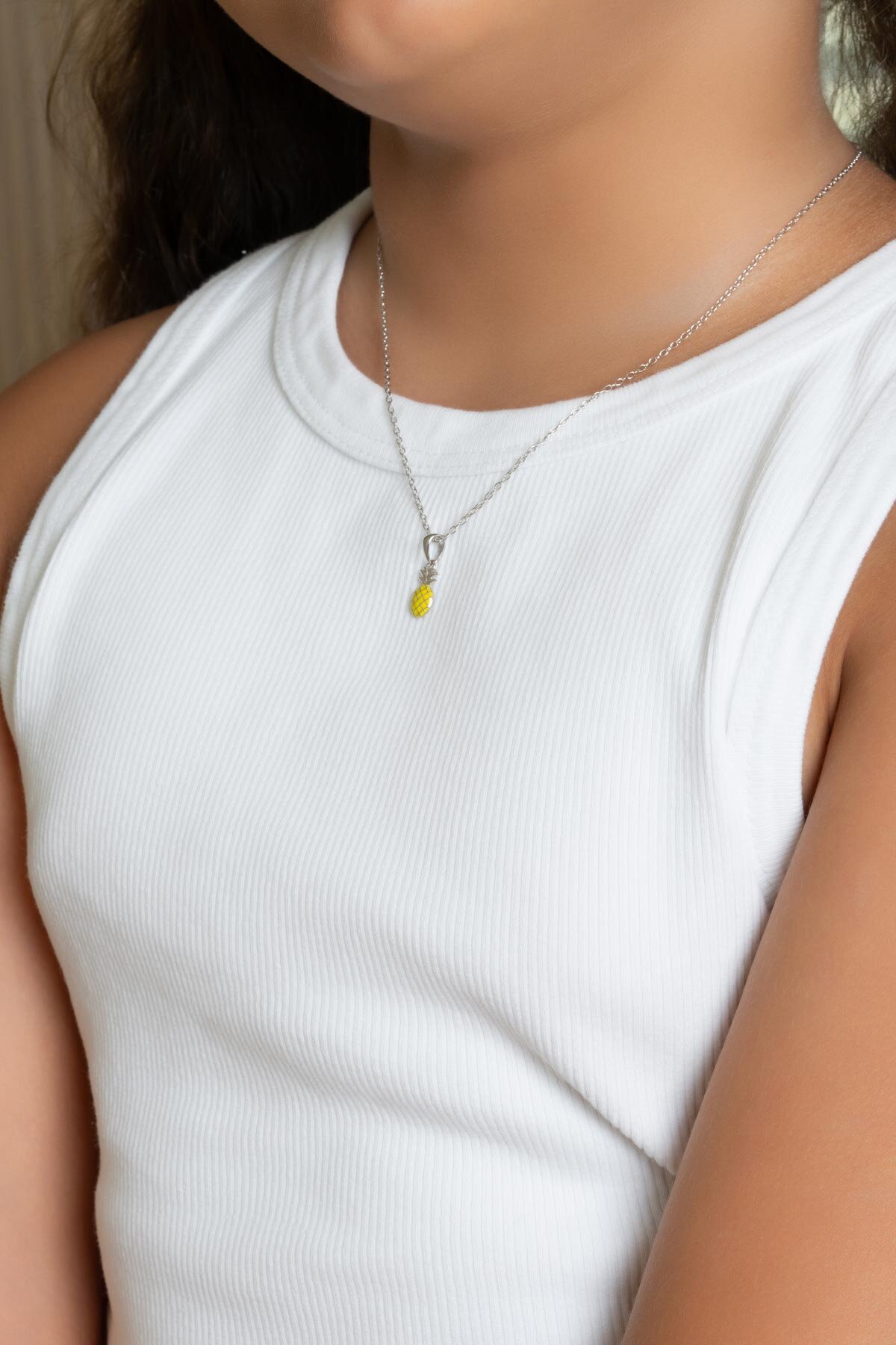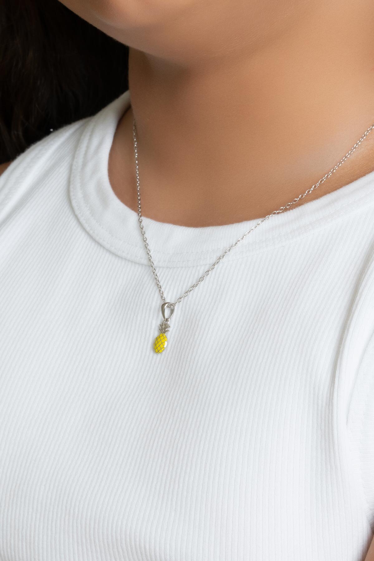 Sevimli Ananas 18 Ayar Beyaz Altın Kaplama 38 Cm Gümüş Çocuk Kolye