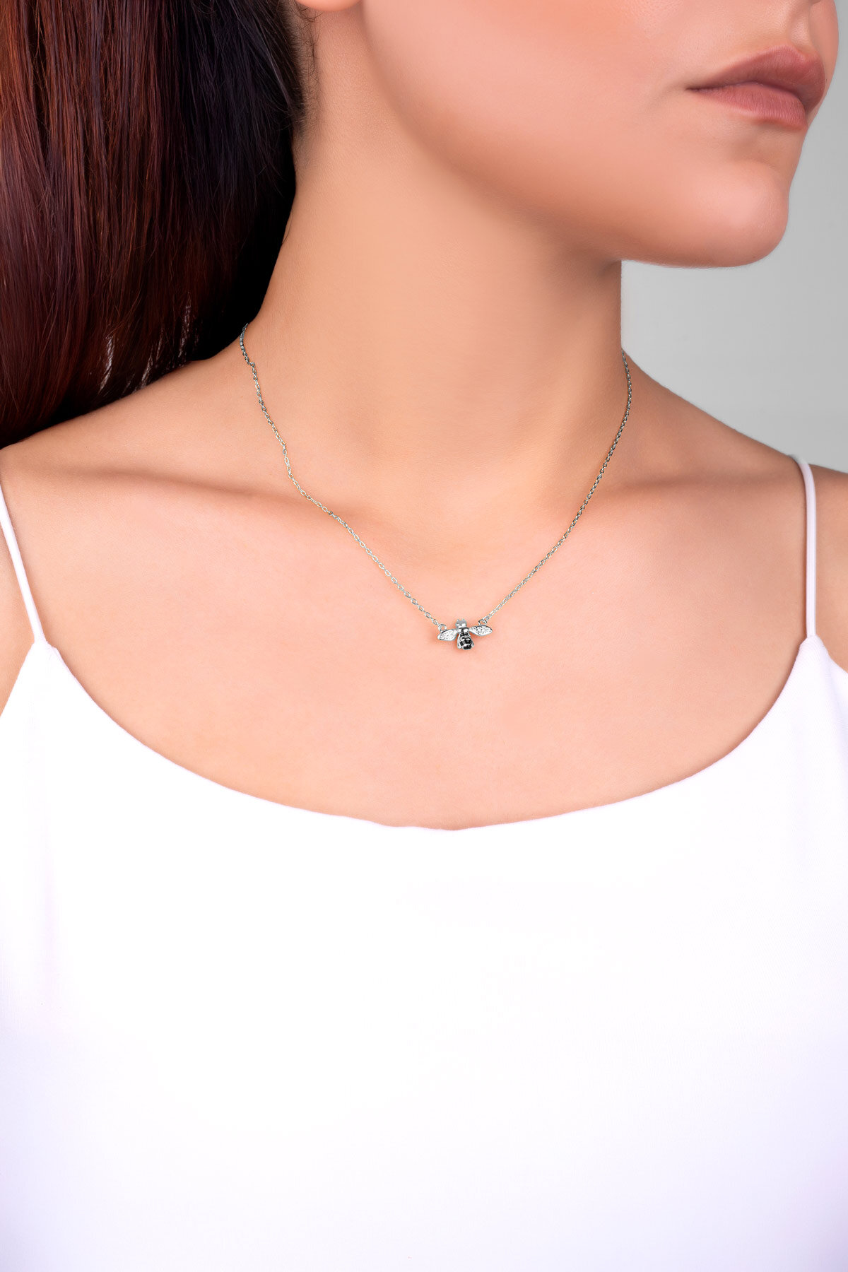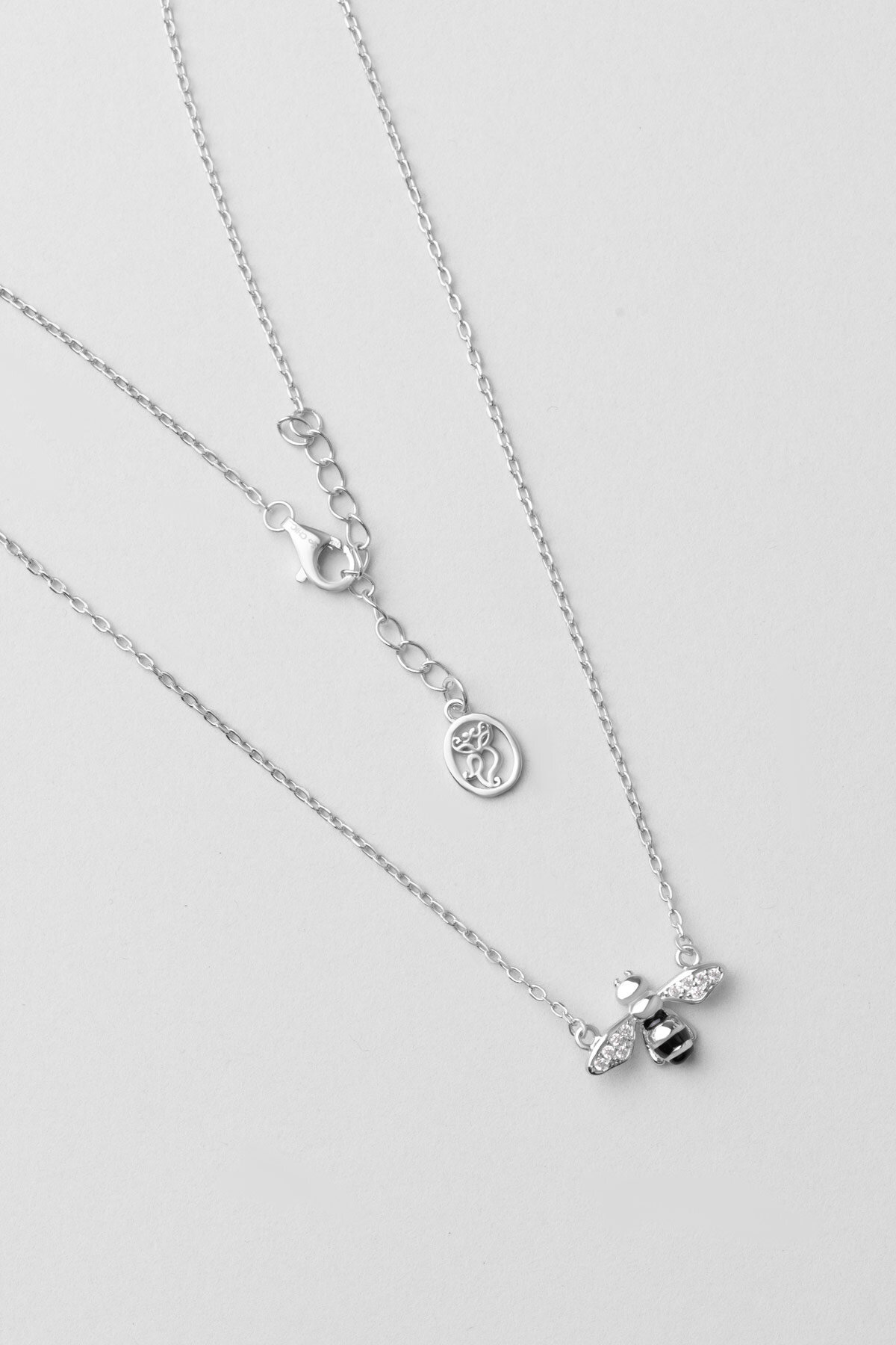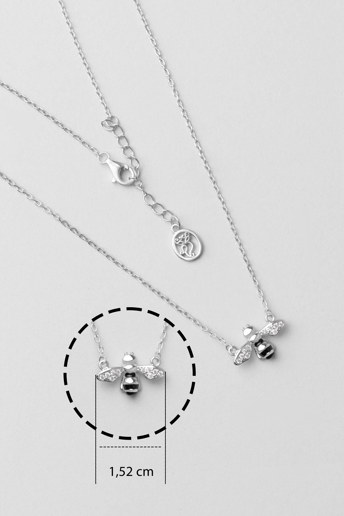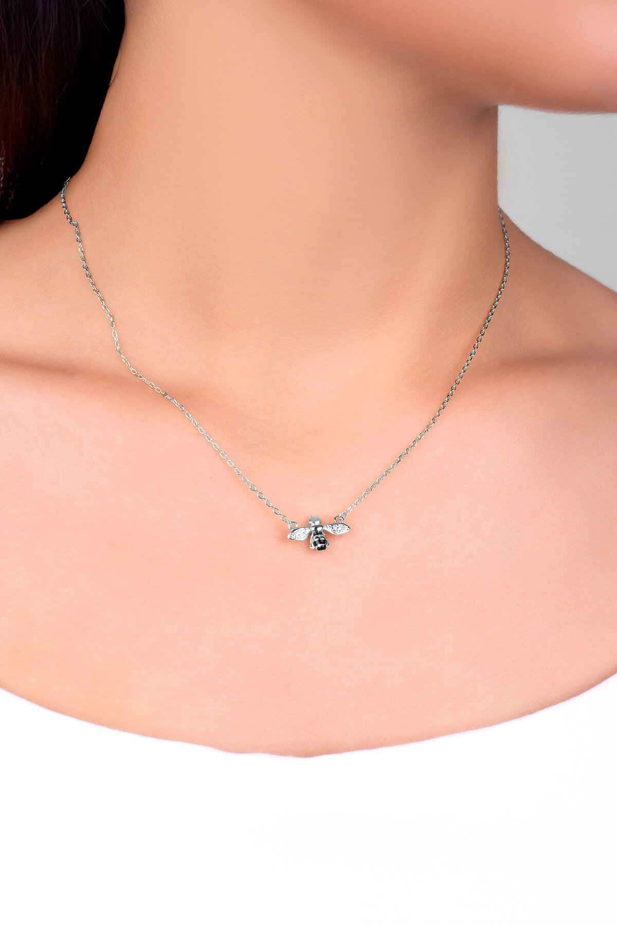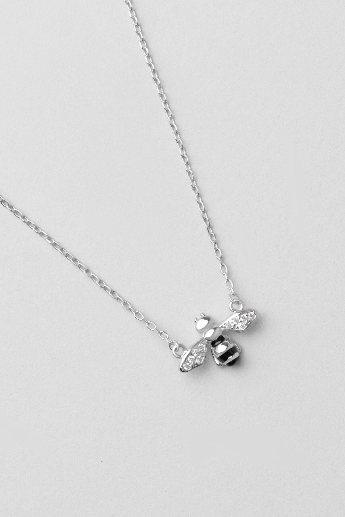 Sevimli Arı 18 Ayar Beyaz Altın Kaplama 45 Cm Gümüş Kolye