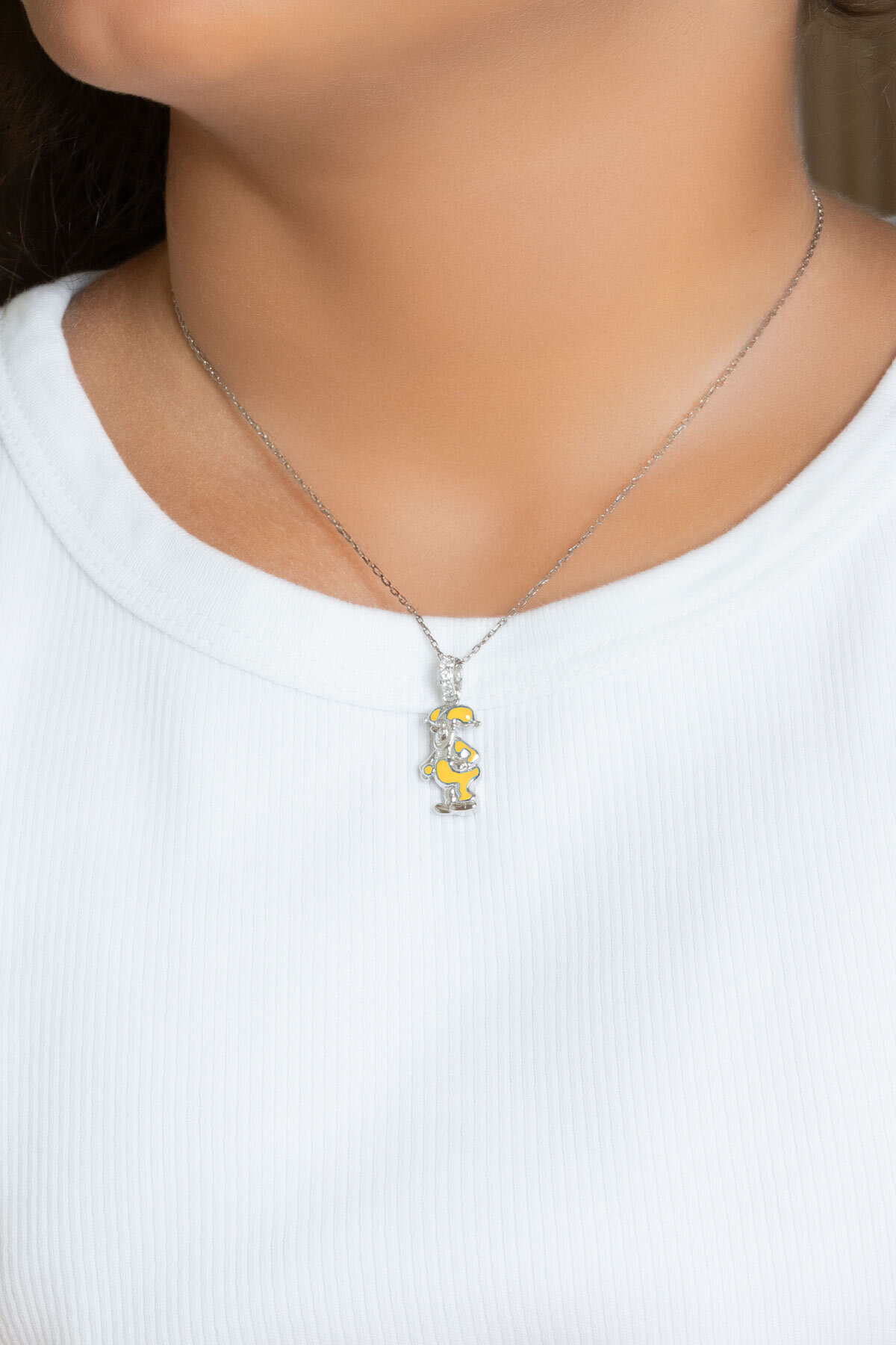 Sevimli Kahramanlar 18 Ayar Beyaz Altın Kaplama 32 Cm Gümüş Kolye