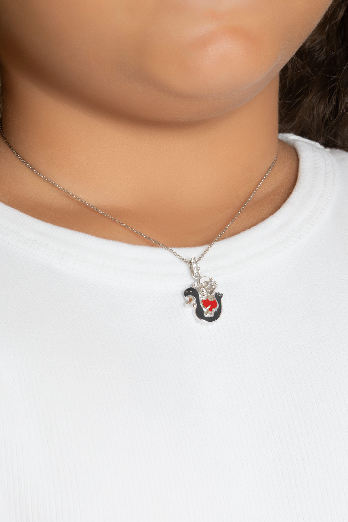 Siyah Kuğu 18 Ayar Beyaz Altın Kaplama Gümüş 33 Cm Çocuk Kolye