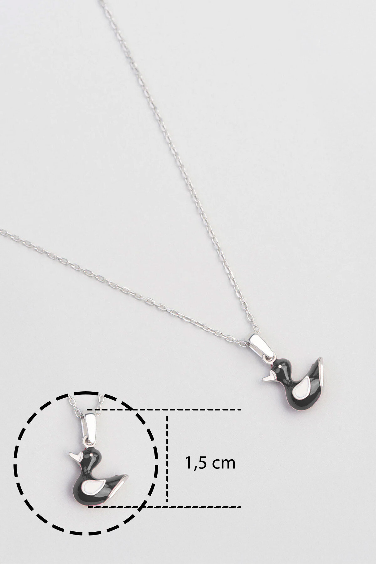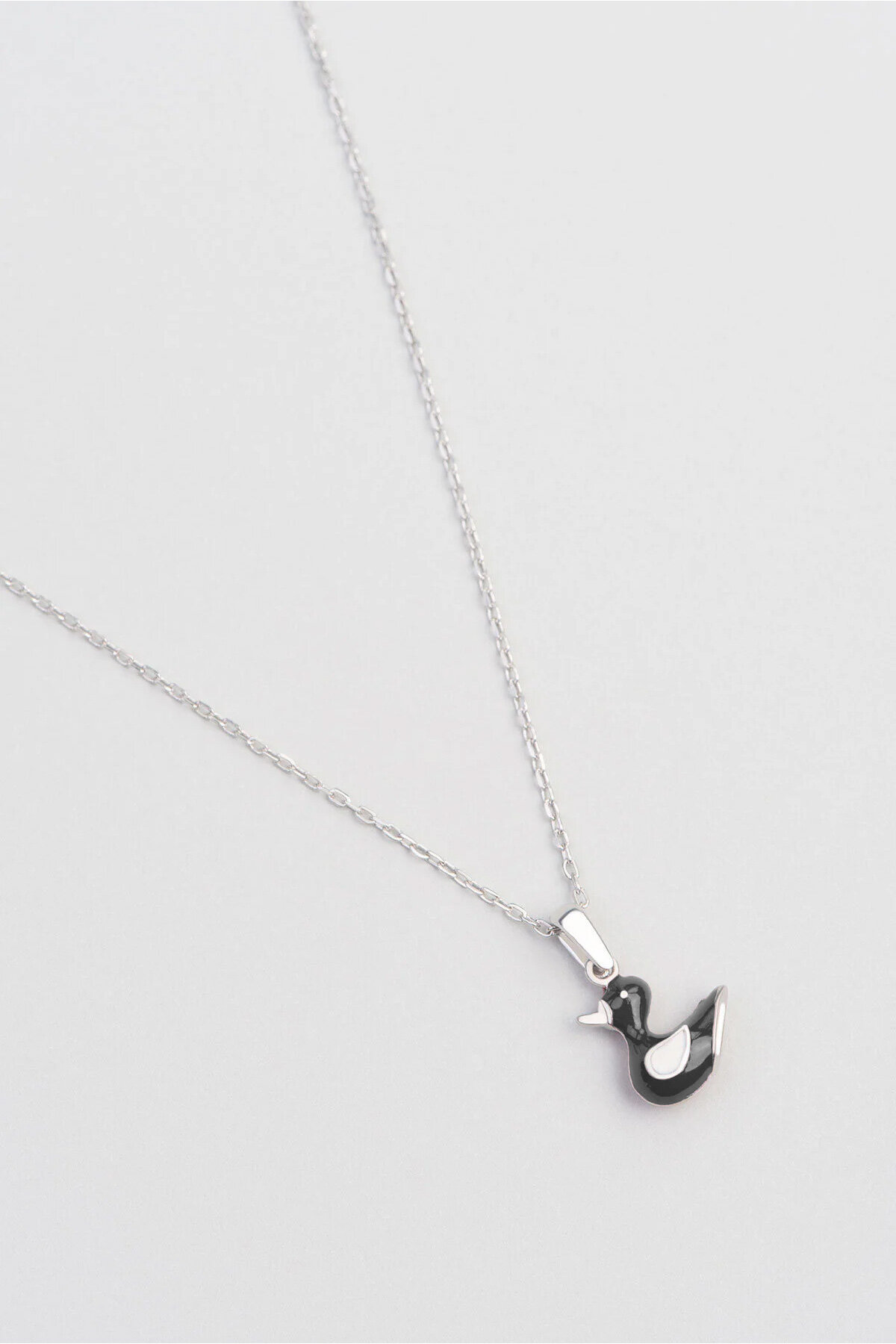 Siyah Ördek 18 Ayar Beyaz Altın Kaplama Gümüş 33 Cm Çocuk Kolye