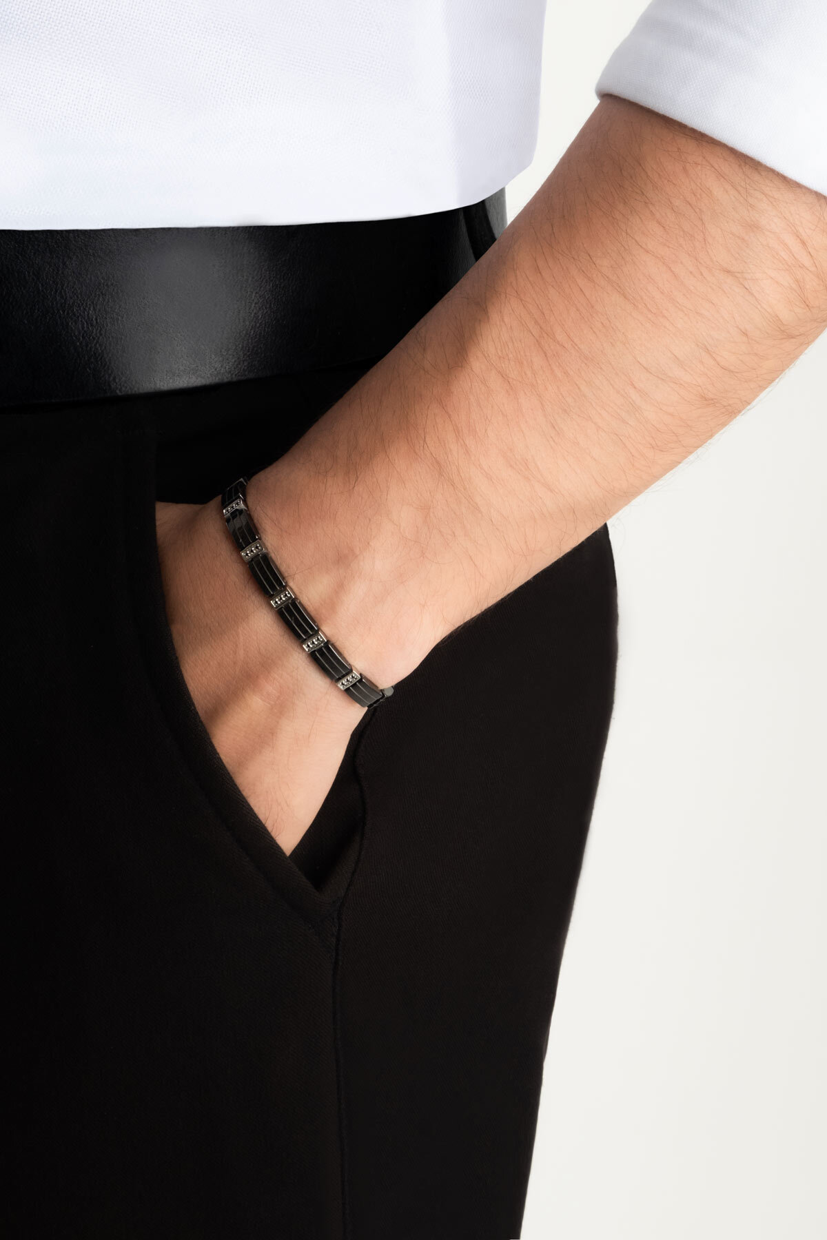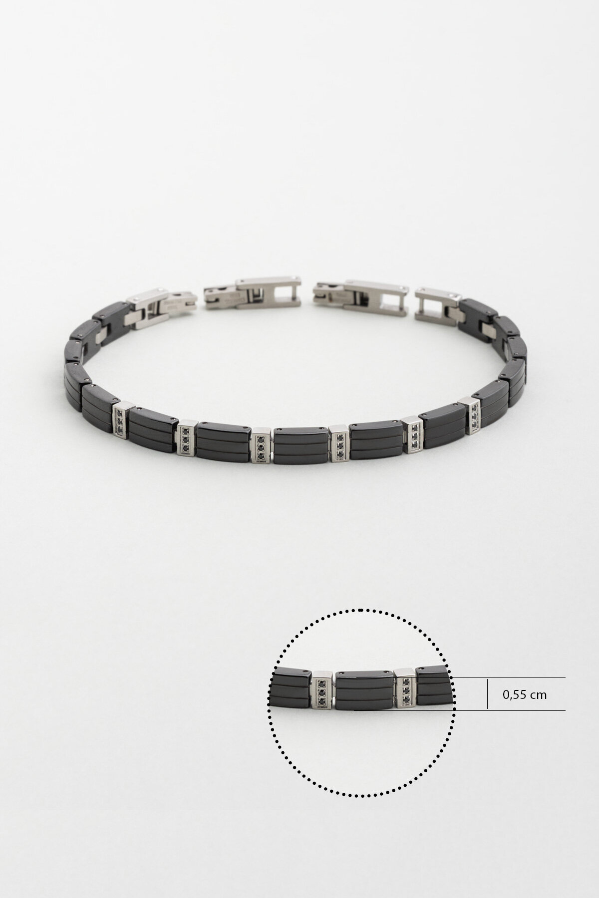 Siyah Taş Detaylı Çelik Erkek Bileklik
