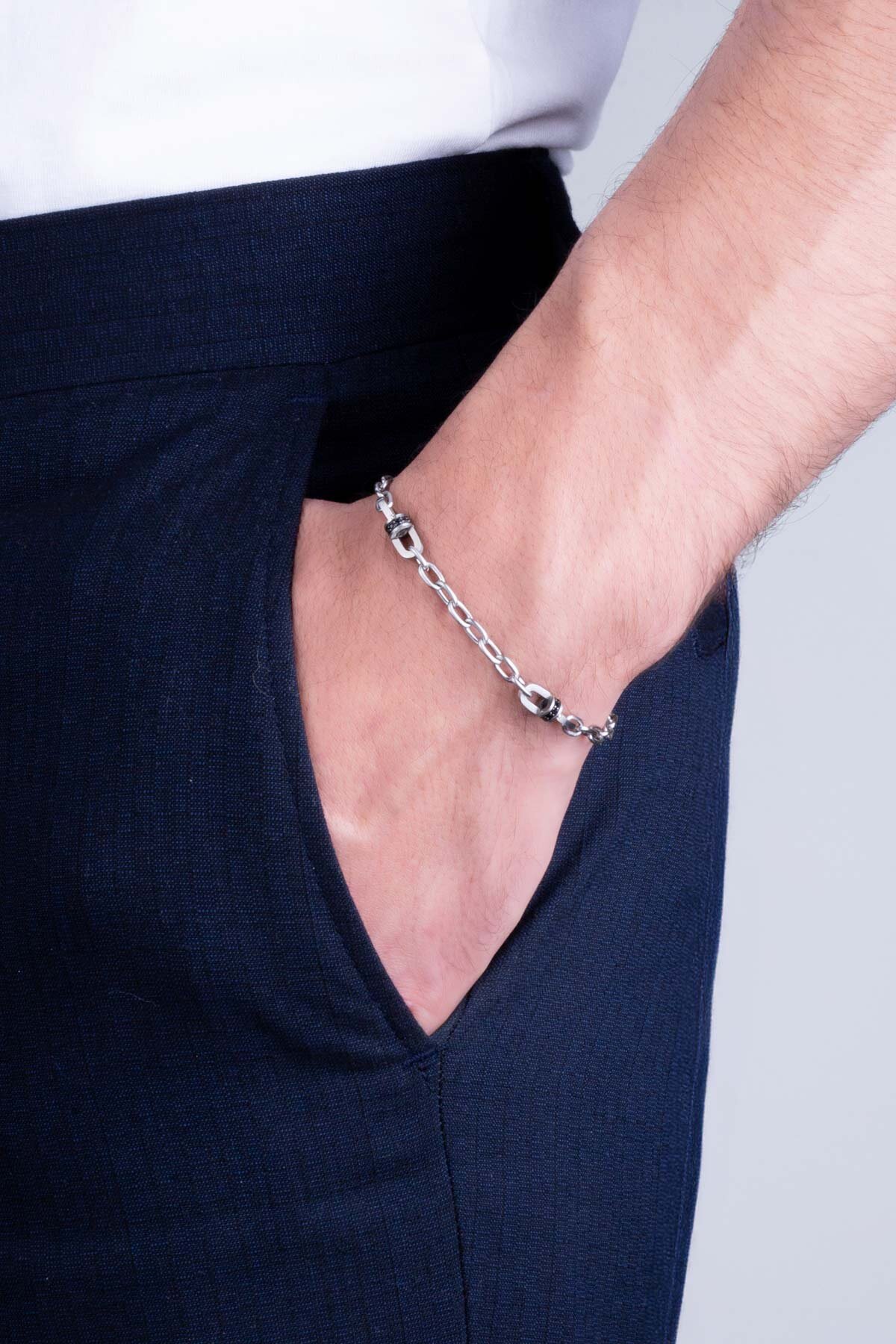 Siyah Taş Detaylı Çelik Erkek Zincir Bileklik